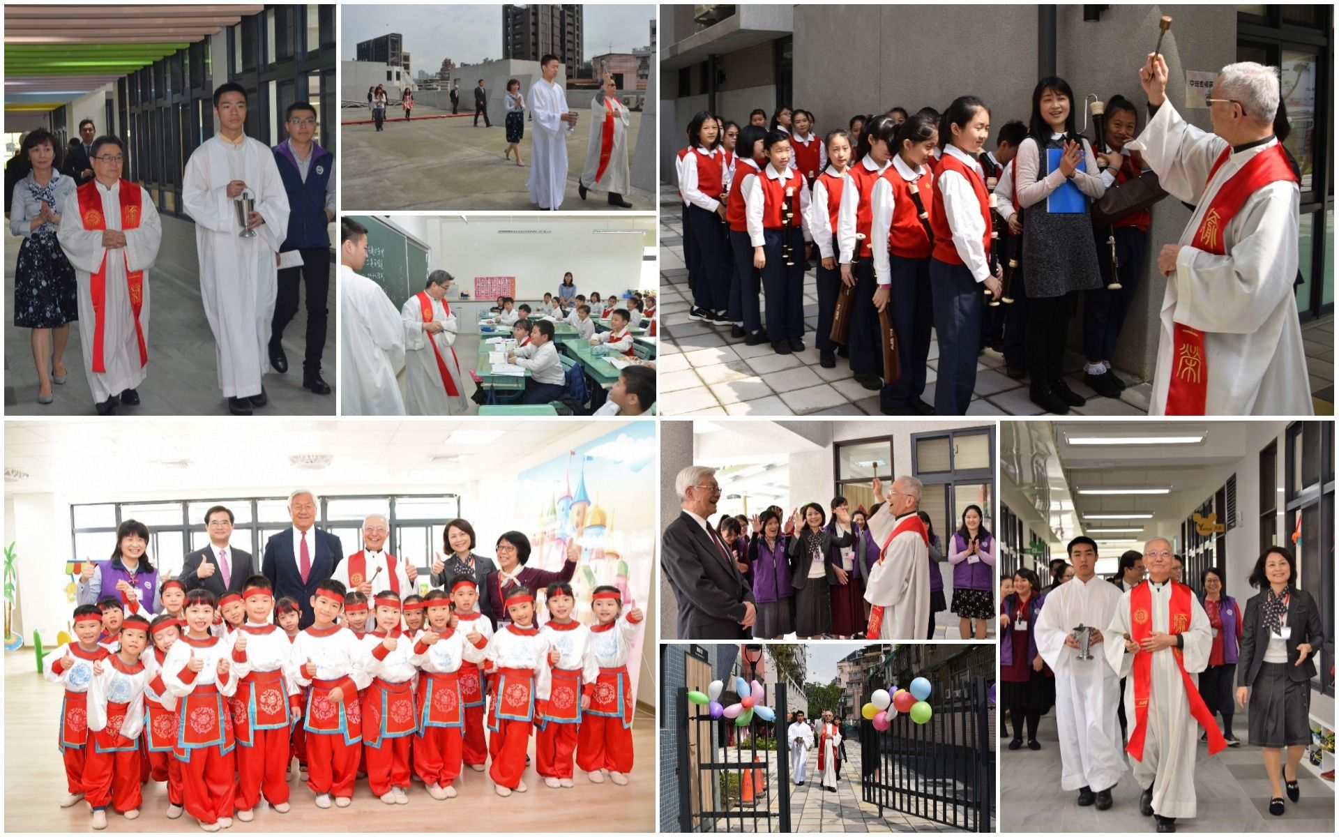 祝聖儀式暨灑聖水禮 上午10點舉行祝聖儀式,由饒志成神父、孫柔遠神父主禮。饒神父祝禱中,特別提及已故朱創辦人秀榮博士當年創立再興的理念,以生命傳遞生命的「教育家」,今日透過「水的祝福」為新建大樓注入純潔與希望的能量。灑聖水是上天對生命祝福的象徵,儀式由楊珩校長和蘇瑞鴛園長帶領二位神父進行,一同誠摯祝禱這棟尋求真理、學習真理、傳播真理的大樓,能夠得福恩佑;讓擁有愛心和慈悲的老師在這裡陪伴孩子,在再興的教育下,智慧和身量天天增長。