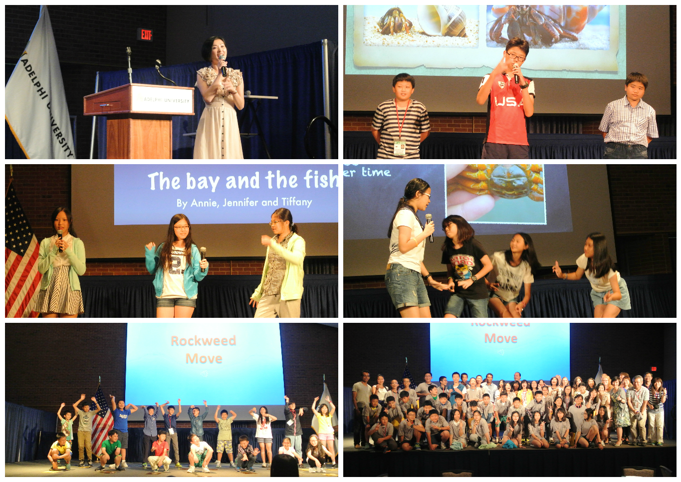 一早大家搭上遊覽車,參加美國民間組織Splash的淨灘活動。孩子們穿上救生衣,搭乘遊艇到對岸淨灘,白淨的沙灘看來十分乾淨,但是仔細找過,仍然有些垃圾殘留,大家一面撿拾,一面觀察生物,有趣極了。雖說今日天氣又熱又濕,但是為大自然盡一分心力,也是我們的榮幸。晚上的成果發表會,孩子們真的卯足了全力表演,在Ellsa老師全力指導下,孩子們個個表現得稱職優秀,真令人感動; 尤其是最後的感恩時刻,和教授及助教們一一道別的場面,真情流露,叫人動容。孩子們,相信在這不算長也不算短的遊學時光裡,你們不僅學到了知識,也學到了如何與人相處的寶貴常識。