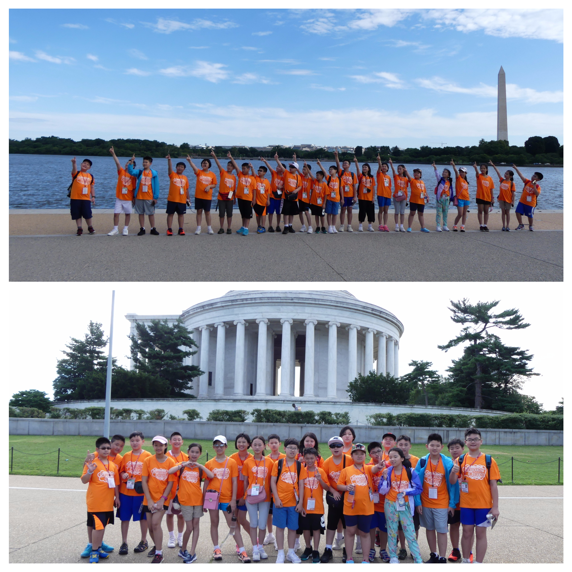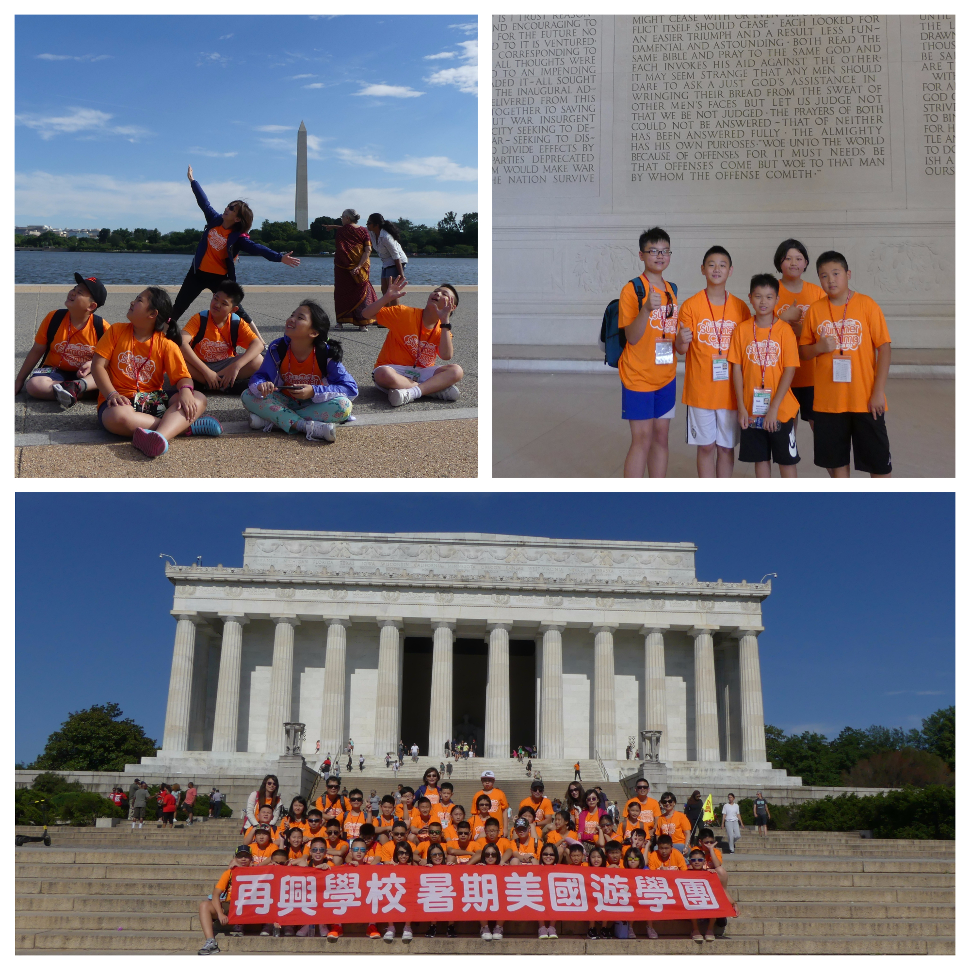 今天的行程實在太豐富了,一大早用完營養早餐,神采奕奕地拜訪美國偉大的兩位總統—傑佛遜和林肯的紀念館,對稱建築雄偉壯觀,牆上的紀念文字字珠璣,展現出領袖者不凡的風範,值得我們效法和推崇。接著航太博物館與國會山莊,參觀航空演進史和傑出飛行器研發介紹,除了目不暇給、大飽眼福外,連食物也令大家垂涎三尺呢!今天老師要我們自己在航空館內的麥當勞點餐,一開始很害羞,老師們先打頭陣,接著為了再吃一次,我們不論比手畫腳,全都用上了,不但吃得開心,下午更在購物商場,認識美國人生活上消費的習慣,商品真是琳瑯滿目,我們不僅練就自己一身識路的好功夫,也把所學英文統統應用上場,有種書到用時方恨少的感覺啊!明天的棒球巡禮,一定精采可期,早點休息,為明日的參訪補充能量吧!