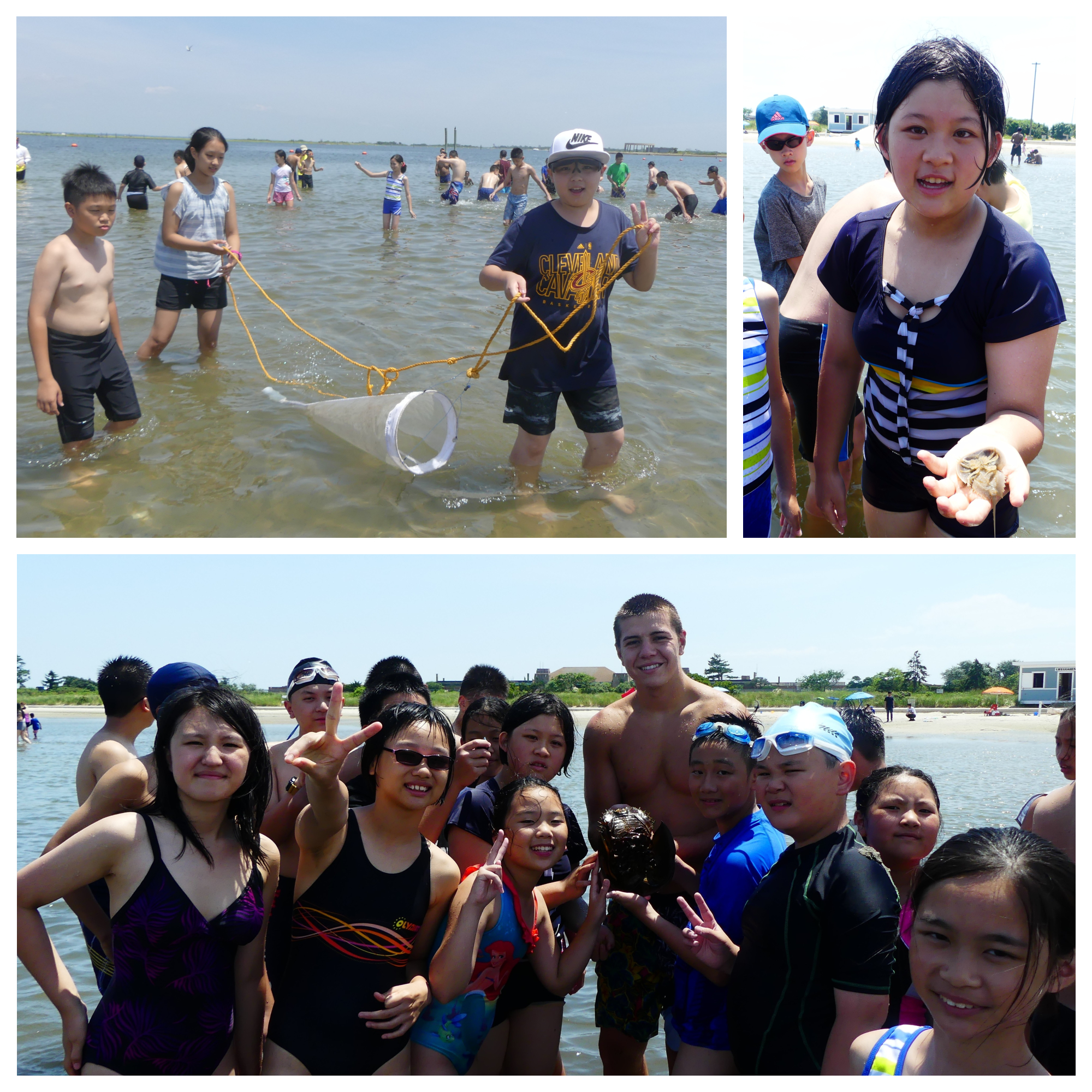 今天是第一次校外活動,大家與教授、助教一起到海邊做採集的工作。每一個人都要在沙灘上找尋著自己所發現的生物,不論是已成化石的貝殼,還是活蹦亂跳的蟹種,以及海邊附近出沒的動物群們,大家都仔細的請教這些物種名稱,用心的態度,讓外籍老師們都嘖嘖稱奇!果然大自然教室學不盡也看不完。中午我們則回到車上用完簡單的餐點,下午繼續驅車來到了另一處淺水灣,玩水游泳消暑,與海鳥在海天一色中自由翱翔,大夥兒直呼真是太過癮了!