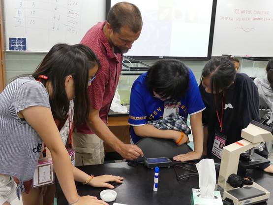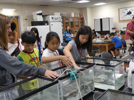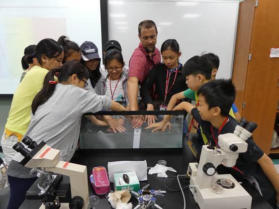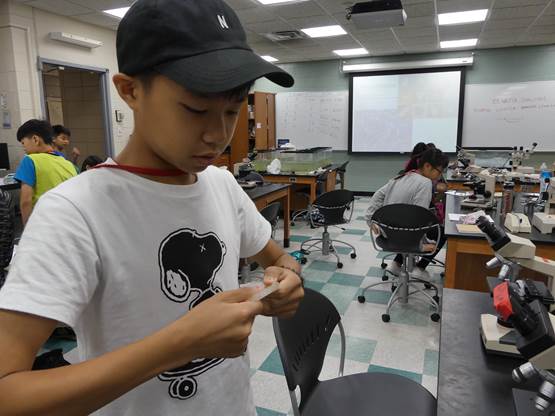 啟動~海洋生態實驗課,手腦並用! 今天我們正式進入一系列海洋生態與實驗課程。早上在生物實驗室透過顯微鏡觀察浮游生物,並在學習單上動手繪製顯微鏡裡浮游生物的樣子,這是需要的專注觀察才能完成的作業。接下來,我們做了利用生蠔來淨化水源實驗,證明了生蠔的數量越多,水中的雜質就越少。最後,我們當個小小設計師,用軟性塑膠當材料,發揮創作力並且動動腦,比比看誰最厲害,捏塑出的浮游生物在水面上漂浮得最久。總之,上午的實驗課相當有趣,必須同時眼到、手到、心到,才能達成學習目標。