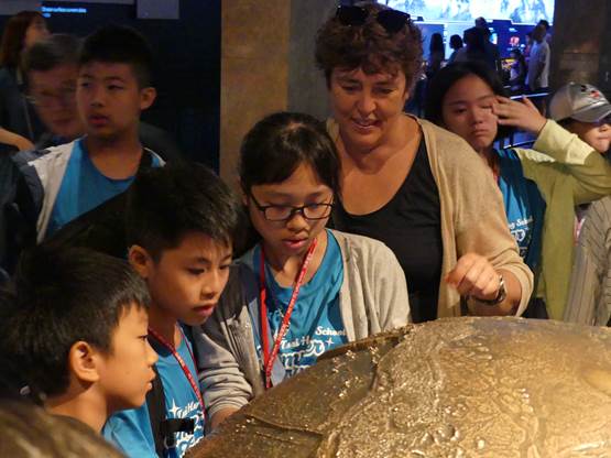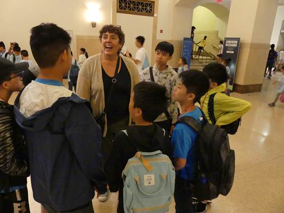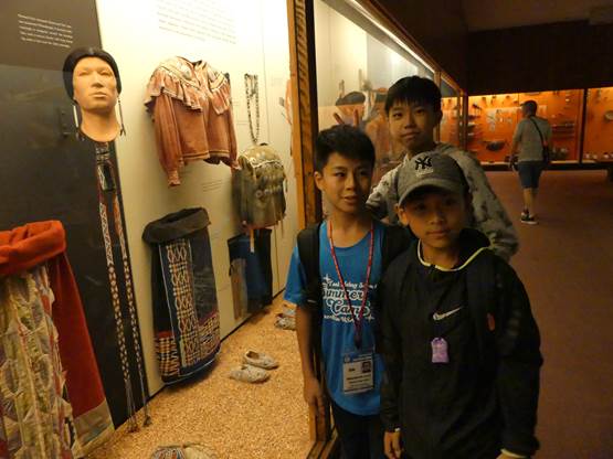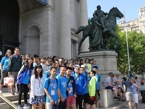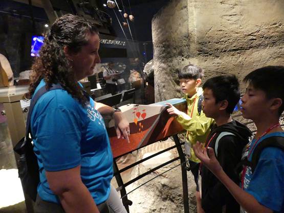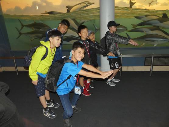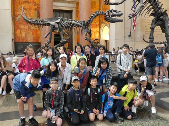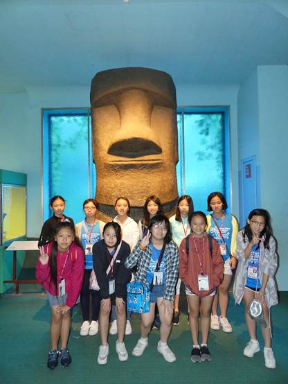 震撼~探訪自然歷史博物館,不虛此行! 花了一個多小時的車程,我們來到電影博物館驚魂夜(Night at the Museum)的主要場景—美國國家自然歷史博物館,整個館區佔地面積非常大,展示了非常多樣化的生物物種。雖然我們只參觀了一部份,但仍留下了深刻印象。 我們依序經過不同的展區,包含西北岸印地安人館(Northwest Coast Indians),館展示著印地安人的木雕和手工藝品。然後是北美哺乳動物館(North American Mammals),展出的動物模型唯妙唯肖,尺寸大小都跟真的動物一樣,活像一座小型動物園。當我們走入太平洋人文館(Margaret Mead Hall of Pacific Peoples)的盡頭,映入眼簾的就是電影裡的復活島巨石像「摩艾」,大家蜂擁而上,搶著拍照留念。 今天的參觀重點是米爾斯坦海洋生態展示區,一抬頭,目光就會聚焦在長達94英尺長的藍鯨,相當震撼。櫥窗內展示了大大小小的海洋生物模型,上方都搭配了大型的電視,直接播放該生物的動態影片,讓我們可以同時觀察到動態與靜態的姿態。這裡的學習任務是每人要選出自己最有興趣的兩樣海洋生物,並且和該生物模型拍攝合照,作為這次海洋生態課程資料蒐集的一部分。 下午,在教授的帶領下,我們走訪了地球館,一走進去就能感受到各種岩石的美麗與神秘,館內最特別的展示品是一顆由銅金屬打造的巨型地球模型,摸起來堅硬而冰冷,教授也提醒我們可以找一找台灣的位置。 接著我們進入球型星象廳的大爆炸影院 (Big Bang),觀賞一部關於宇宙誕生的短片,特別的是,所有的人都圍繞著圓形的投影布幕,好似一個圓形的宇宙天體空間。下一站就是博物館熱門的IMAX影院中心,我們觀看的3D影片主題是認識探險家亨利貝茲在亞馬遜叢林中,對於毒蝶與相關物種的觀察歷程,也就是後世所稱的貝氏擬態,其不畏艱難與專心致志的精神值得敬佩。 最後,我們來到恐龍館,大廳有兩隻巨大的恐龍骨架模型,其中一隻脖子超長,有好幾層樓高,它正身起兩隻前腳於空中,像馬兒懸崖勒馬的姿勢。另一隻則比較矮,我們一起和它拍下合照,結束今天探訪博物館的活動。 其實,博物館的展覽有其重要的教育功能,不純粹僅止於知識上的學習,像這邊的藍鯨、非洲象,都非常的巨大,令參觀的人印象深刻,也提醒人們保育野生物種的重要性!身為小學生的我們來這裡,雖然不一定會對所有的物種感到很有興趣,但確實可以增廣見聞,看看這全世界上物種的變化以及不同文化的差異。 後記:今天的晚餐,我們步行到博物館附近的Uno芝加哥風味餐廳,除了體驗自己動手做的披薩之外,還品嚐著名的芝加哥美食–––Uno深盤披薩餅(Deep Dish Pizza) 。與薄皮披薩最大的不同就是Uno披薩的最外皮厚得像一面小牆,裡面鋪滿的各種食材,口感相當獨特。
