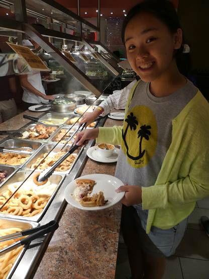 血拼~Woodbury Common Premium Outlets,非買不可! 在大學的課程結束後,我們的旅程並未結束,接下來的三天是行程滿檔的紐約之旅。第一天早上我們來到西點軍校參觀,透過導覽老師的詳細講解,不僅認識了校園環境與建築的特色,更能夠了解西點軍校在美國軍事發展上的重要地位,體認到軍人生命與價值的不凡之處,值得我們敬佩! 下午轉戰紐約著名的Woodbury Common Premium Outlets,開始採購前,我們領取地圖、研究路線,做足了功課出發,所以每個人都逛得開心、買得盡興!晚餐是我們最喜愛的家鄉味~中式餐廳吃到飽,這一夜,我們入住ML Hotel,好好補足戰力,明天迎戰驚險刺激的六旗樂園。