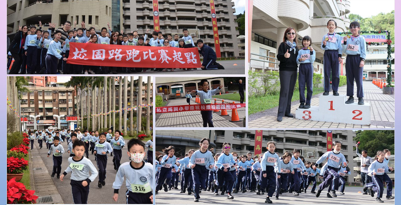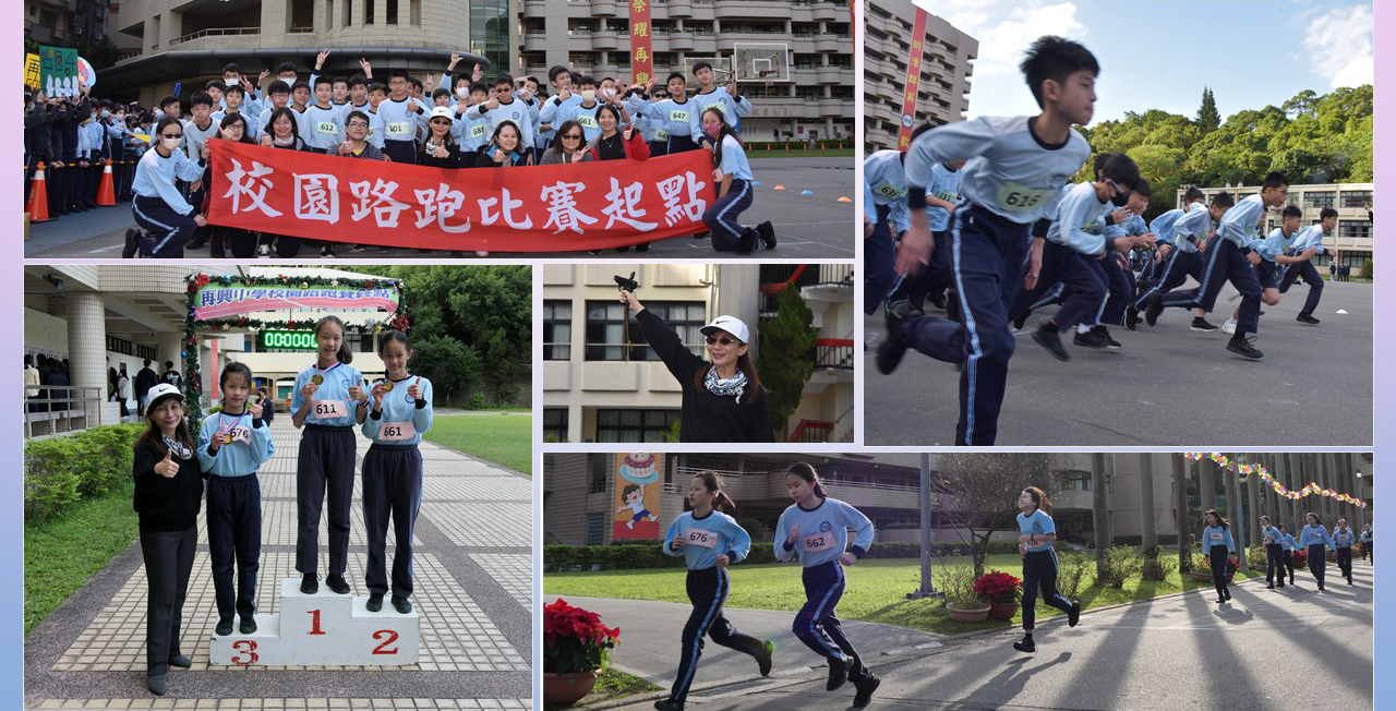 期待許久的中高年級校園路跑賽在12月19日如火如荼的展開,由邱建興老師、廖君維老師輪流領跑,三到六年級比賽距離皆相同,距離全長為800公尺。參與競賽的孩子們發揮平日晨跑與體育課所累積的實力,奮力奔騰在校園之中,過程先經過椰林大道並繞過噴水池兩次,再跑至中學籃球場,終點在中學教學大樓前,才算完成這趟長距離的跑步比賽。選手們一個個揮汗如雨、喘氣如牛、仍是奮力的向前直跑,不到終點前絕不輕易放棄,不只是在考驗選手的體力更是需要耐心及堅毅不拔的態度,為的就是爭取班級成績及個人的最高榮譽。一旁的班級啦隊們拿出特別製作的班旗及各式加油道具,大聲地為選手們加油打氣,展現出為團隊加油的團隊凝聚力與滿滿活力,使校慶活動更加熱血沸騰,展現良好的體能與品德表現,現場同學及師長們熱烈的拍手歡呼。