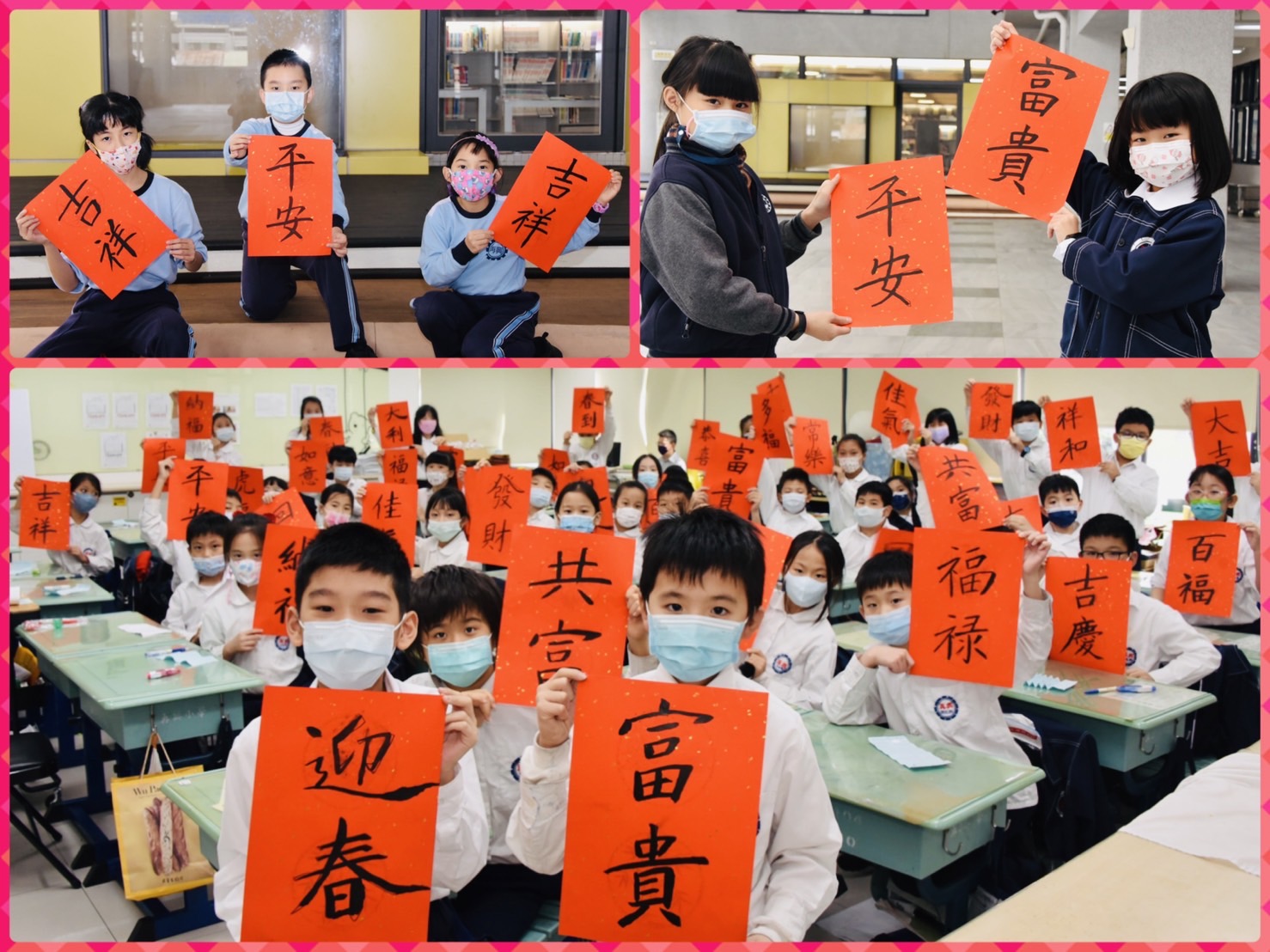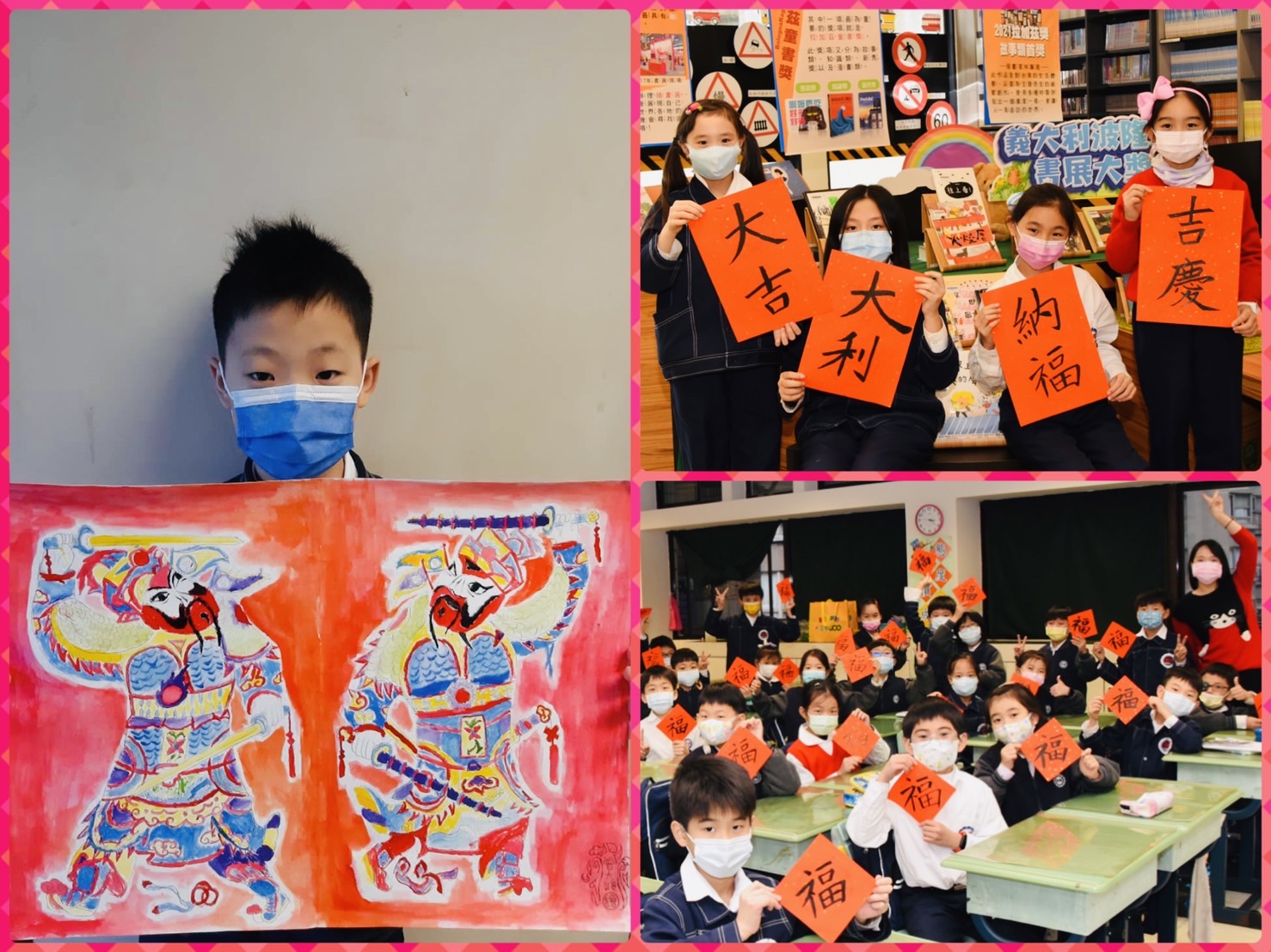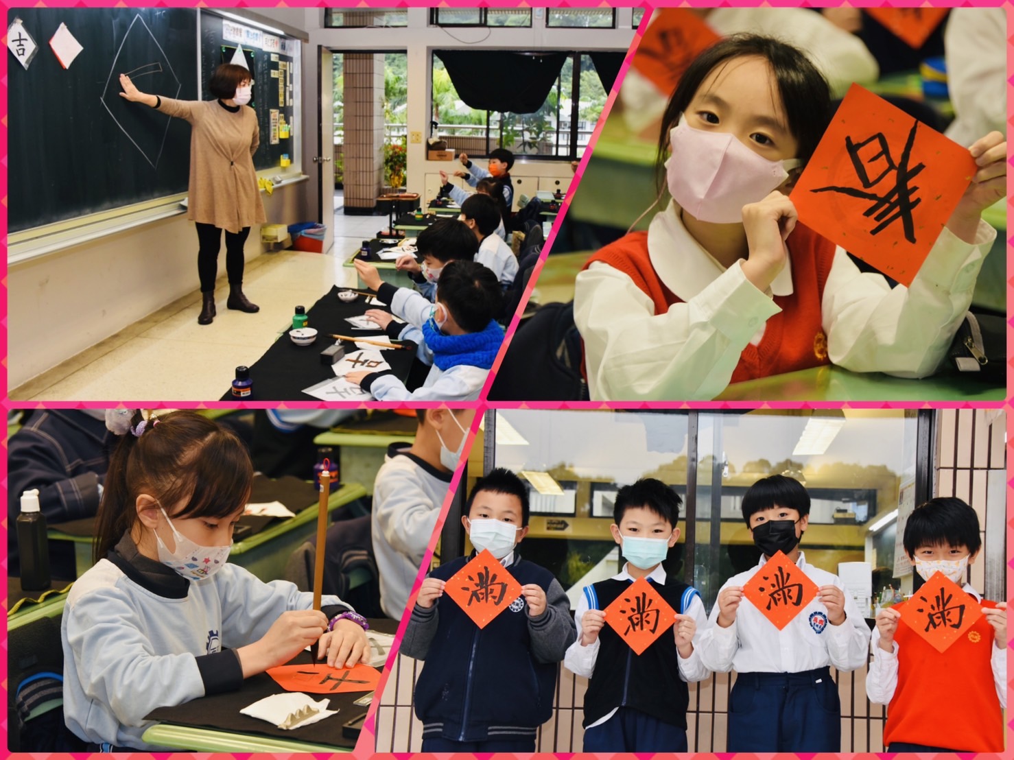 「春節」是充滿喜慶與家人團聚的傳統文化節日,為讓孩子能對傳統節慶更有感受,教師在書法課程中,讓三年級孩子由摹到臨的習寫,逐步完成單字春聯,亦讓四年級孩子透過部首、偏旁筆畫習寫的基礎奠基,漸而應用到組合字體的結構,完成專屬的二字春聯作品。