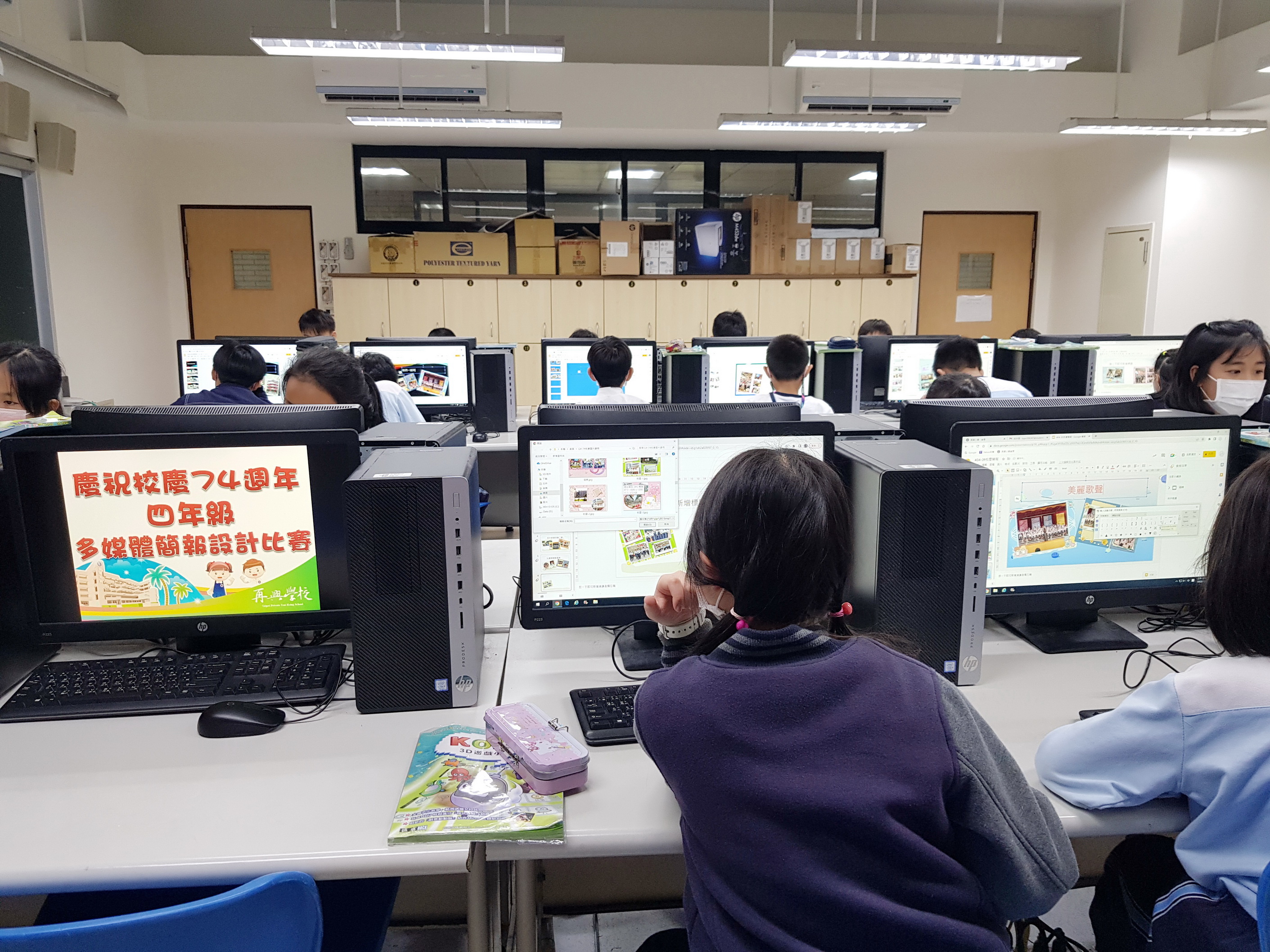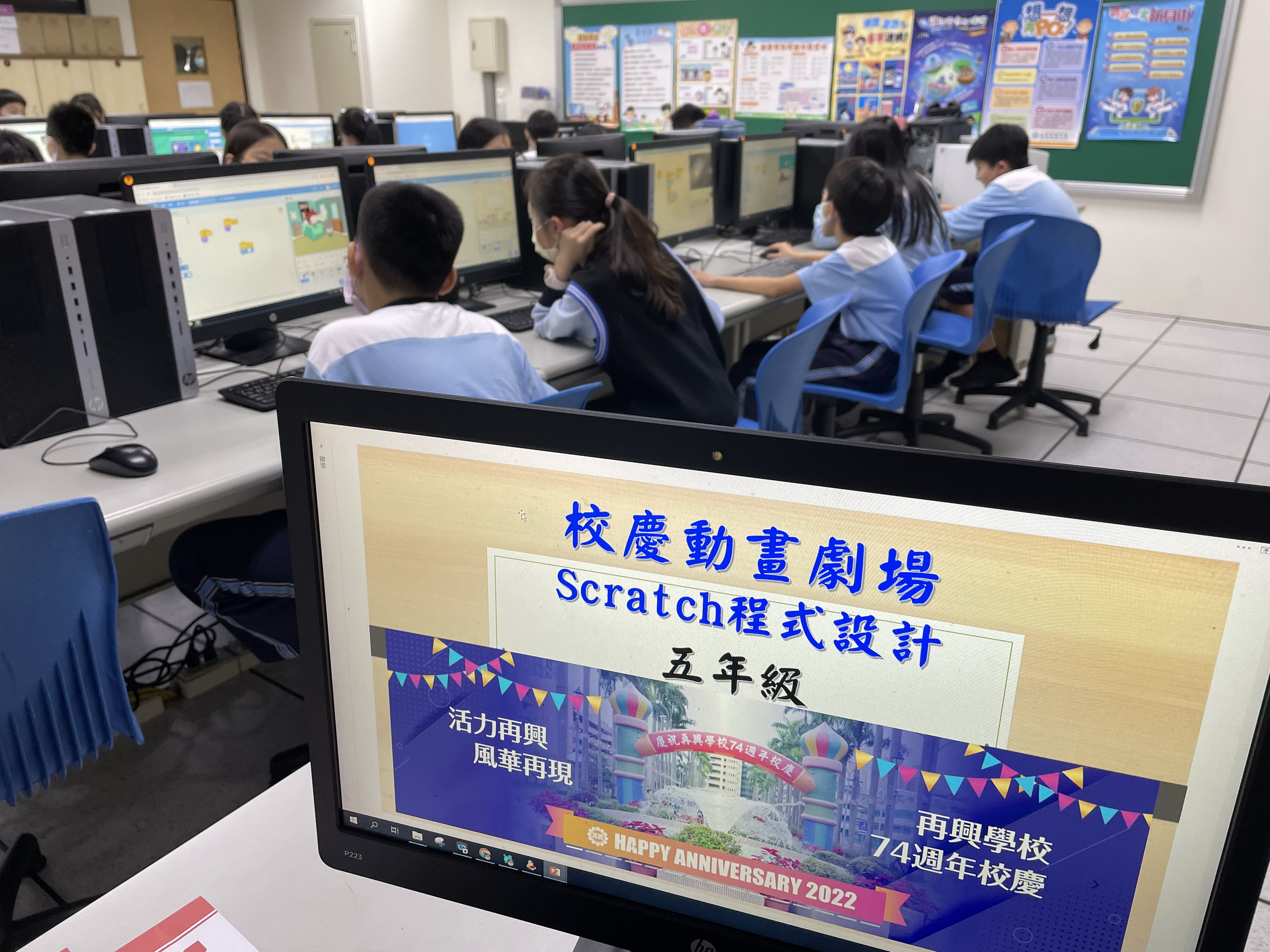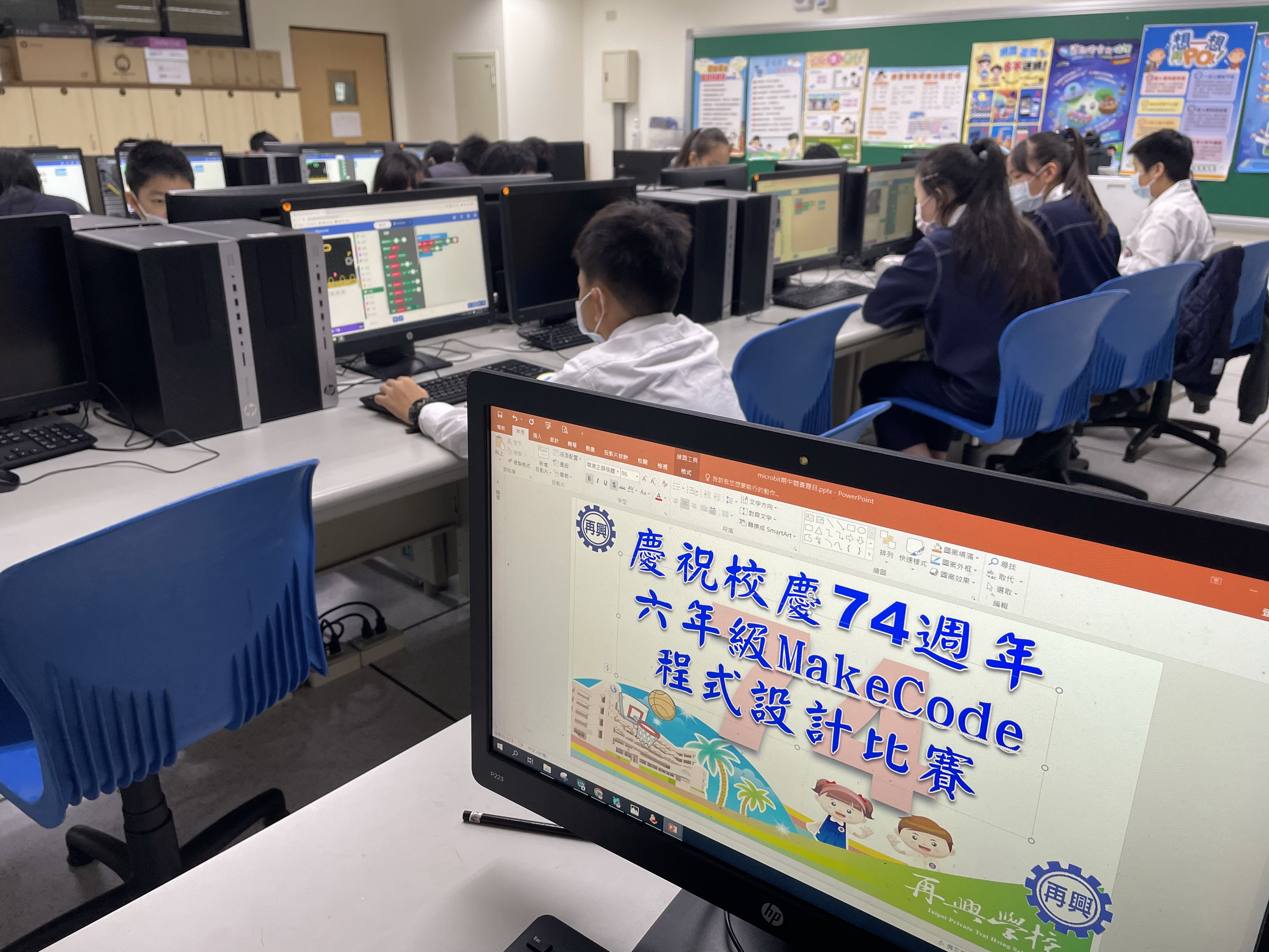 在校慶充滿溫馨的氛圍之下,教師們規劃了一系列的電腦教學活動與競賽,讓三至六年級的孩子們運用電腦課程所學之基礎知能,搭配個人的設計創意,在比賽的歷程中展現多元的學習成果,也傳達對再興74歲生日的祝福。