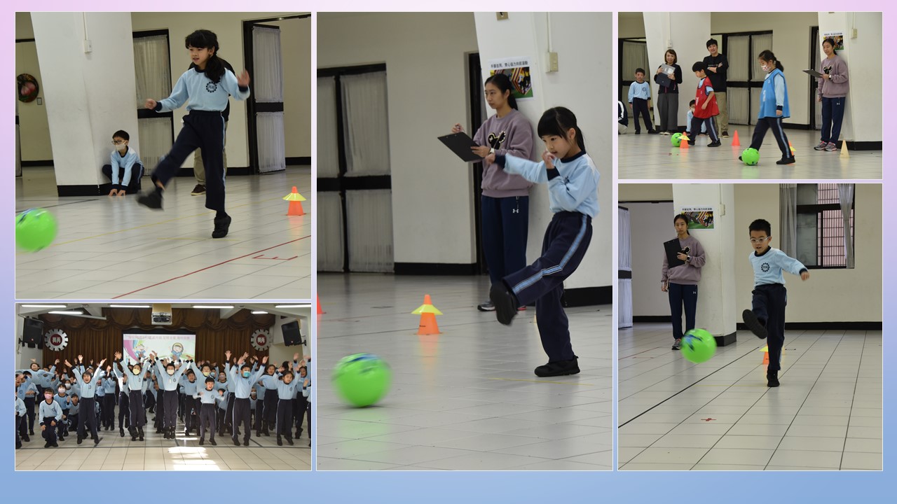 慶祝75週年校慶體育競賽活動 低年級-足球金童趣味競賽活動報導 低年級小朋友非常期待的趣味競賽-「足球金童」,在12/7日早上熱鬧地展開。小小選手們以整齊的運動服裝,蓄勢待發做好準備來迎接早已期待許久的足球賽事。今年新增了起球,運球,停球,再射門的連貫元素,希望同學能全班每人一球,輪流踢球射門,最終以進球數最多的班級為獲勝。全場加油聲不斷,每一位小小選手都屏氣凝神地把握每次踢球的機會,把平時體育課練習的射門技巧發揮到淋漓盡致。只要多進一球班級分數就能多得一分勝算,當隊友射進球門時伴隨著此起彼落鼓掌聲與震耳欲聾的尖叫聲,場上的氛圍實在是緊張又刺激啊! 在結算總成績時,因一年孝班和一年義班進球數相同,最後還進行了冠亞軍PK賽呢!二班各派三位小選手,一人一球,最終進球數三比二,由一年義班拿下冠軍。二年孝班和二年義班進球數也相同,也一樣進行了亞季軍PK賽,最終進球數四比三,由二年義班獲得第二名,冠軍由二年愛班拿下! 比賽中設計的盤球、射門技巧都是足球比賽不可或缺的能力,相信每位參賽同學都一定留下了深刻又美好的回憶。