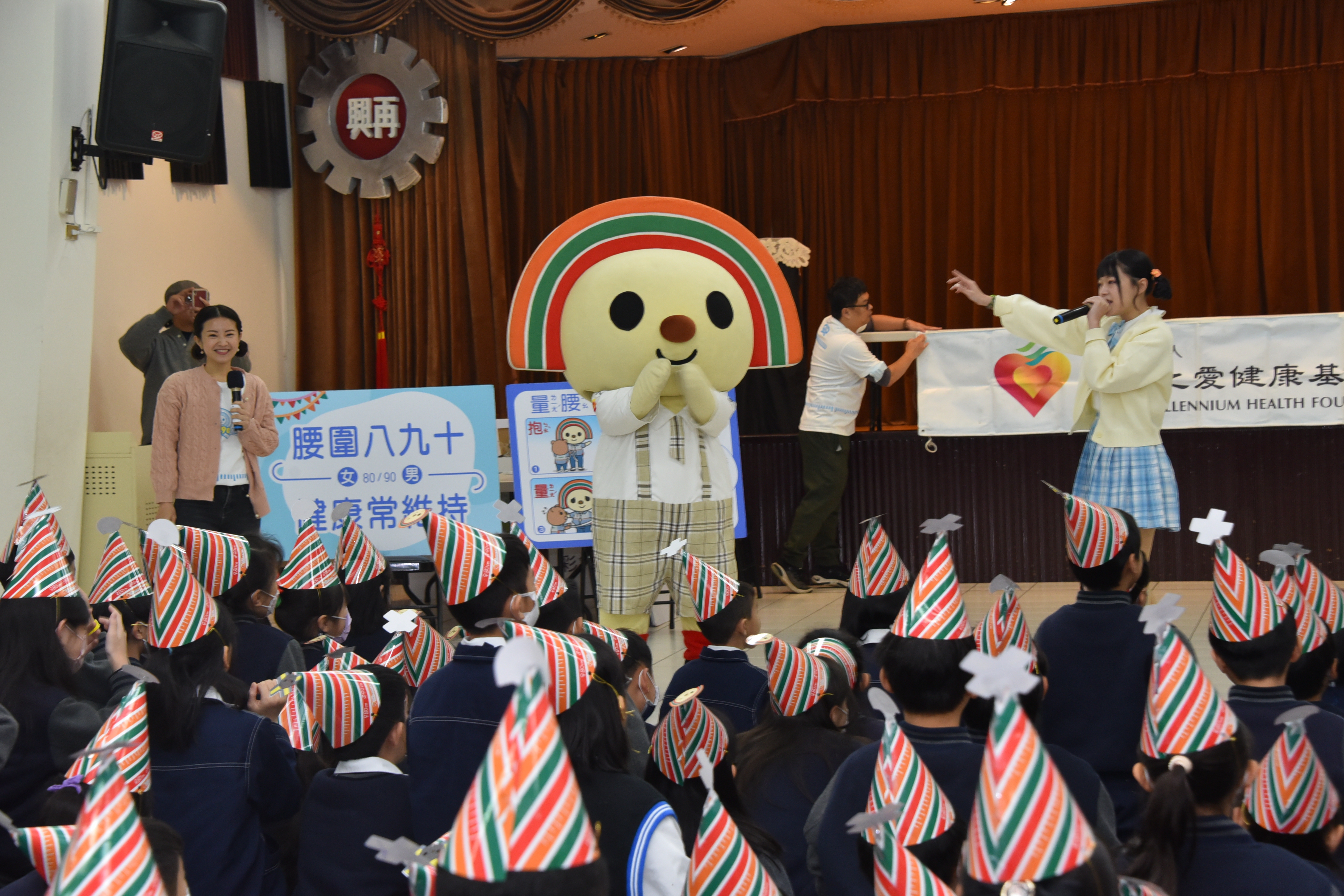Open!元氣校慶開幕式 再興小學於12月22日舉辦了盛大的75周年校慶開幕式,為了讓學生更全面了解健康的生活方式,學校特別與千禧之愛健康基金會攜手合作,於開幕式上請Open醬和Lock醬蒞臨校園,向四年級的小朋友推廣正確的飲食和健康體位。千禧姐姐帶著豐富的營養知識,以輕鬆有趣的方式與學生互動,使得孩子們對健康的概念有更深刻的認識。不僅分享了營養均衡的飲食理念,還教導了如何幫助家人測量腰圍以及小腿圍,鼓勵學生與家人們在日常生活中保持良好的健康習慣。此次活動不僅豐富了校慶的內容,更讓學生和家長們受益良多。透過有趣的互動與講解,學生們對於健康的認知更加全面,也為校園帶來了一陣健康風潮。