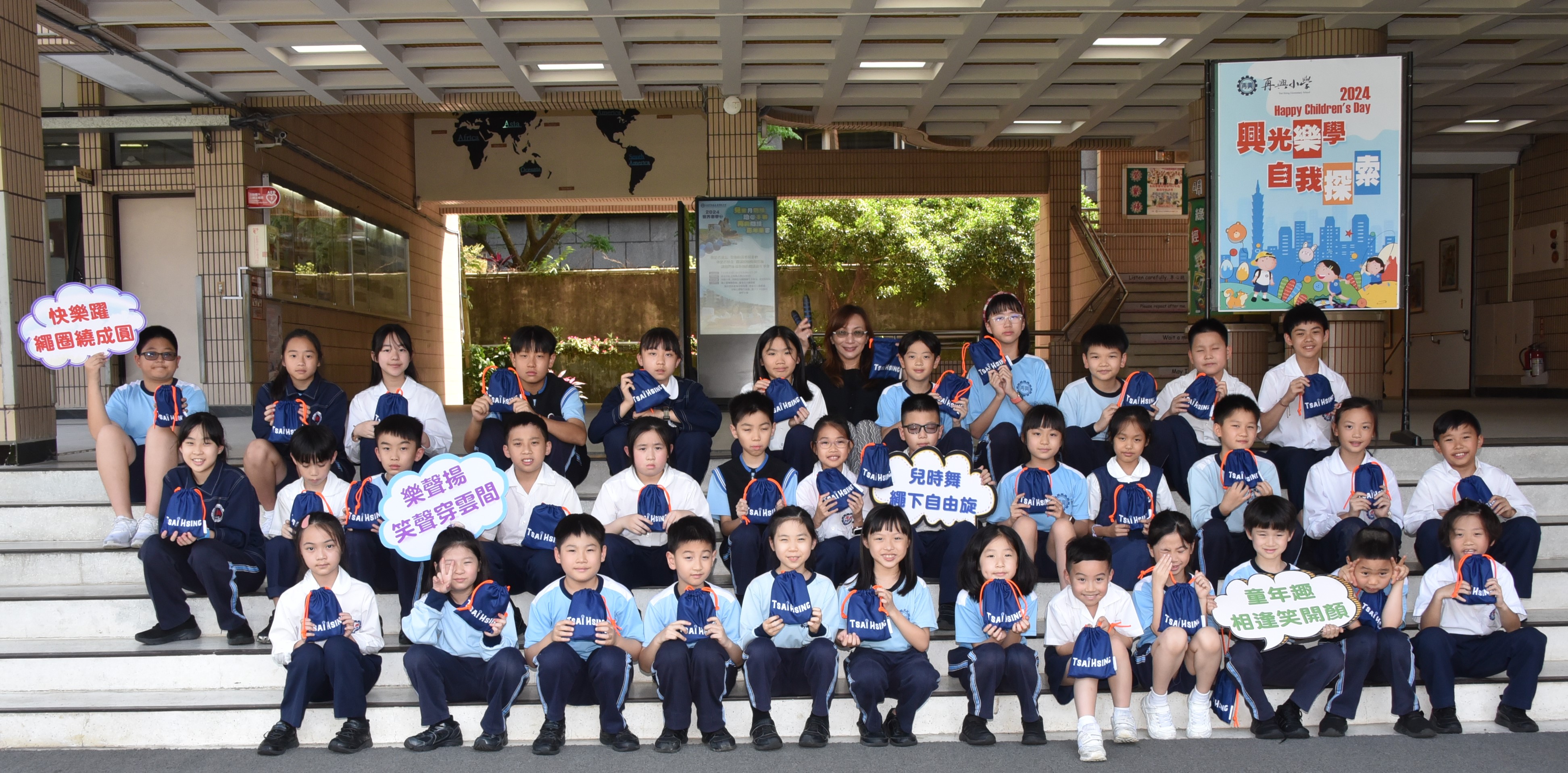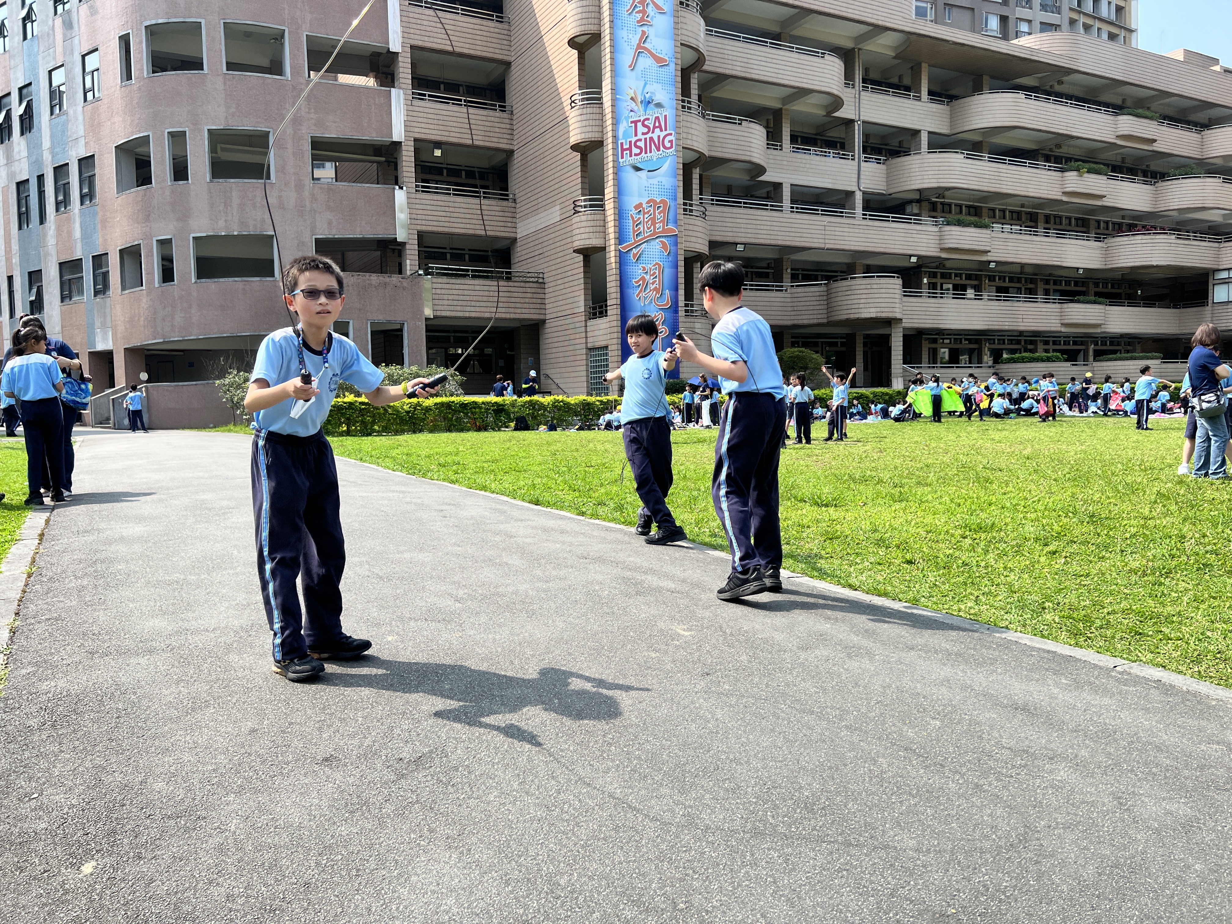 | 在今天的兒童節「上下課翻轉」自主學習系列活動中,再興學子不僅盡情的在校園各地活動探索;活動後也能合作自發整理場地,維持環境整潔;更真實的經歷防災避難,學習應變和問題解決,全天的活動對孩子來說不只是慶祝兒童節,更是一個完整的學習歷程。再興小學楊珩校長以下面話語祝福大家:「快樂躍,繩圈繞成圓;樂聲揚,笑聲穿雲間;兒時舞,繩下自由旋;童年趣,相逢笑開顏。」也是今日再興小學校園風景的最佳寫照。 | ||