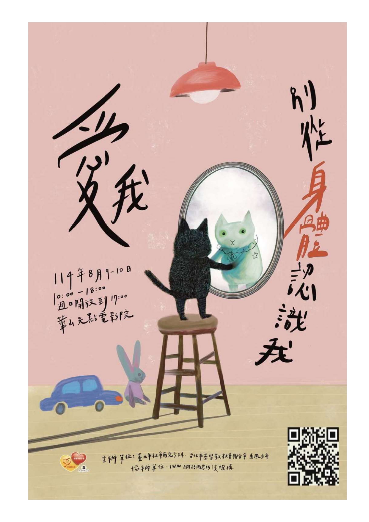 一、依據本府社會局114年7月3日北市社兒少字第11431145481號函辦理。 二、本次影展透過紀錄片「我12歲,你介意嗎」及「自由之聲」邀請社會大眾、相關兒少保護專業人員走進兒少在性剝削歷程中,所經驗的情境與狀態,同時也邀請專業講師於映後座談和與會者共同討論如何提供兒少適切的協助與支持,一同維護兒少權益,提升有關兒少性剝削防制知能。 三、本次影展內容說明如下: (一)放映時間及片單:8月9日上午及8月10日上午放映紀錄片「我12歲,你介意嗎」;8月9日下午及8月10日下午放映影片「自由之聲」。 (二)放映地點:光點華山電影院(臺北市中正區八德路1段1 號)。 (三)報名方式:採網路報名(https://www.accupass.com/event/2506190816482106872696)報名至額滿為止。 四、若有影展相關問題請逕洽該會承辦人:王昱瑋社工員(電話:02-25371660)。 |