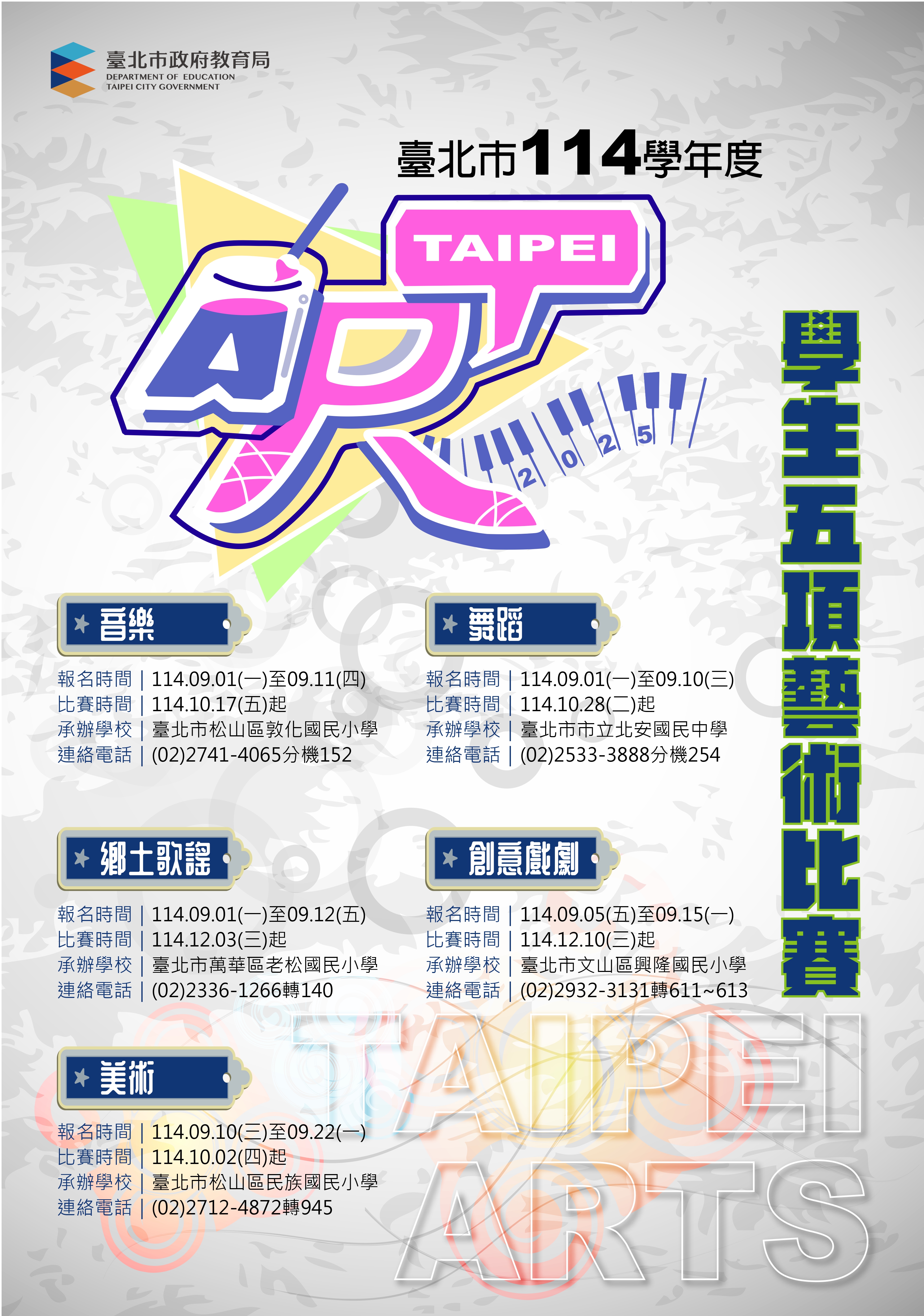 臺北市114學年度五項藝術競賽報名暨比賽注意事項