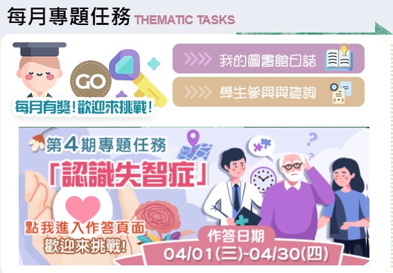 ★115年第4期專題任務主題為「認識失智症」,請學生踴躍上網參加,