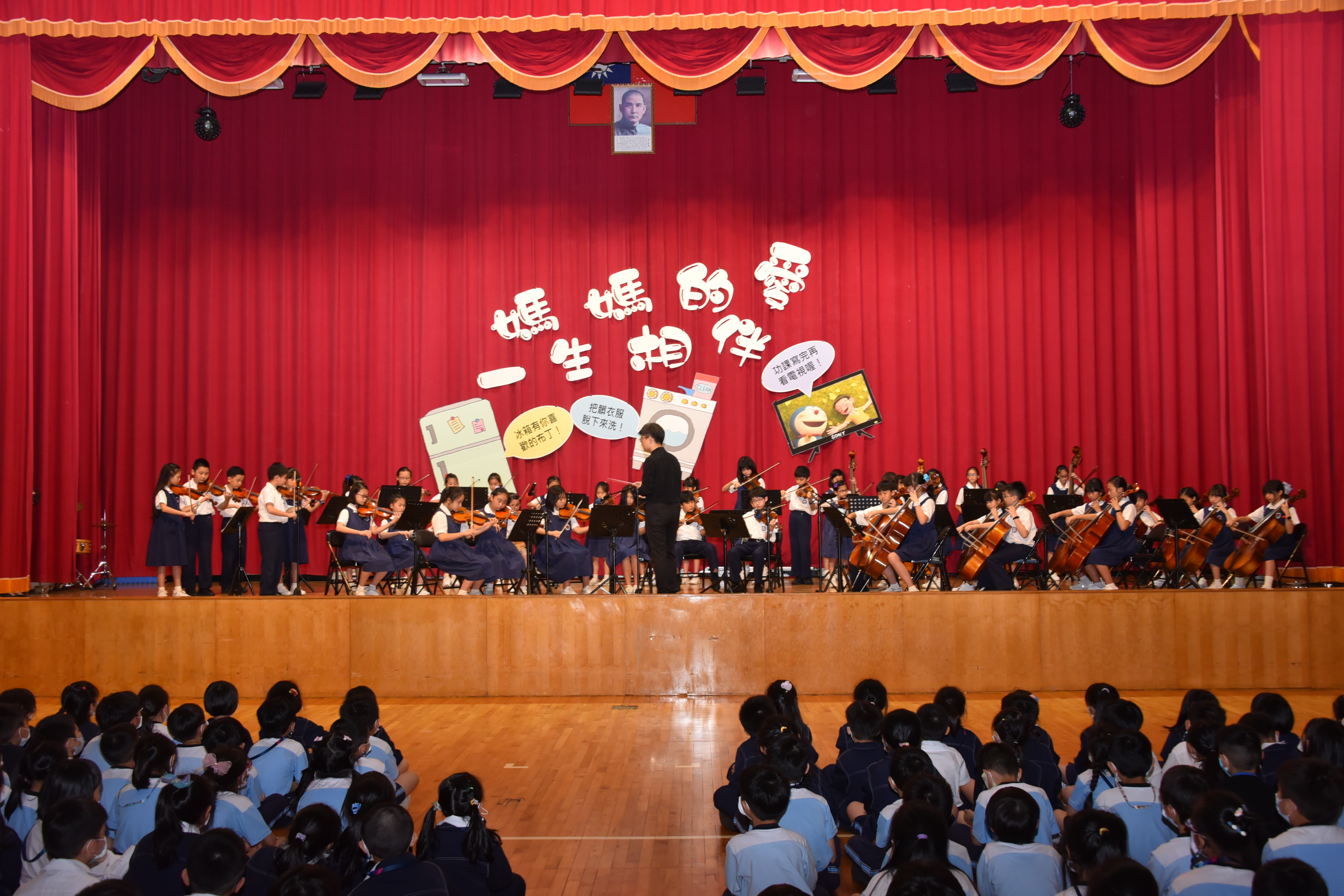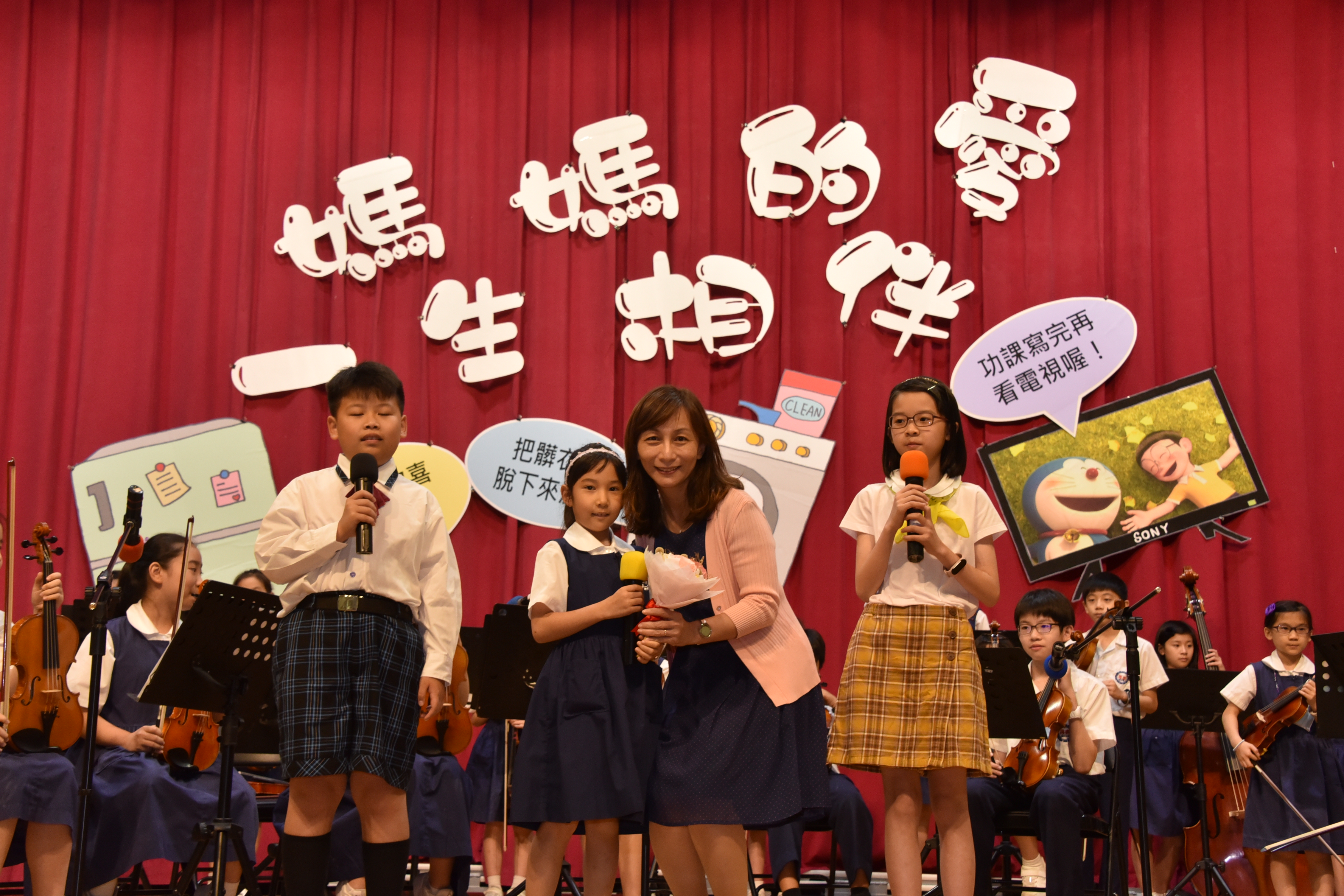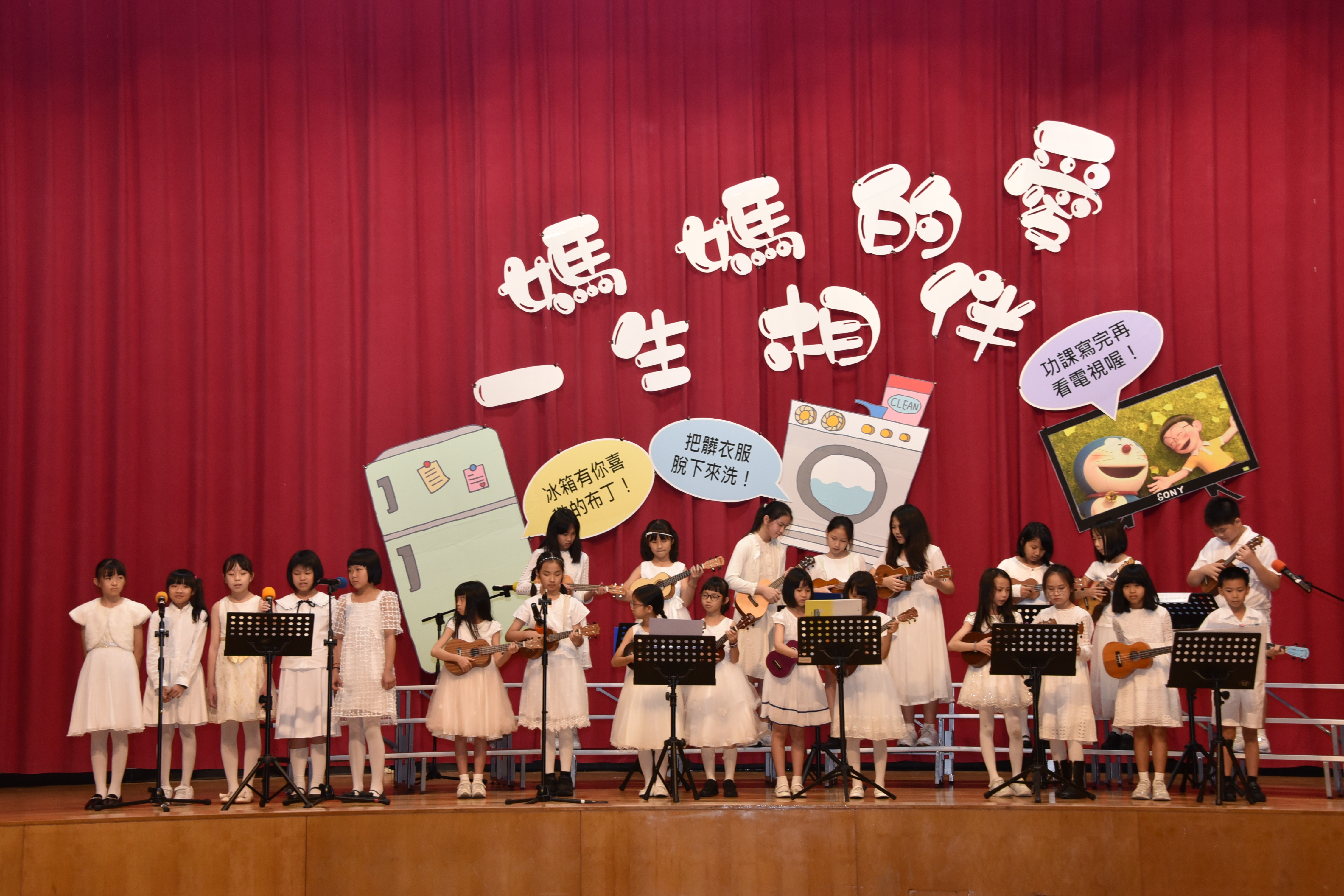 慶祝活動由五愛童語樂、五義郭庭妤共同主持,二位孩子臺風穩健、口條流利,以絕佳的默契串起全場活動。弦樂團演奏可愛又帶點古典風情的「Moana」、「Try everything」為節目揭開序幕,優美悅耳的琴聲引領觀眾進入今日的表演饗宴。這次母親節活動以「媽媽的愛 一生相伴」為主題,孩子們透過學習單各自描繪出心目中媽媽的形象,並致贈別緻、獨創的感謝狀,將親子間的情誼展現得淋漓盡致,這段精心製作的影片,讓人倍感溫馨。 |