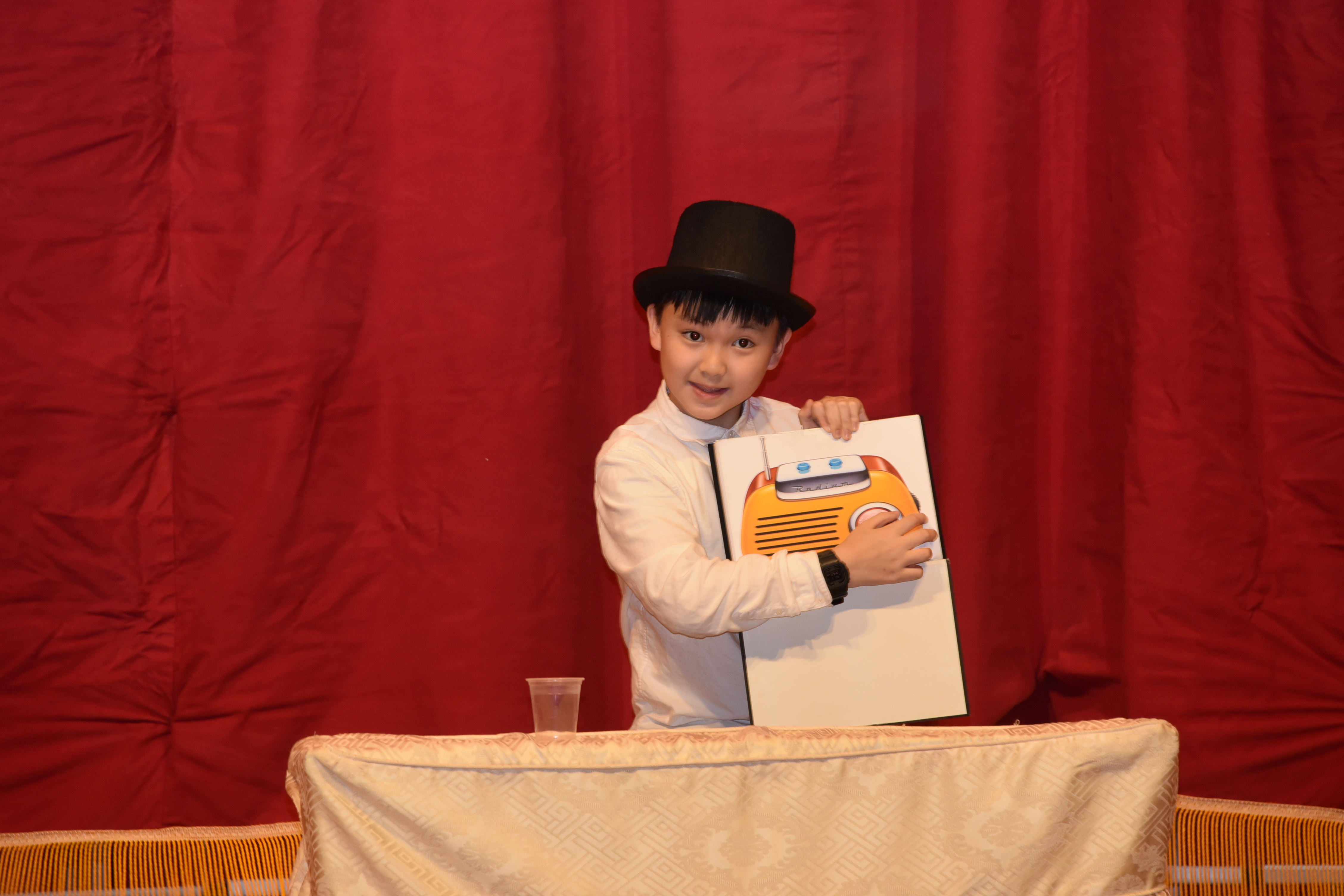 | 魔術社同學一轉手、一點指彷彿擁有魔法般神乎其技,最後甚至從菜盤裡變出一隻活生生的鴿子,使得全場驚嘆聲此起彼落;烏克麗麗社則以快慢交錯彈奏「青春舞曲」以及「小幸運」感謝媽媽照顧我們、陪伴我們長大;壓軸登場的是合唱團,演唱曲目「戇囡仔」,這是一首溫暖的歌曲,洋溢母親對孩子滿滿的愛。最後邀請媽媽上臺,接受全校獻唱全場大合唱,當全校一起唱著「心肝寶貝」,感人的氣氛充滿現場,為母親節慶祝活動烙下甜美的回憶。 | |||