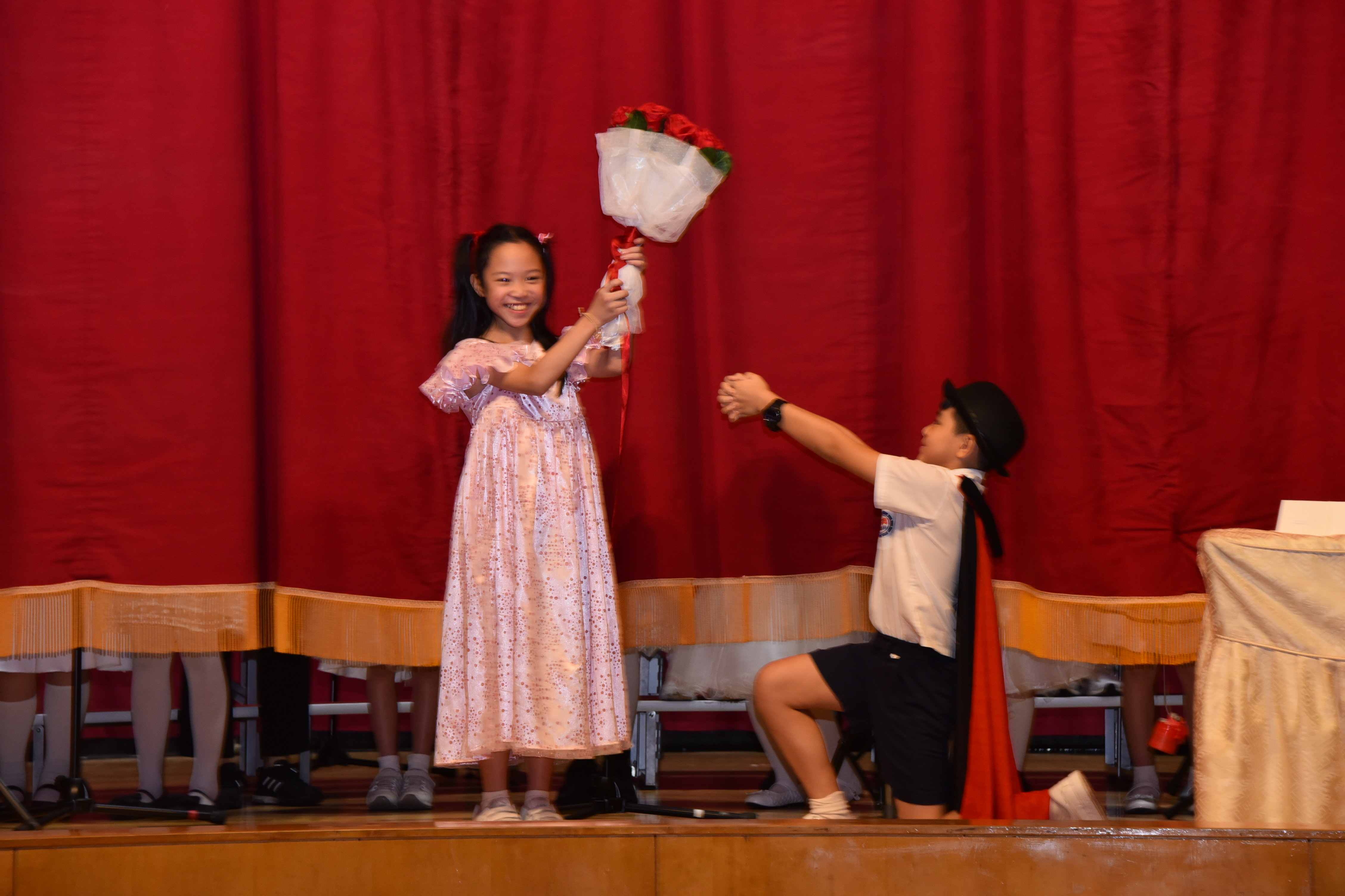 楊珩校長和大家分享繪本故事《Love You Forever》,哼唱著「I'll love you forever, I'll like you for always. As long as I'm living my baby you'll be.」,說著即使孩子再怎麼調皮、年紀再怎麼大,永遠都是媽媽心裡的寶貝,全場觀眾也一起沉浸在這溫馨的氛圍中。接著,由三孝魏華妍同學代表獻花,祝福校長、所有的媽媽們母親節快樂。 |