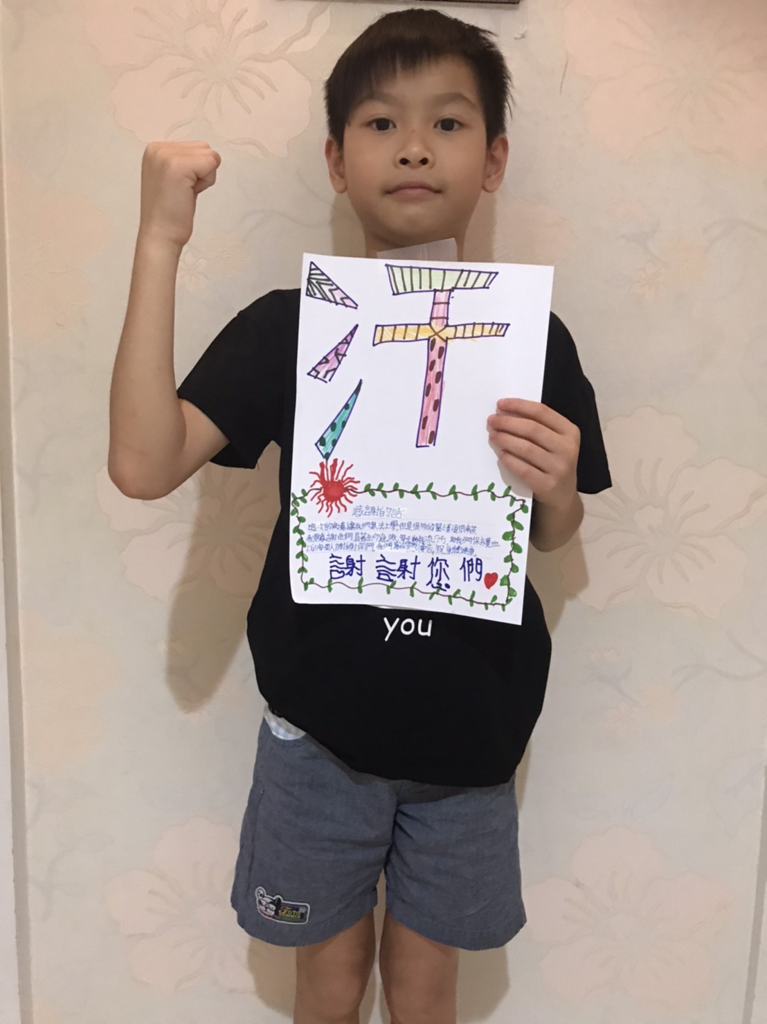 點燃這次活動的李宇樂和媽媽也將合照傳到醫院群組,身在前線的醫護人員接收到來自孩子最單純的祝福都非常感動。在醫護人員備受壓力的時刻,再興小學期盼孩子真誠的感謝發揮如聖火傳遞的力量,大家一同走過嚴峻的抗疫之路,心連心終結疫情。