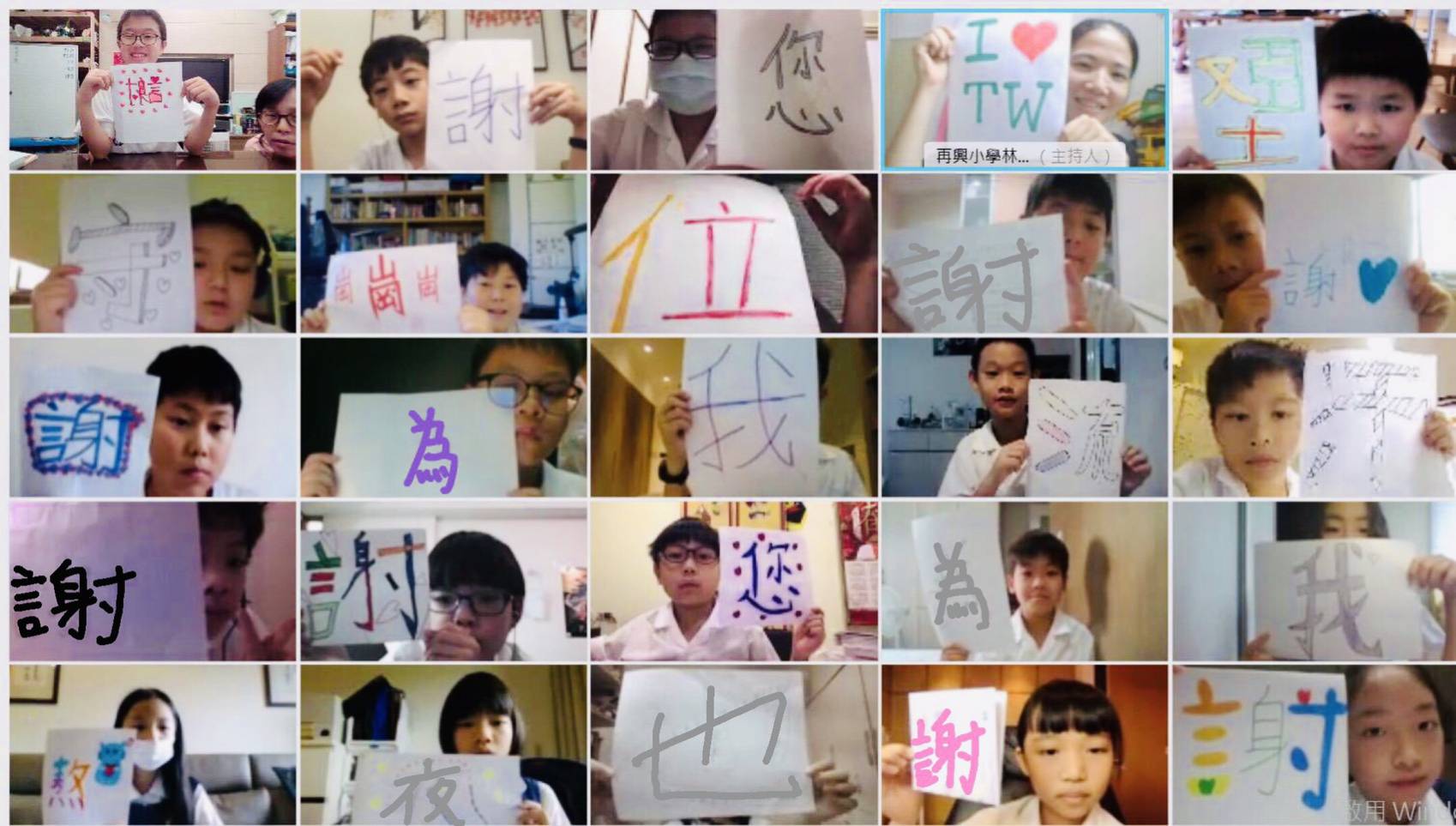 再興四義全體孩子在導師指揮和家長協助下,克服線上會議室排序合照的困難,協力完成「接力傳謝意」的珍貴合照。家長表示完成合影的瞬間她不禁落淚,因為孩子能與社會連結,是一次最棒的生命教育!