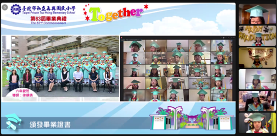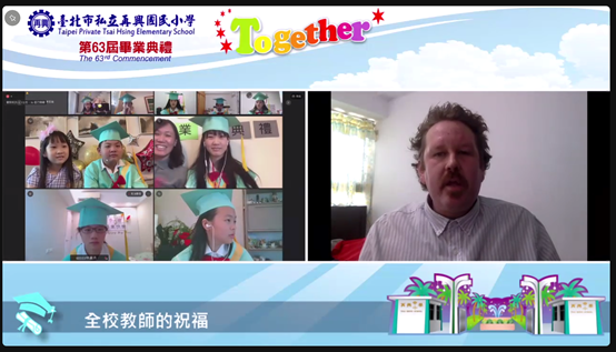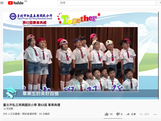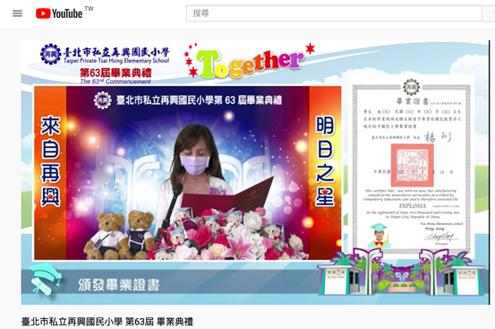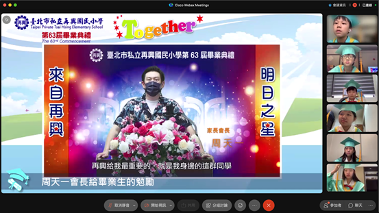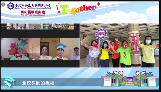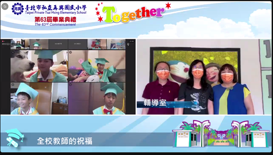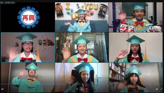 這場線上畢典舉辦方式的構想來自「想像」,從籌備開始、從無到有、從預演的不順暢之陽春版到現場播出的精裝版……除了引進專業團隊協助讓想像成真,更重要的是再興超人團隊的凝聚力與行動力:從臨時停課與展延時來不及帶回家的物品及畢業禮服,導師與行政團隊一件一件摺好裝袋裝箱宅配送到每位畢業生手中,展現在典禮當天線上——螢幕上畢業生穿著禮服畢業帽,配上刻有自己名字的再興畢業小熊,這場畢典裝備都沒少,雖然同學間彼此無法見面道別,但是除了家人陪伴外、家中毛小孩與喵星人可以一起參與觀禮,讓人感動與驚喜連連。祝福畢業生們平安、健康、快樂,結束是另一個開始,請帶著祝福勇敢前行吧!再興小學是大家永遠的家!