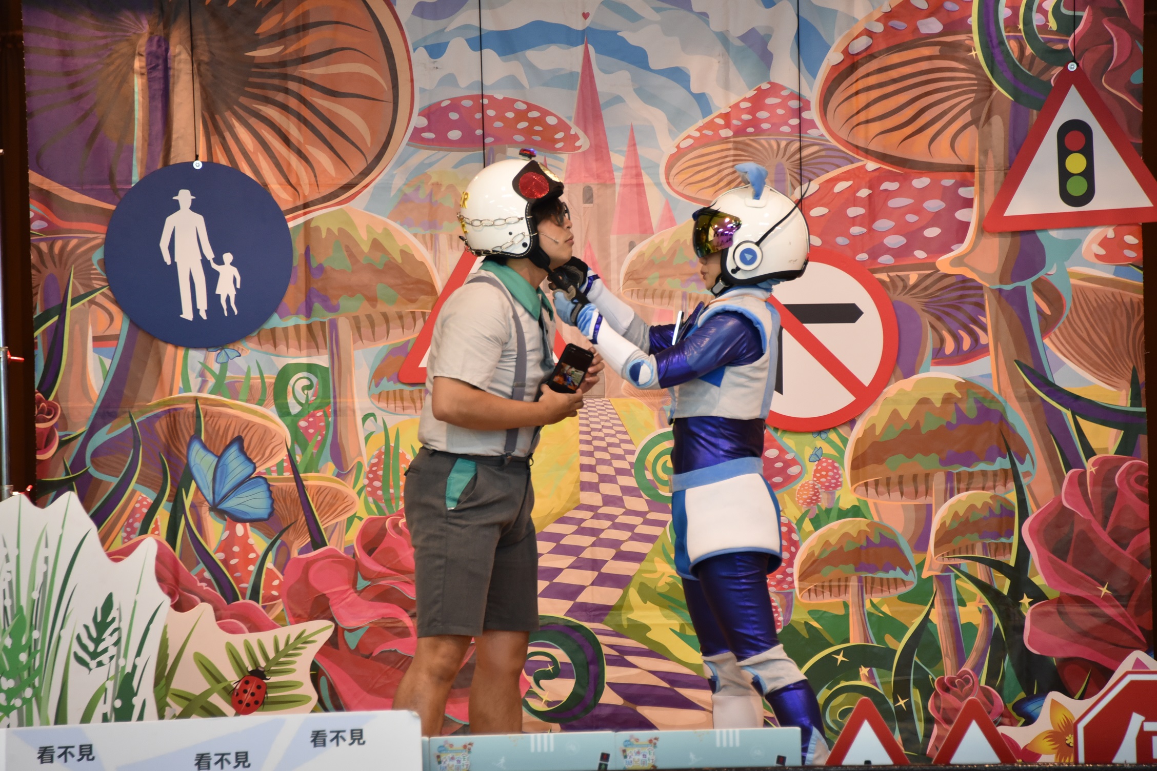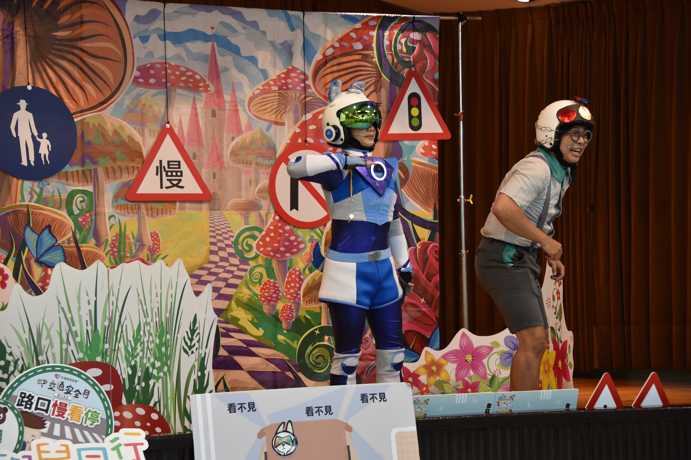 疫情趨緩後的第一場室內大型活動,就在雀躍與興奮期待的心情中熱鬧展開!由「萬花筒劇團」帶來的精采情境劇場,將原先冷冰冰的交通安全知識,巧妙的融入在戲劇中,口語化與貼近兒童生活經驗的情節,讓台下的孩子們笑聲不斷,毫無冷場!
