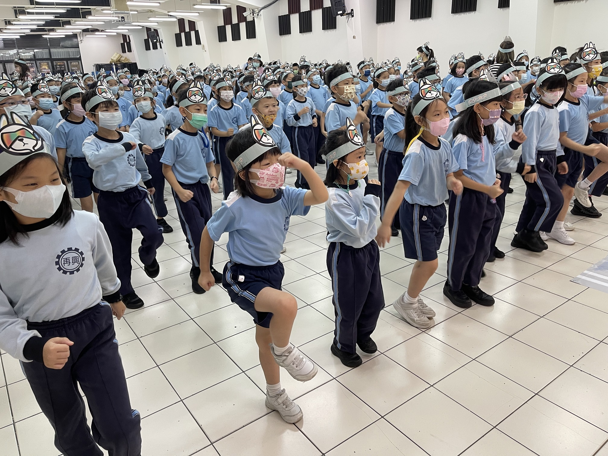 交通安全教育推廣活動-「超狗出任務」 「汪!汪!」超狗警察今天到再興小學出任務囉!全體二年級的小朋友戴上紙帽化身超狗小隊員,興奮的期待著今天超狗警察會帶來什麼挑戰任務呢? 第一次來到再興小學的「郝酉氏」,粗心大意的東奔西跑,讓台下的超狗小隊員們都幫他捏了一把冷汗!一下差點被車撞到;才剛爬起來又往另一個方向衝,聽到刺耳的長長煞車聲,實在讓大家都嚇壞了! 「郝酉氏」一連串的危險行為,讓超狗警察幫他戴上了「超安全安全帽」,得順利通過「超安全地形」的各個關卡,才能順利將安全帽脫下來!急著想將安全帽脫掉的「郝酉氏」向台下的超狗小隊員們尋求支援。出動!一起來大顯身手闖關吧!