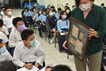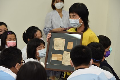 再興學生詢問老師為什麼想要從事寫作工作,桂文亞老師提到自己學生時代最擅長的就是語文科目,在中學三年級首次投稿《大華日報》獲得刊登,得到稿費和看到自己作品被印刷刊出的喜悅,帶給她莫大的鼓舞和動力。小朋友們看到桂老師初次刊登的剪報和稿費收據,不禁驚嘆連連,泛黃的紙張承載的是老師當年受到肯定的驚喜和開啟寫作志業的契機。