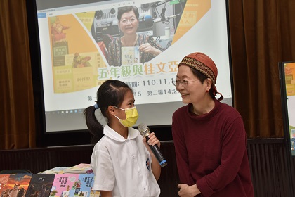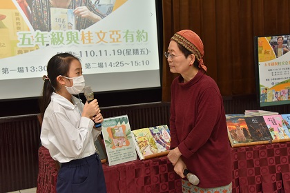 活動中,桂文亞老師仔細的聆聽發問,謹慎的回答問題,親切的與學生互動。中國戲曲和莎士比亞戲劇一向給人距離遙遠的印象,老師以典雅簡潔的文字,將充滿難字典故的原文劇本改寫為白話易懂的兒童故事,為孩子打開經典文學的大門,啟發閱讀經典的動機和興趣。活動中,小朋友問到為什麼桂文亞老師能夠堅持創作,老師說:「改寫經典故事讓孩子閱讀,創造共同愉快、更有深度的閱讀經驗是件多麼美好的事!」,為本次共讀《我們來追劇》套書課程和作家有約做了最好的詮釋。