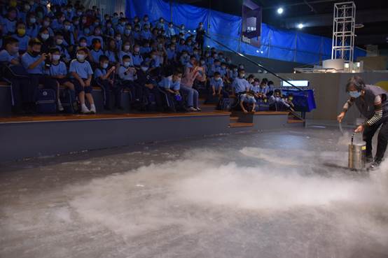 四年級探索科學校外教育 國立臺灣科學教育館、臺北市兒童新樂園 11月17日四年級師生在校園進行大客車逃生演練後,帶著雀躍及期待的心情前往國立臺灣科學教育館,參觀科學探索區、物質科學展示區等。其中科學遊戲的世界是最吸引學生的展區,學生親自操作飄浮在空中的球、體驗騎乘方形輪自行車等遊戲,從遊戲中學到「伯努利定律」及「滑輪原理」--等科學原理。 在人體器官展示區,老師透過人體模型介紹各種不同器官位置,讓學生學到各種器官的名字與功能,同時孩子們化身柯南小偵探,進入大腸探索腸道內消化物質如何吸取水分與分解出電解質;在古物揭密—故宮文物科學鑑識展示區,學生透過X光照射、拍照、層層剖析等方式了解各種古文物的知識。 值得一提的是,科教館特別為了學生加演1場初探科學展示—驚奇的液態氮,老師先把一朵花放在-196度的液態氮容器內,花馬上結成冰老師隨手一抓花就碎掉了;接著又把汽球放入液態氮容器再拿出來氣球由小慢慢變大最後竟然有1顆氣球破掉,老師說明因溫度變化分子緊縮在一起,回到常溫分子又慢慢恢復原狀。學生也上了一堂特別的實驗課程。
