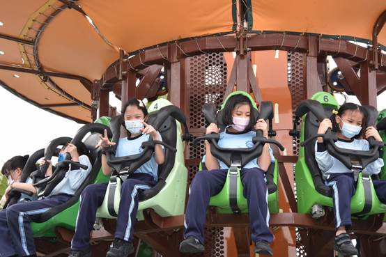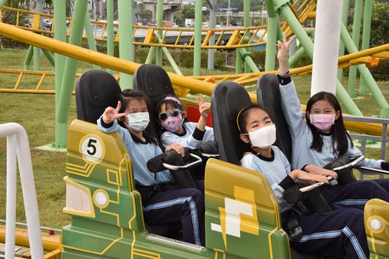 中午在兒童新樂園用餐後,班級老師帶著學生一起享受大怒神、雲霄飛車、小飛碟、碰碰車、旋轉咖啡杯、海盜船等遊樂設施,看到學生充滿行動力要在最短的時間完成任務,每位學生都玩的精疲力盡。到了回程的時間,學生內心充滿知性與感性,不只是好玩更是收穫良多,也留下美好的回憶!