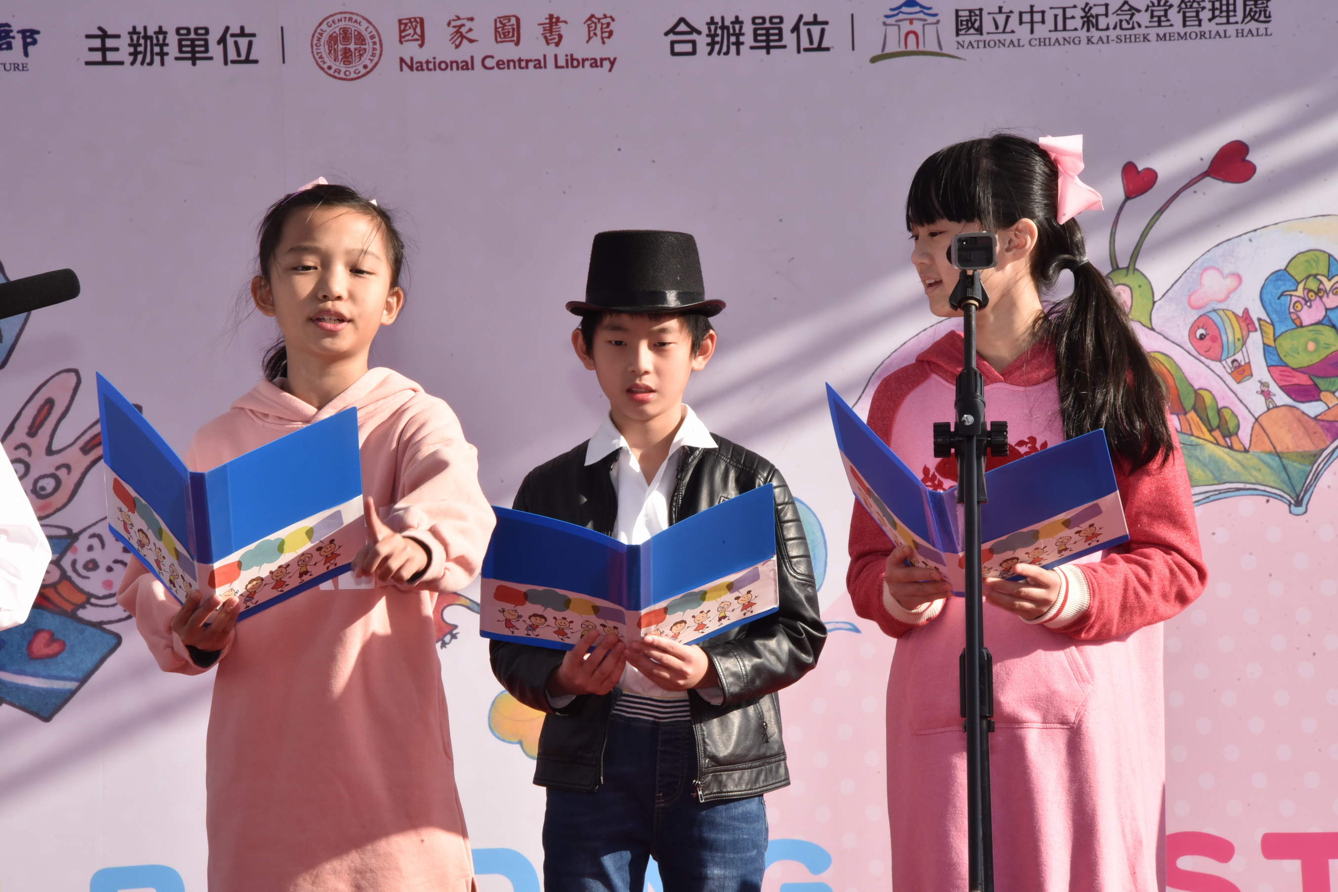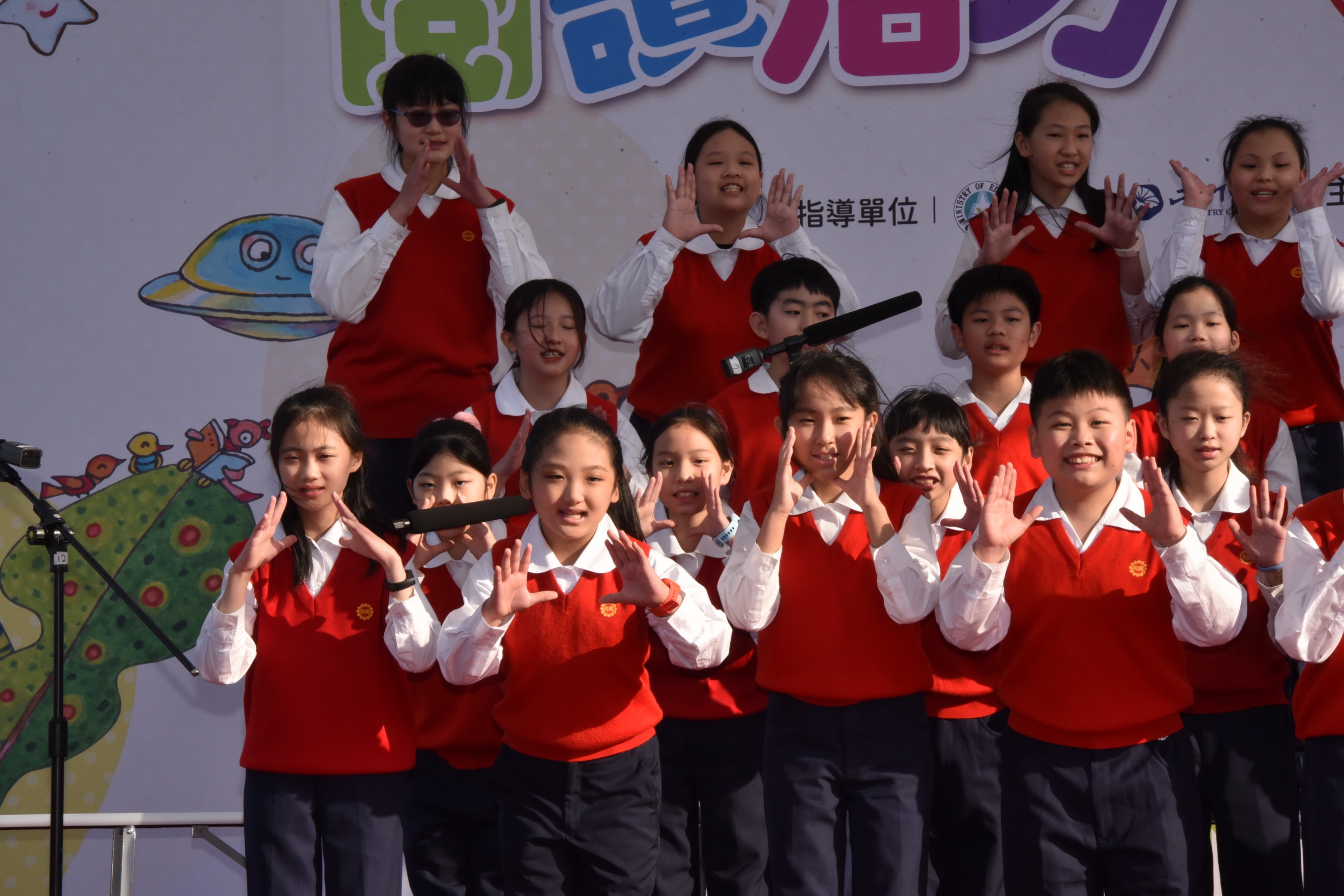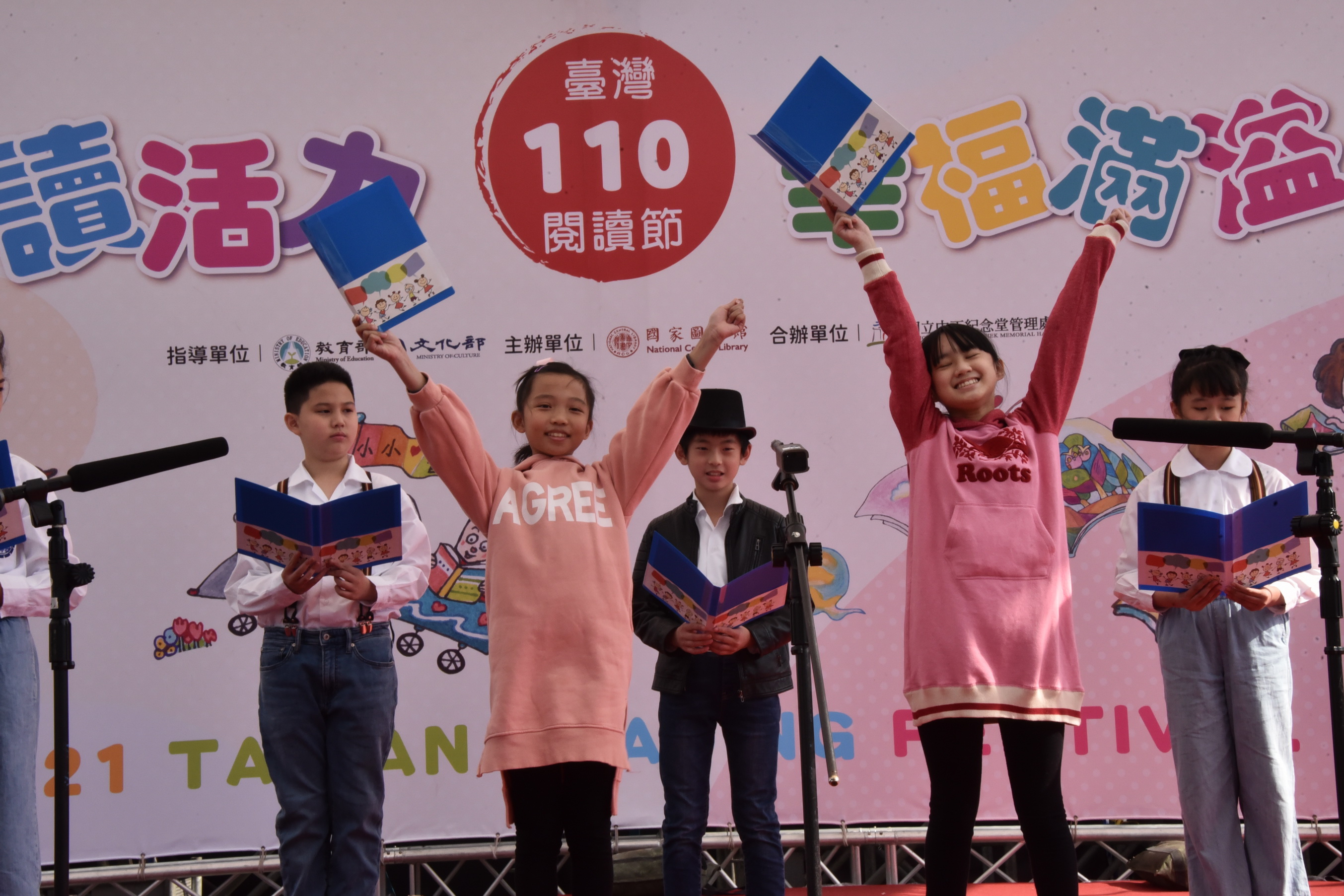這次的臺灣閱讀節,本校除了設置闖關攤位,在主舞台亦有合唱團與英語讀者劇場的演出。讀者劇場團員由五年級9位學生組成,今年度代表再興小學參加台北市英語文學藝競賽,榮獲南區讀者劇場優勝,以流暢的英語與生動的肢體語言演繹<Rumors Running Wild>的故事。由一群愛唱歌的小天使所組成的合唱團,為呼應台灣閱讀節創新、多元的精神,在演唱曲目的組合上,除了選擇雅俗共賞的「Come to the music」,歡樂活潑的Disney Dazzle迪士尼組曲,更納入溫馨的台語歌曲「戇囝仔」,除展現多語文的樂曲,更呈現再興合唱團駕馭各種曲風的實力。美妙的歌聲與情節詼諧有趣的讀者劇場內容,都吸引了不少的目光,更贏得肯定的讚賞。
