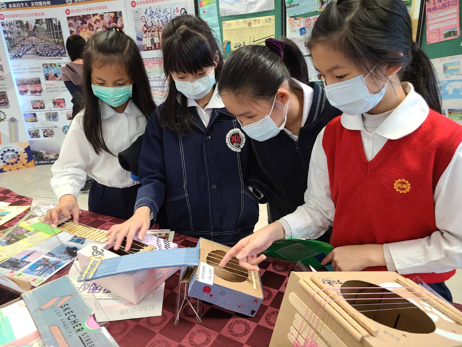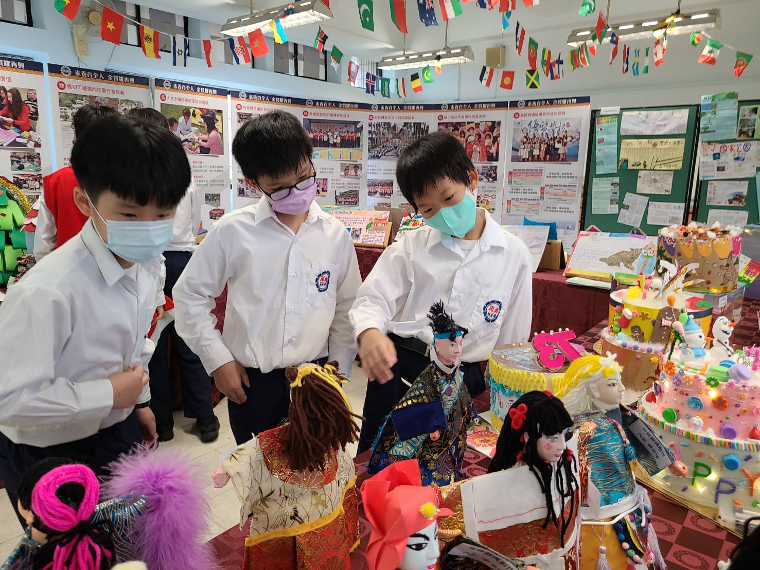 國際教育暨領域學習成果展於五樓多功能教室辦理,展出各年級領域課程的學生學習成果作品。作品包含英語主題課程、三年級社會實作課程學習單、雙城比一比手工小書、我是馴字師捉腰令牌、紙張真有趣主題課程作品、英語系國家介紹主題海報、瀕危動物主題海報/小書、國家公園主題介紹小書、家鄉名勝古蹟主題報告、自製樂器、我的理想小屋、海洋地景捏塑、布袋戲偶、校慶蛋糕、自製手工包等;另外同步提供線上成果簡報影片,分享教學歷程和動態影片闔家共賞。師生在參觀展覽過程中相互觀摩學習, 孩子也藉由作品展出提升學習動機與自信。在再興校園,時時處處都在學習,學習就在生活中,成就了師生多元豐碩的教學成果。
