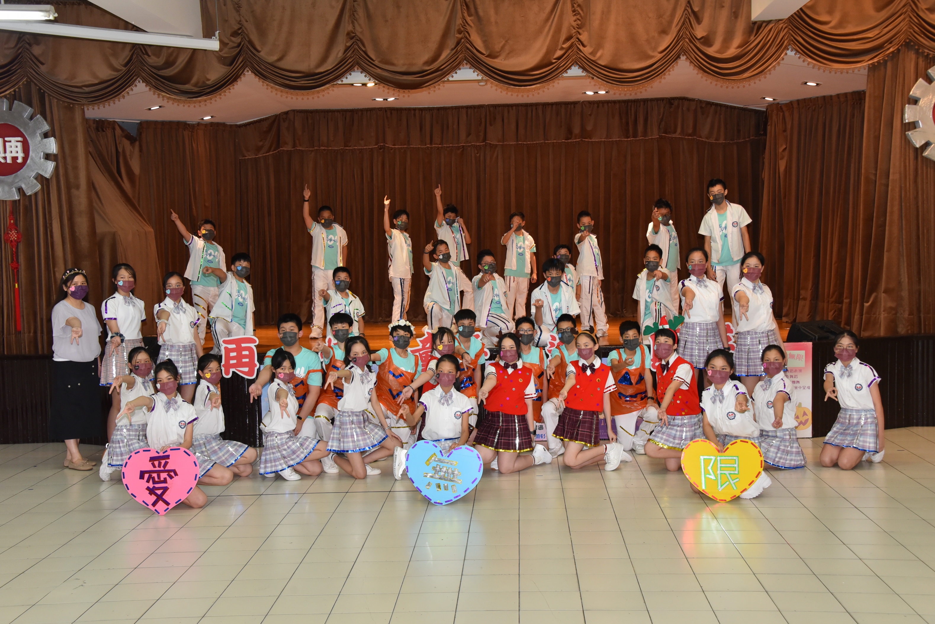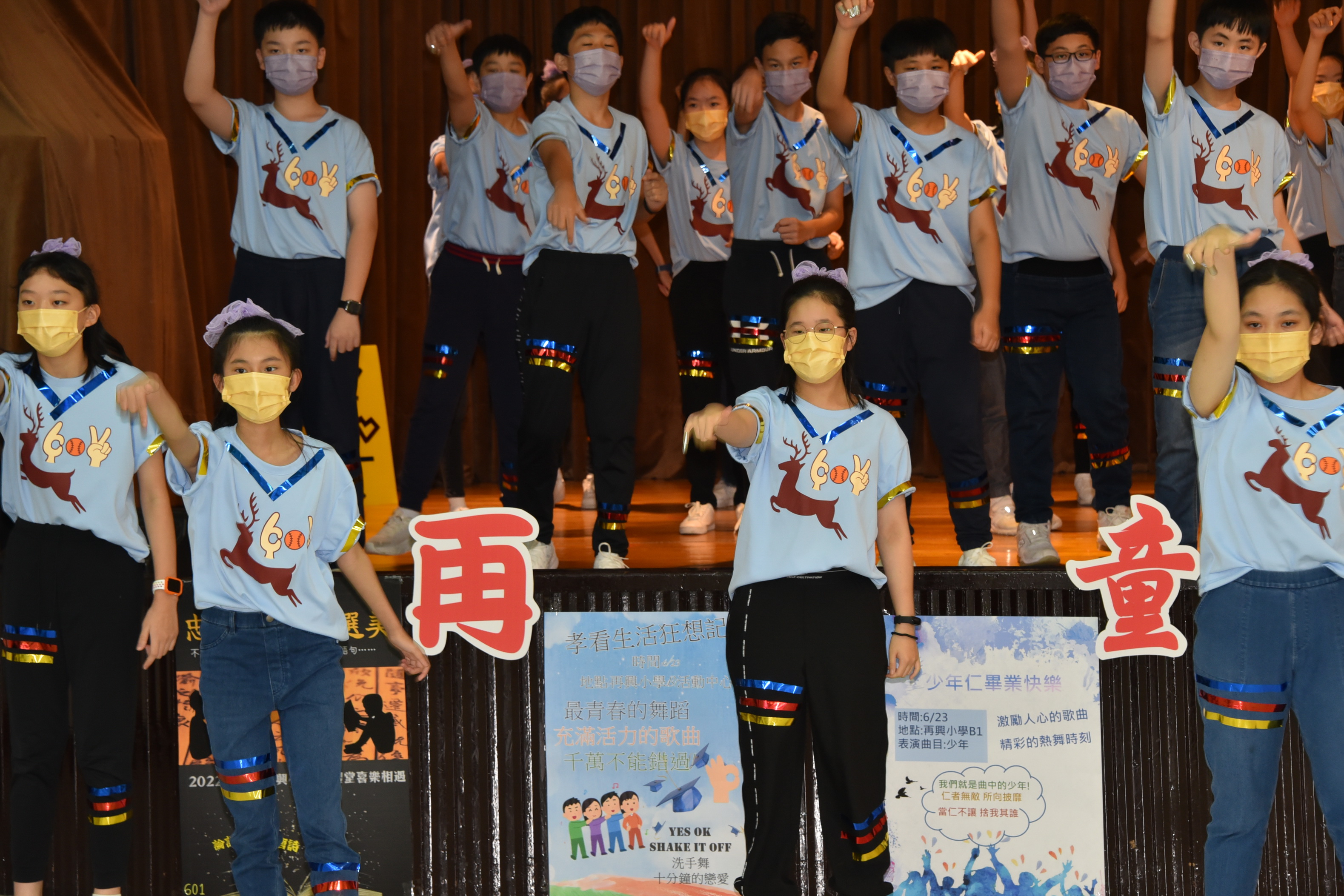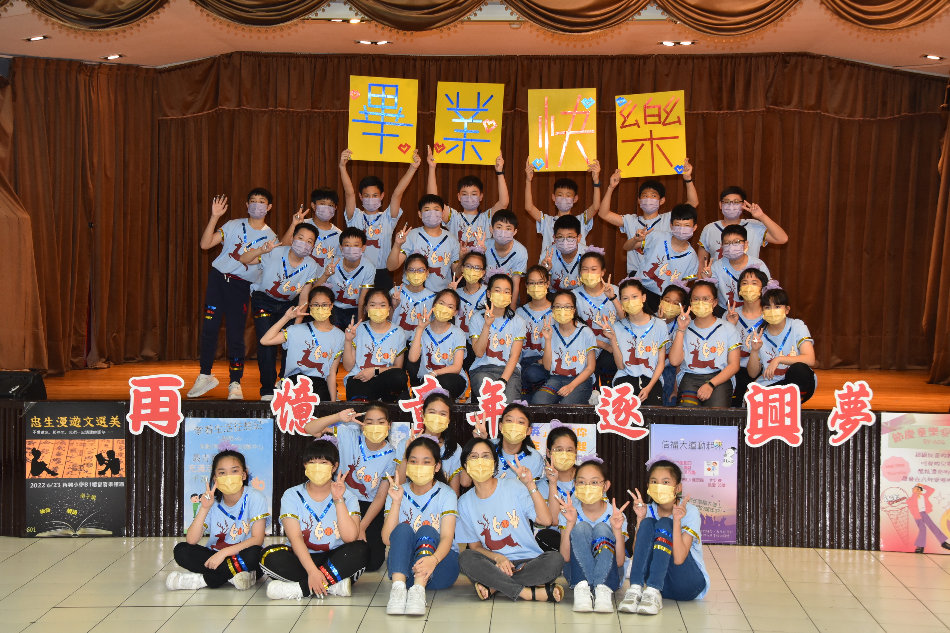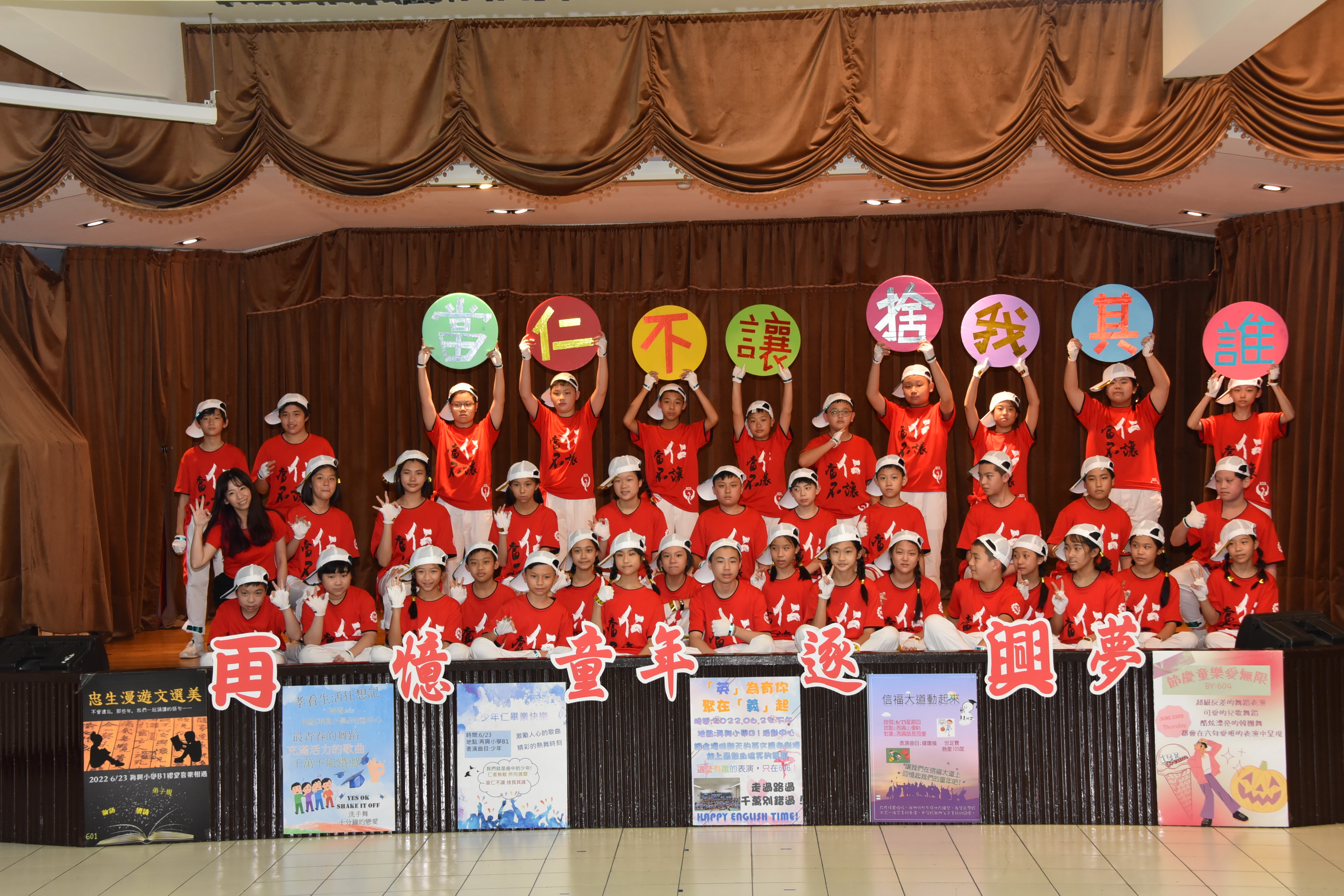 再憶童年逐興夢—2022畢業展演活動 今年因新冠肺炎疫情畢業展演改為錄影方式進行,學校於111年6月23日下午於學校B1活動中心進行六年級畢業展演錄影。今年的主題為「再憶童年逐興夢」,此次的展演內容展現出64屆畢業生在美術創作、音樂、舞蹈、戲劇、說唱藝術等藝文領域的多元學習成果。六年忠班「忠生漫遊文選美」,介紹學生六年學習文選弟子規、唐詩、論語並以舞蹈方式呈現;六年孝班的「孝看生活狂想記」,呈現學生六年學校生活洗手防疫、安全教育—等,並用下課鐘聲串起演出;六年仁班「少年仁畢業快樂」,表現學生六年學校生活快樂的一面;六年愛班「歡樂節慶愛無限」,以學生經歷春夏秋冬四季學校所舉辦的活動:萬聖節、兒童節健行、校慶、社團成發—等;六年信班「信福大道動起來」,參與學校體育活動:扯鈴、跳繩、籃球、體操、舞蹈—等並結合學生專長展現;六年義班「英為有你在義起」,藉由英語讀者劇場展現學生上課所學並以舞蹈、劇場方式表演。今年的畢業展演雖然是錄影但學生的表演依然精采,謝謝幕後所有的老師們所給予畢業生的指導,期許你們創造出屬於64屆畢業生的燦爛光芒。 |