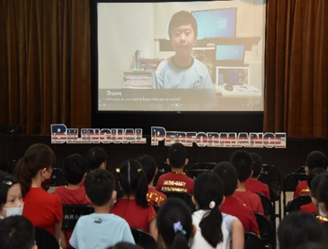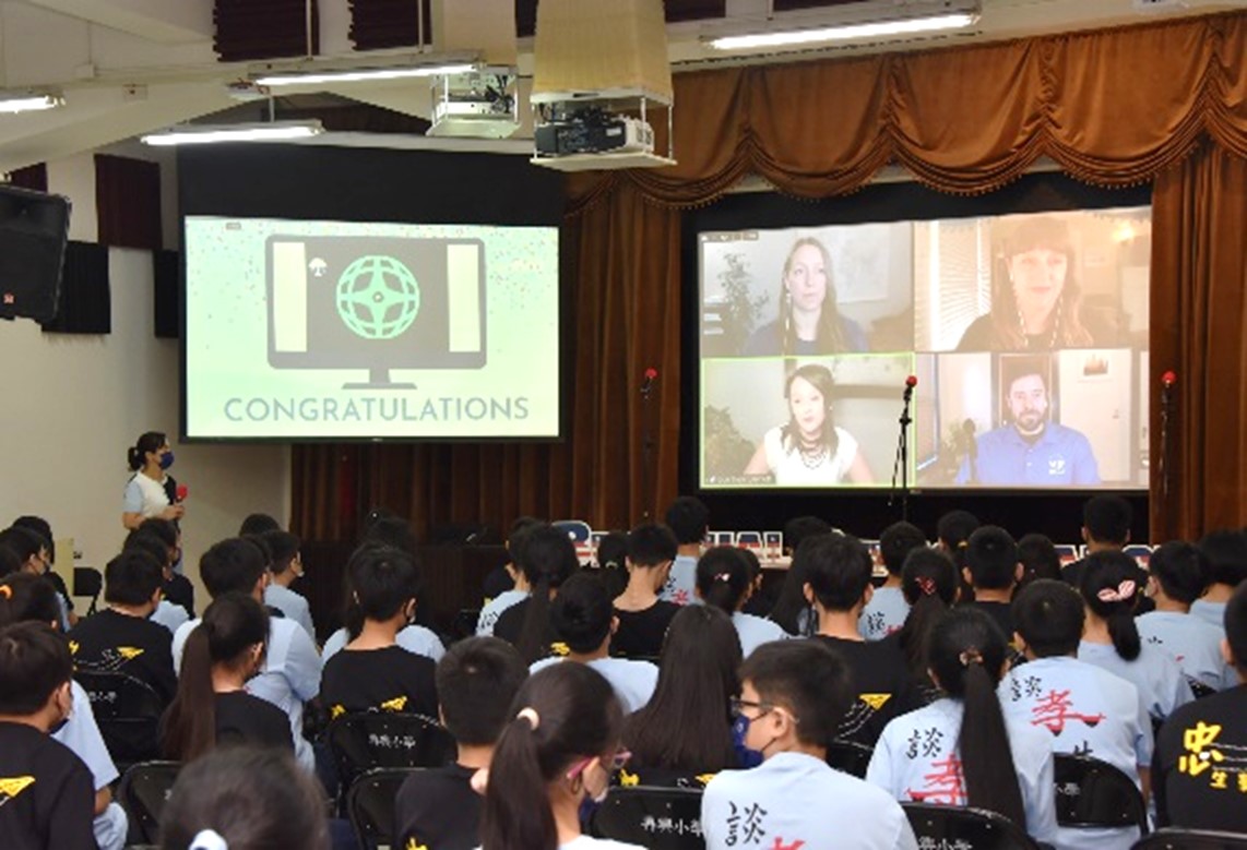 六年級的學生,無論是在家或在校,都同步與校內師長和在美國的老師們,一起完成了這場特別的英語數位學習成果展。