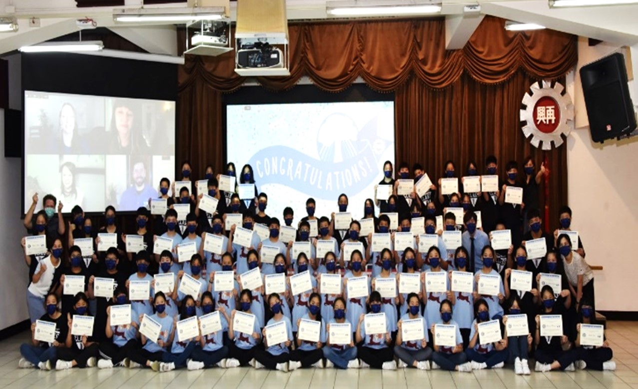 為了這場成果展,中外師們事先悄悄錄下溫暖祝福,當天送給畢業生一個驚喜。美國的外師們特地編寫一首專屬再興學生的英文歌曲,優美的音樂加上用心安排的歌詞,聽唱起來別有風味。學生們則是將這兩年的數位英語學習過程,分成不同小組與時段,一一以流利英語說明呈現。多元的學習與豐富的收穫,讓學生與師長都驚覺原來我們一同經歷這麼多。
