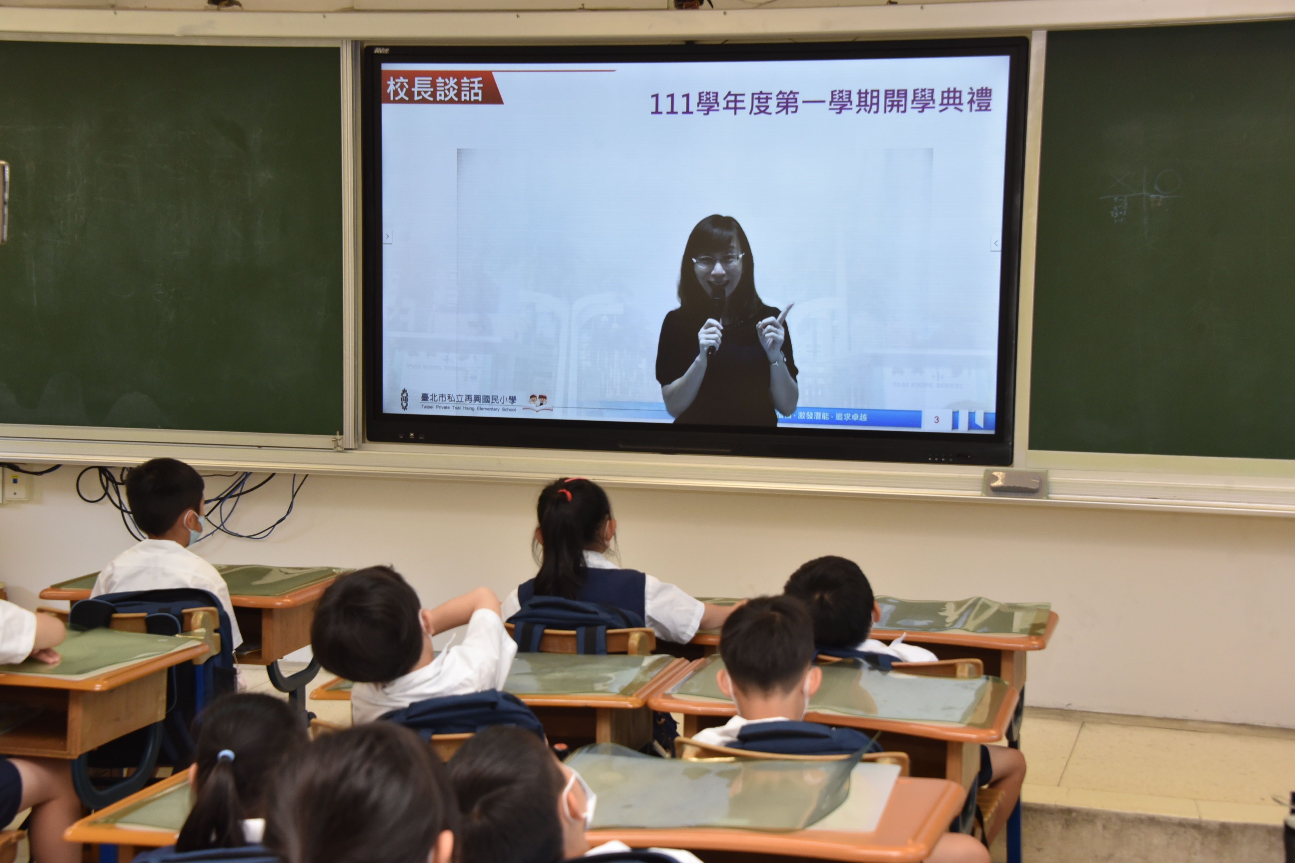 因新冠肺炎疫情持續,所以開學典禮改為線上直播方式進行。開學典禮中,楊校長期勉學生能夠學習一項藝術(ART):A代表「態度」–學生要有主動學習、待人接物的態度;R代表「責任感」–學生要對自己負責任、對他人負責任,學生自己完成功課、整理書包;T代表「寶藏」–學生有好的學習態度、努力負責任就能找到自己學習的寶藏。最後楊校長期許每位學生都能在新學期的開始展開美好的一天。 |