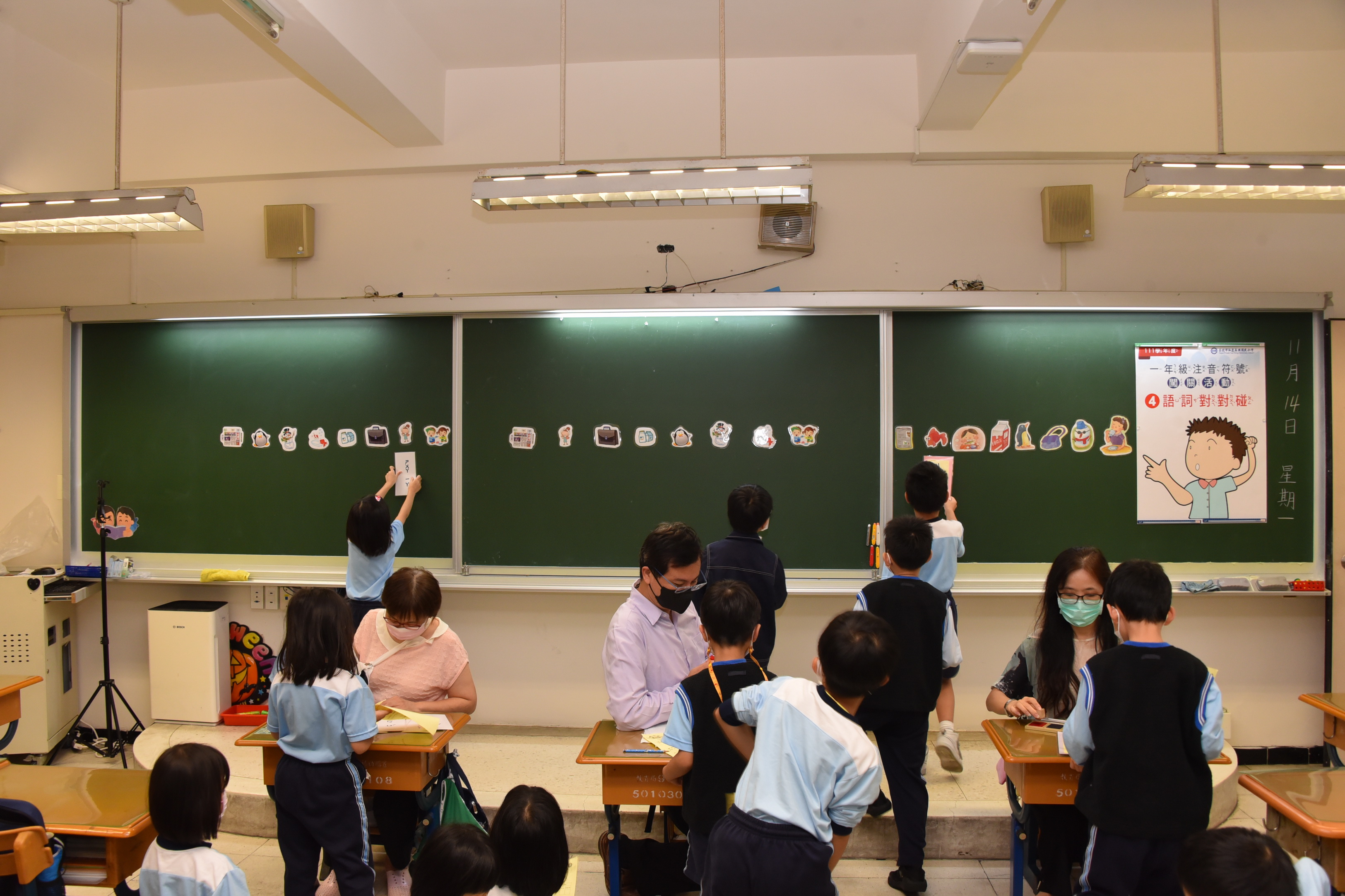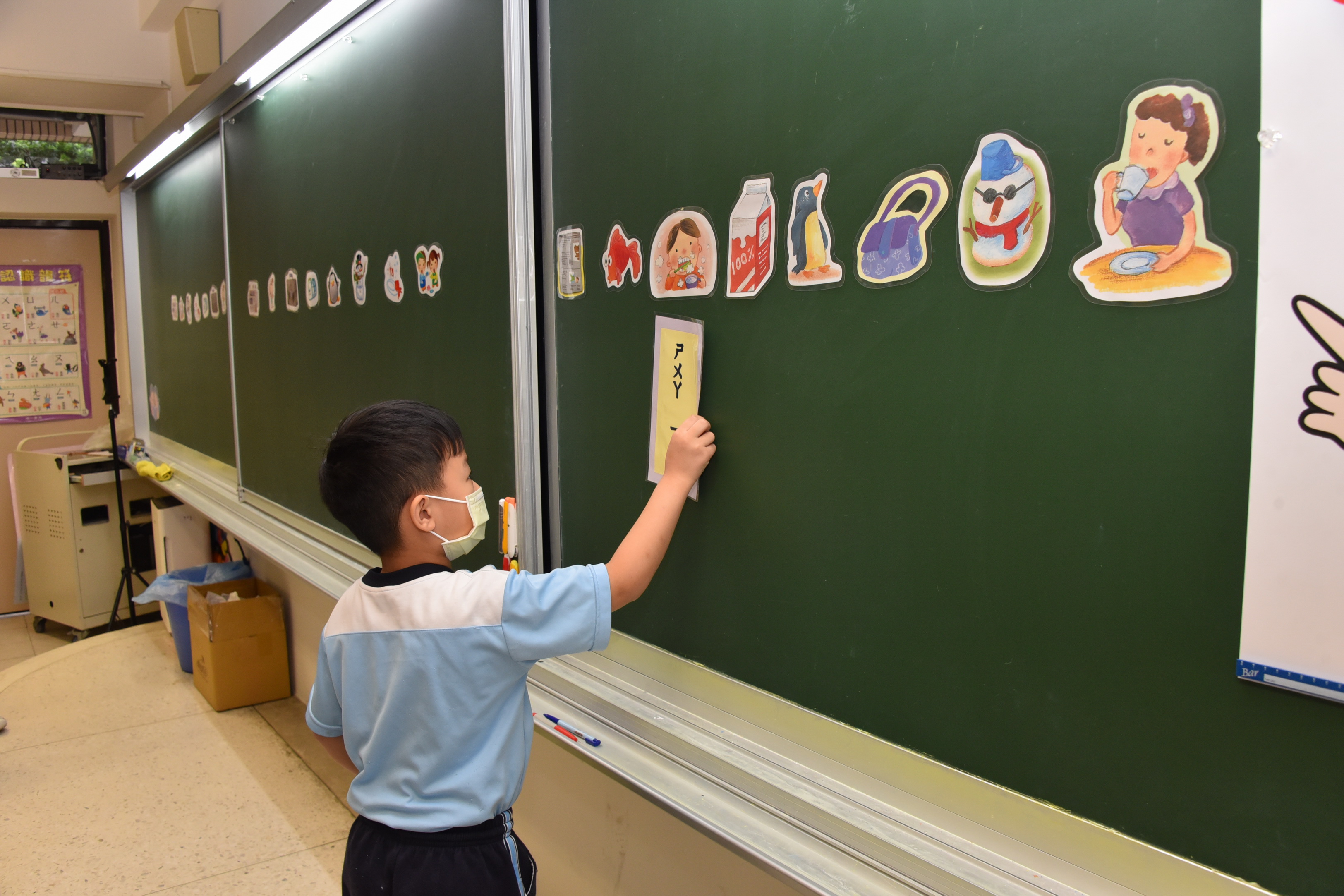 🎯眼明手快:聽到關主唸的注音,用手拍打貼在黑板上的單字卡。