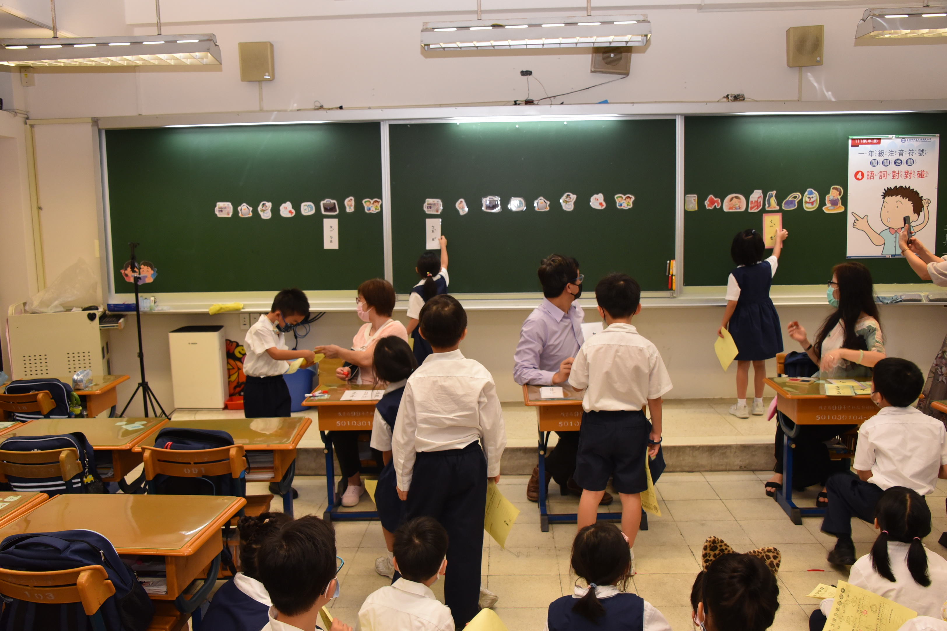 🎯語詞對對碰:將手上的字卡對應黑板上的圖卡,並大聲的唸出該字卡的讀音。