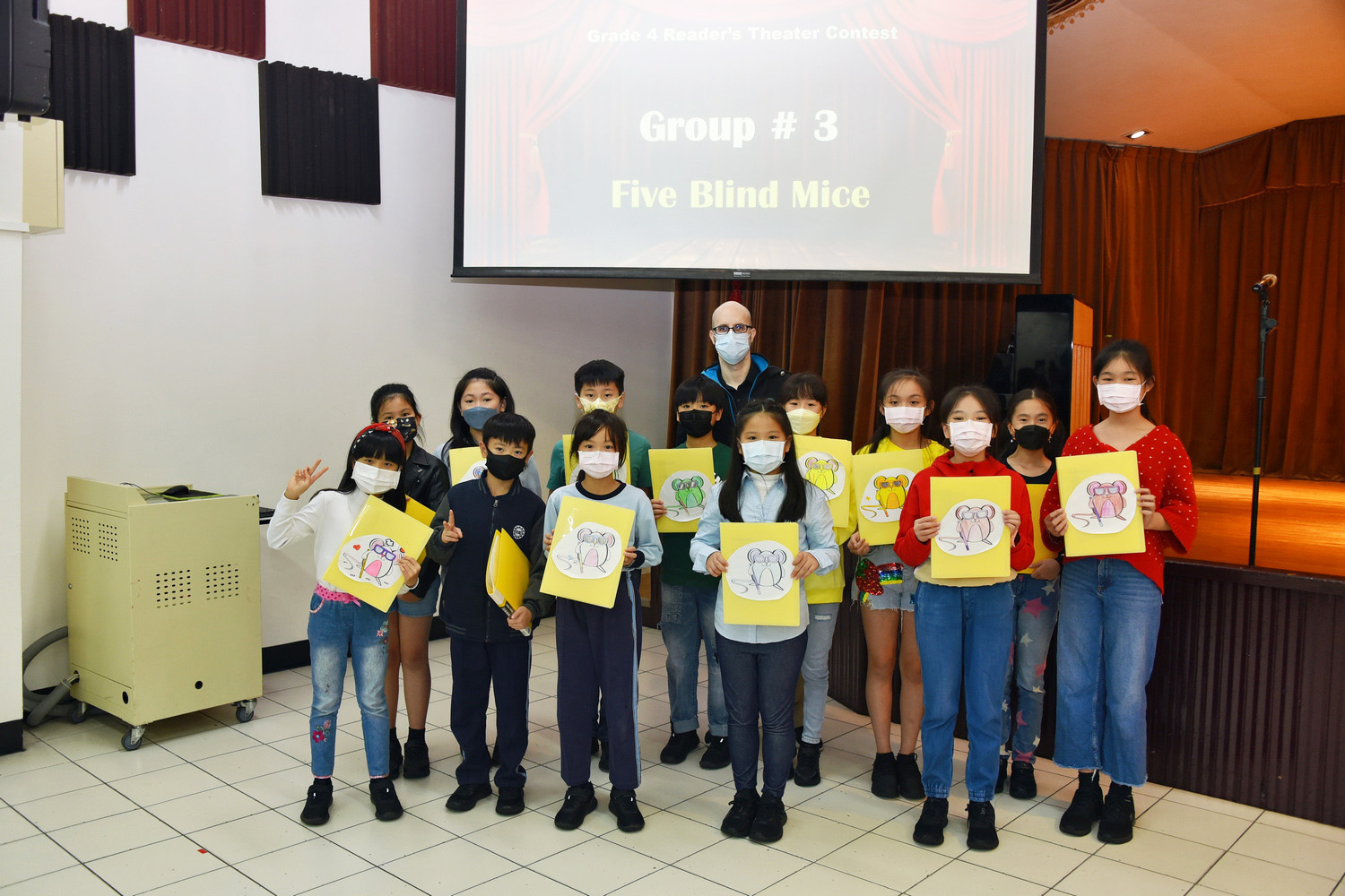 四年級的學生,在英文老師的指導下,從學期初就開始英語讀者劇場的準備,除了課堂上的學習,更常利用午休時間加強演練,師生一同努力練習,為自己也為班級爭取榮耀。