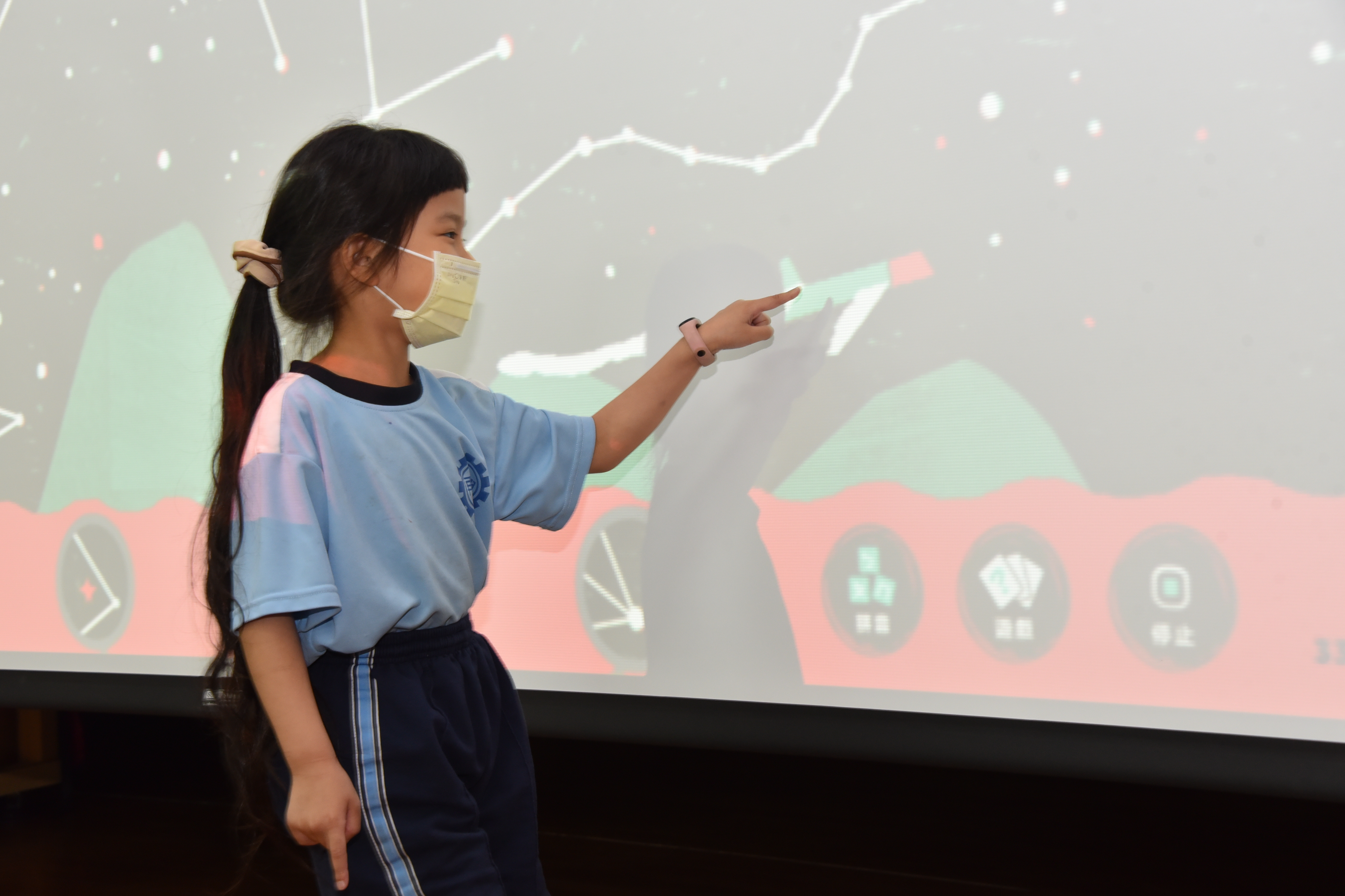再興歡唱卡拉OK 聽~活動中心傳來了小朋友歡樂的歌聲,原來是顏志豪老師分享了自己創作的注音符號歌曲,從「ㄚ、ㄨ、ㄟ」唱到「ㄣ、ㄥ、ㄦ」,歌詞韻腳到位,旋律多變又朗朗上口,大家唱得欲罷不能,也讓活動達到最高潮。 |
