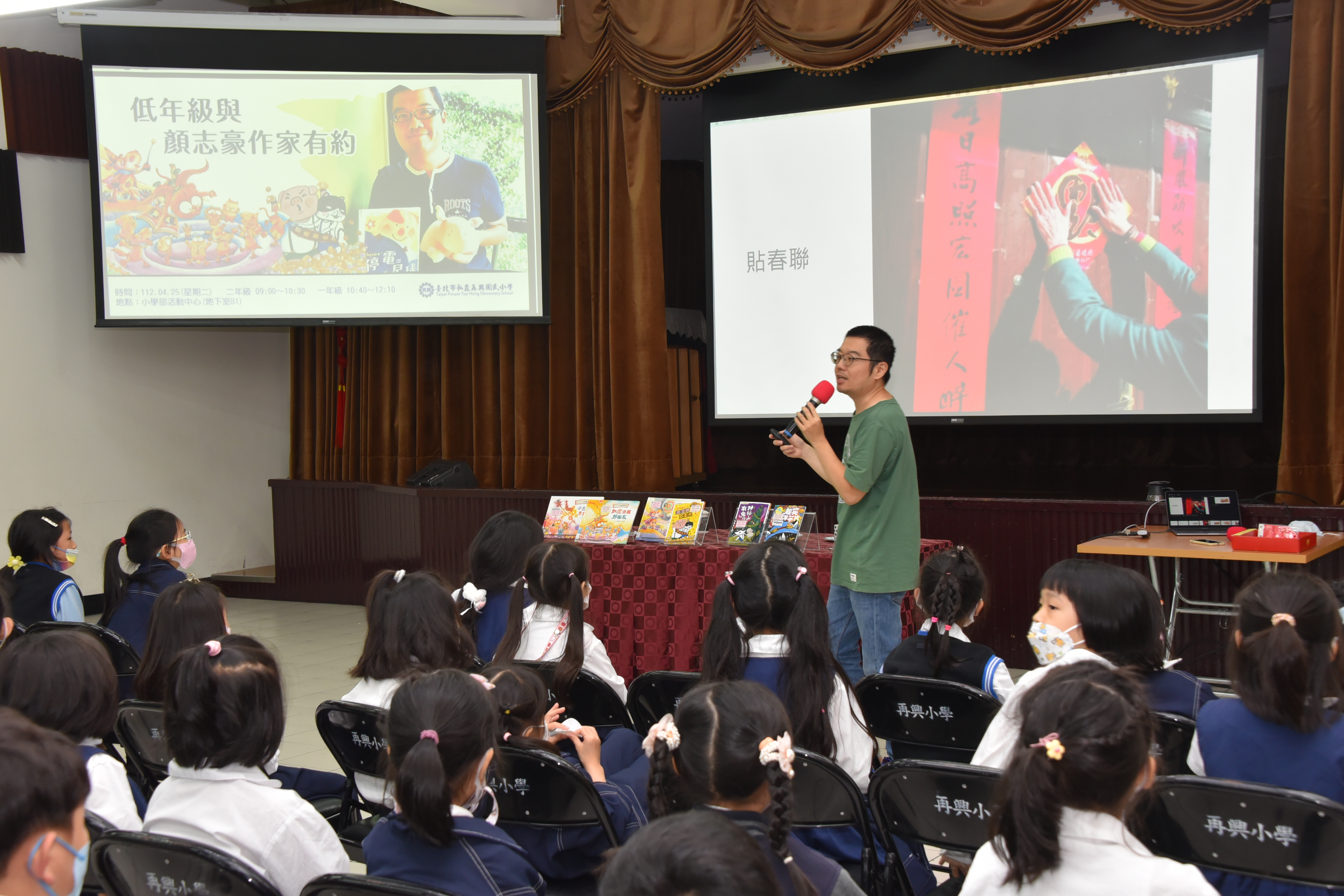 | 4月25日顏志豪老師風塵僕僕地從臺東飛來,就為了和再興小學的約會。這場作家有約不論是一年級或是二年級都是初體驗,所以令人期待。顏志豪老師今天化身為顏志豪哥哥,與孩子們分享創作以及其中的喜悅。 | ||