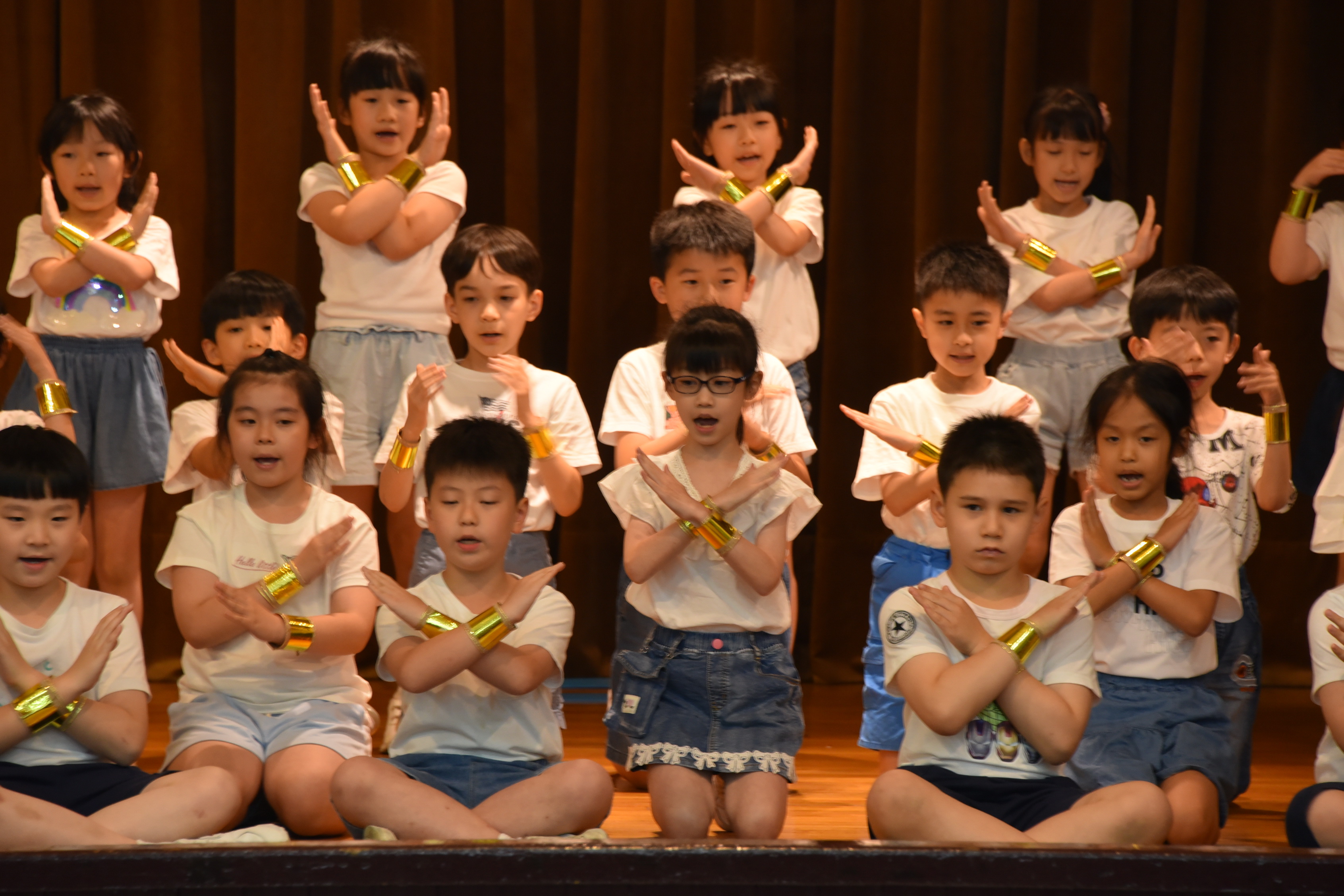 師生們透過經典文選課程弟子規的字、詞、句念讀,從中理解意涵並與生活經驗連結,明瞭日常生活中應注意的規矩、禮節和做人處事的態度。相信只要能在生活中努力實踐,定能成為具有好品格,人見人愛的好孩子!此外,在編創成果展現的歷程中,師生巧妙的運用戲劇、改編歌曲唸謠、隊形轉換、師生自製創意道具的多元方式,展現出各班獨特的風格。