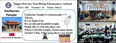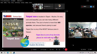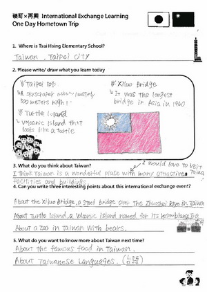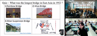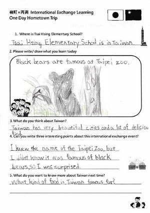 三校師生都設計問答題目來加深學生的學習印象和趣味性,例如日本最有名的地標和動畫是什麼?天空塔高多少公尺?臺灣最高的建築物是什麼?在木柵動物園可以看到那些臺灣特有生物?在選項設計上,嶺町小学校和再興教師還特別融入彼此的在地內容,例如詢問大田區所在地的河川,列出「淡水河」的選項;詢問臺北哪座寺廟和教師有關,列出「淺草寺」的選項;師生在回答時不禁會心一笑也備感親切。