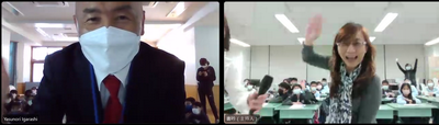 在這次交流學習中,雙方教師也保持聯繫進行調整,例如簡報、問答和分享的時間分配、增加圖片、文字和實物輔助理解,和合作設計英語學習單。特別感謝東京都交流事務局大和小姐耐心的協助溝通,為雙方師生帶來充實美好的交流體驗。在交流進入尾聲之際,嶺町小学校吉藤博和 校長和大家分享自己登上東京都最高峰雲取山和玩滑雪板的照片,邀請再興師生前來作客;再興小學楊珩 校長也回應希望彼此在不久後能在東京或臺北相見。彼此的情誼隨著互動增加逐日加深,雖然身在異地,交流氣氛卻又像同學朋友相處般親切。