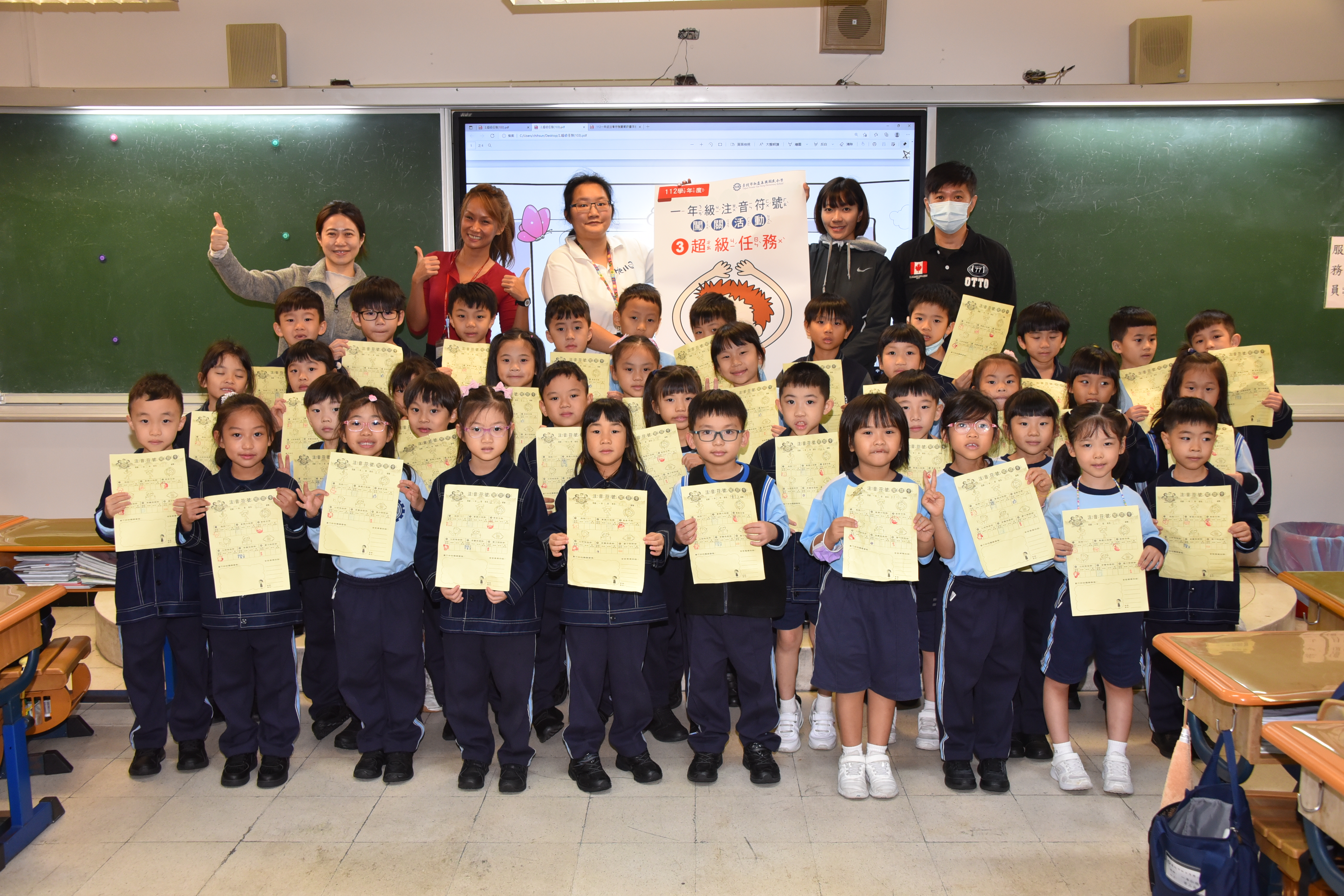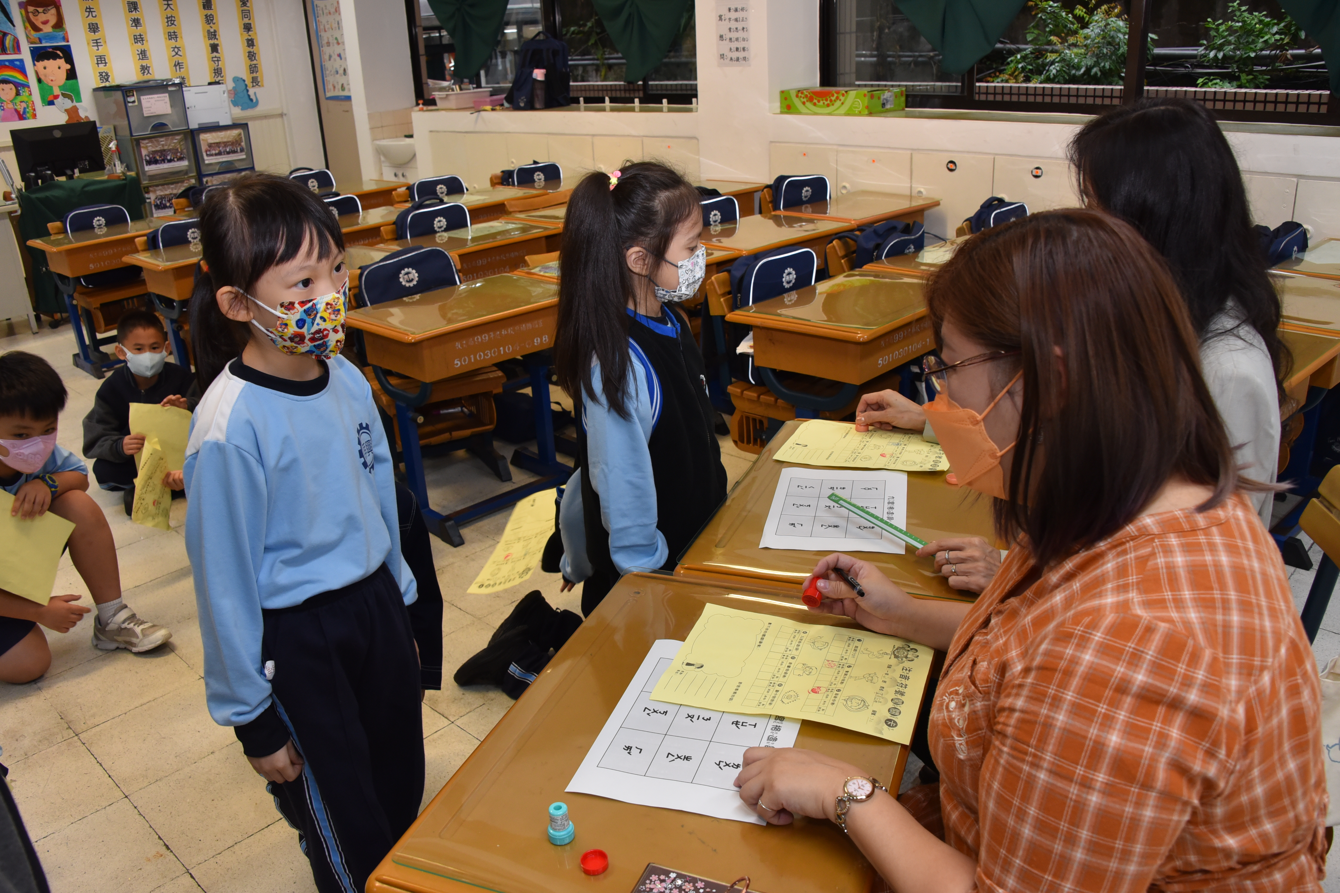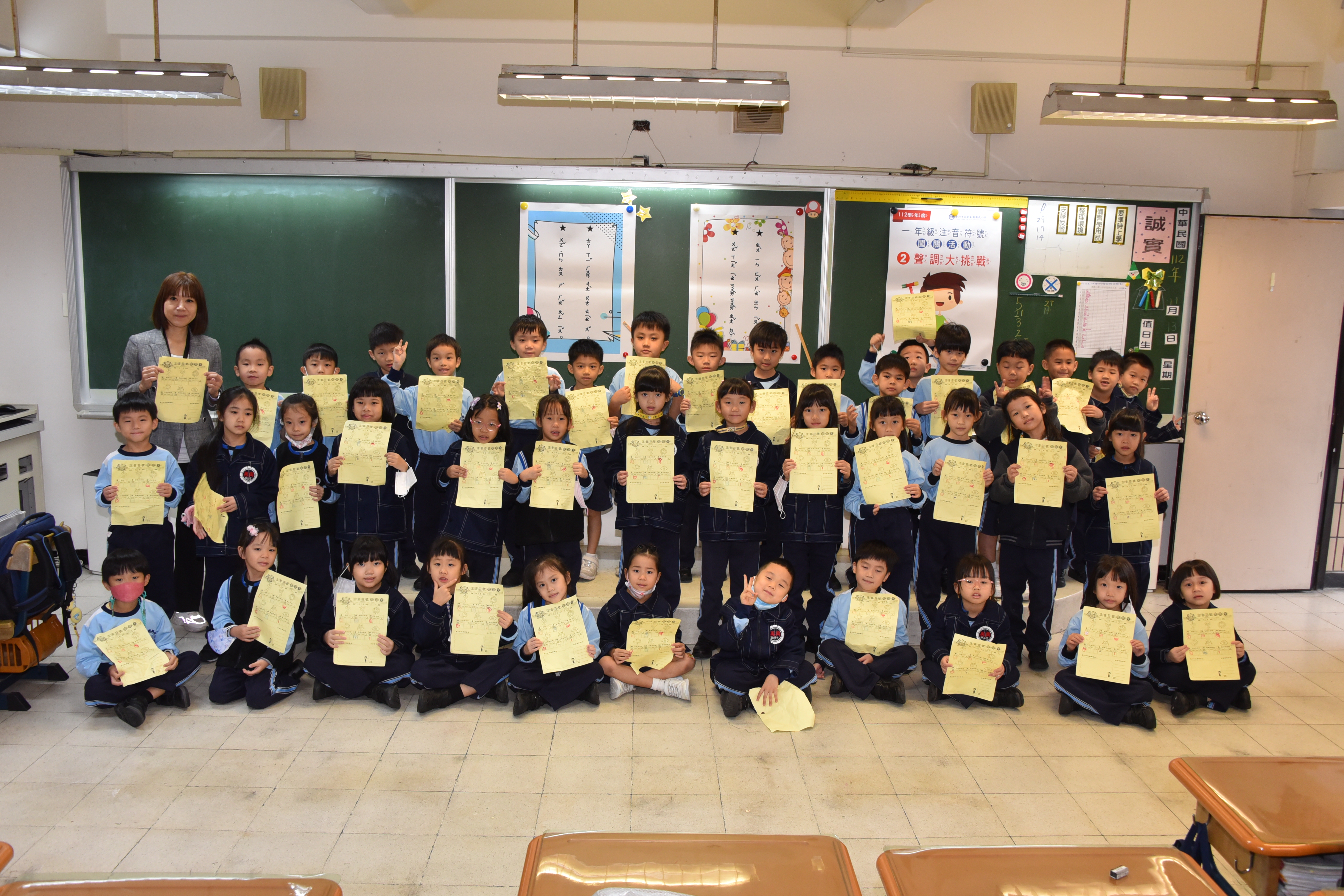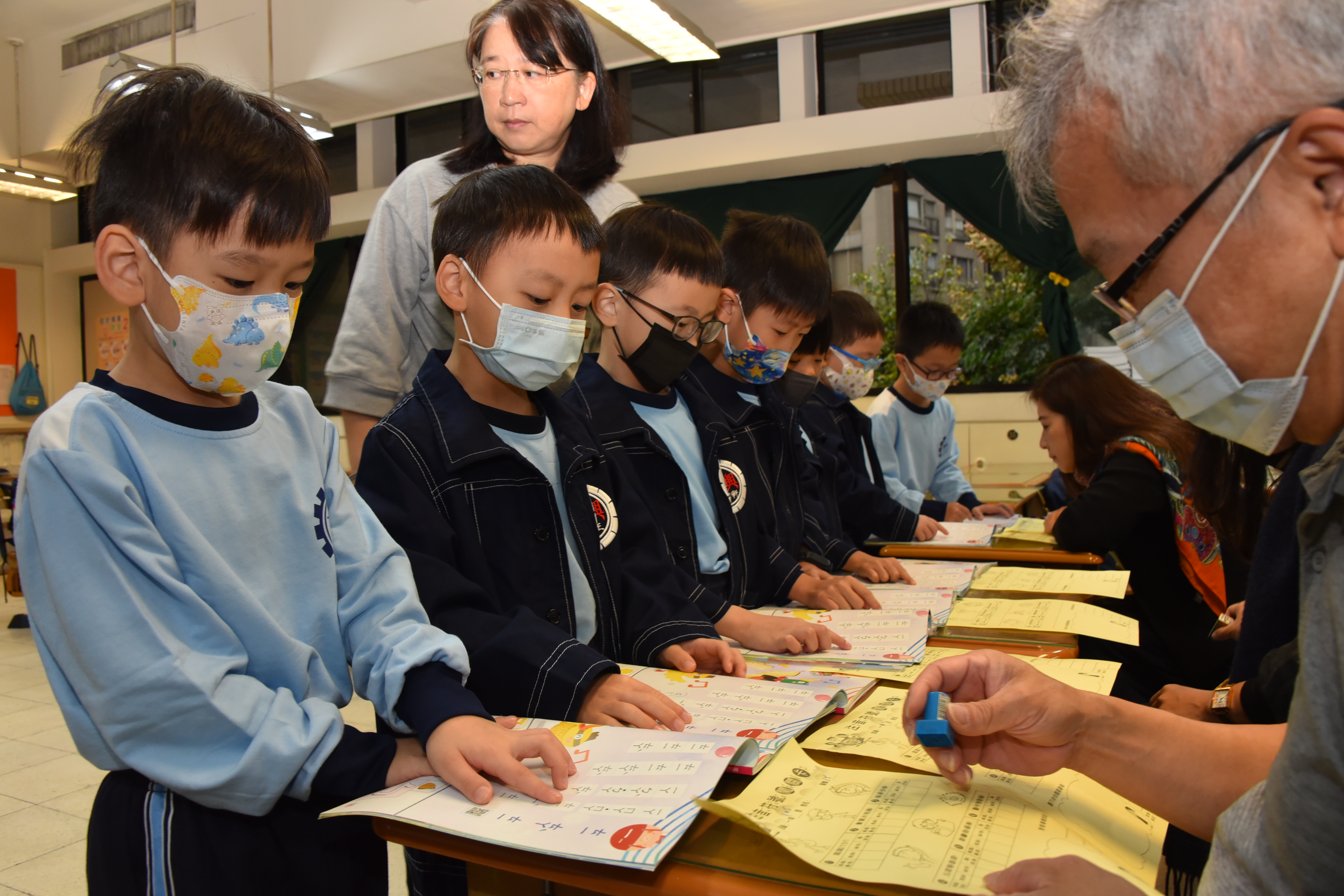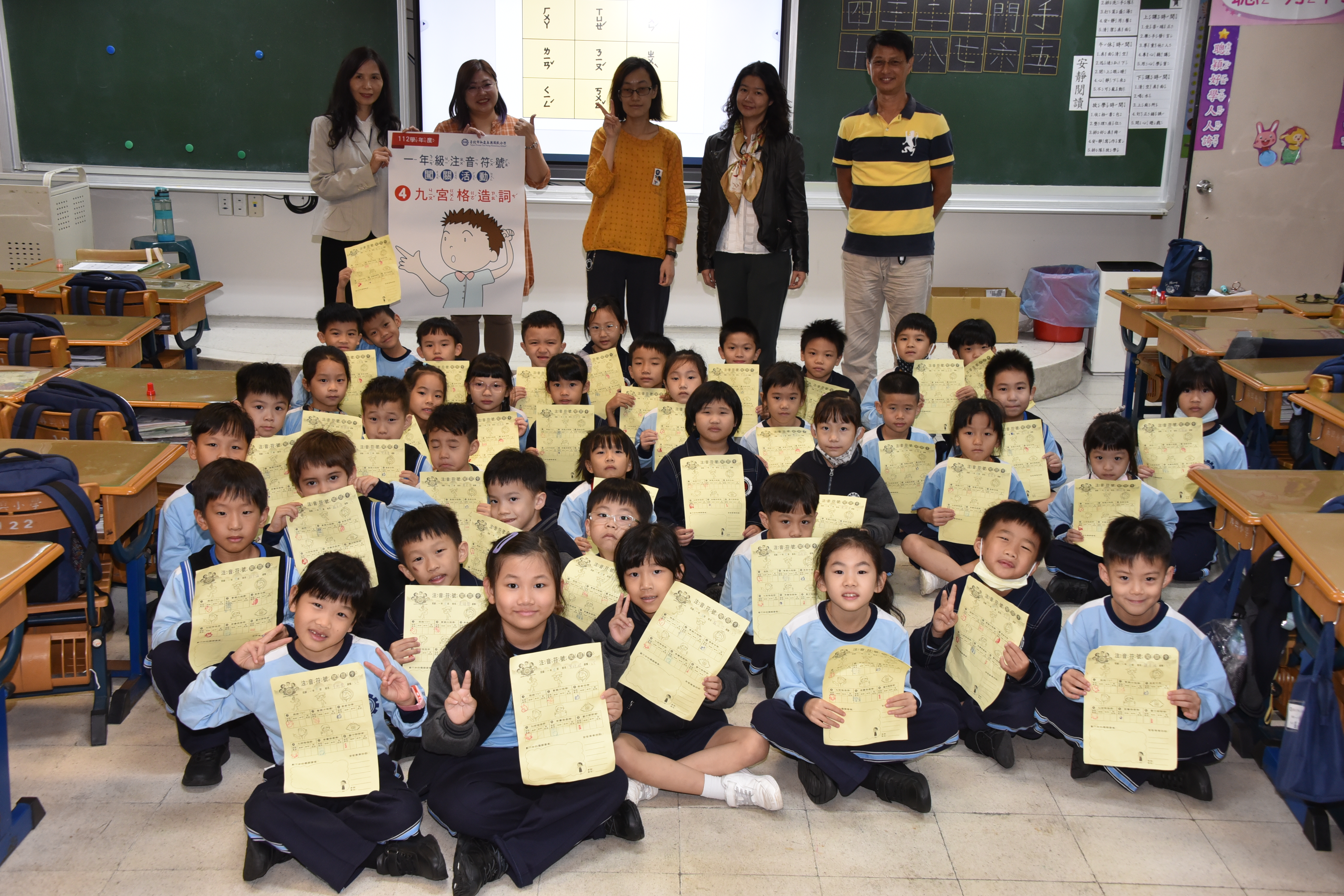 在闖關過程中,學生們積極參與,在導師井然有序的帶領下一一完成每道關卡。有的孩子神采奕奕、活力充沛;有的孩子沉著冷靜、專注投入。在六個關卡中,除了仔細聆聽關主們的規則說明外,也要大聲唸讀、動腦思考,更需要手腳並用動動身體。在每位學生的熱情參與下,也強化了自己對教材內容的理解與認知,展現學習注音符號之成效。而熱情的關主老師們,更是在每位學生認真完成關卡任務後,不吝於給予大力的讚美與掌聲,在闖關卡上蓋上大大的獎勵章!破關後蓋滿六個獎章的孩子們臉上的笑靨,是對自己的肯定與讚美,期許孩子們接下來的國字學習之路充實與豐富,也能更踏實與充滿信心!