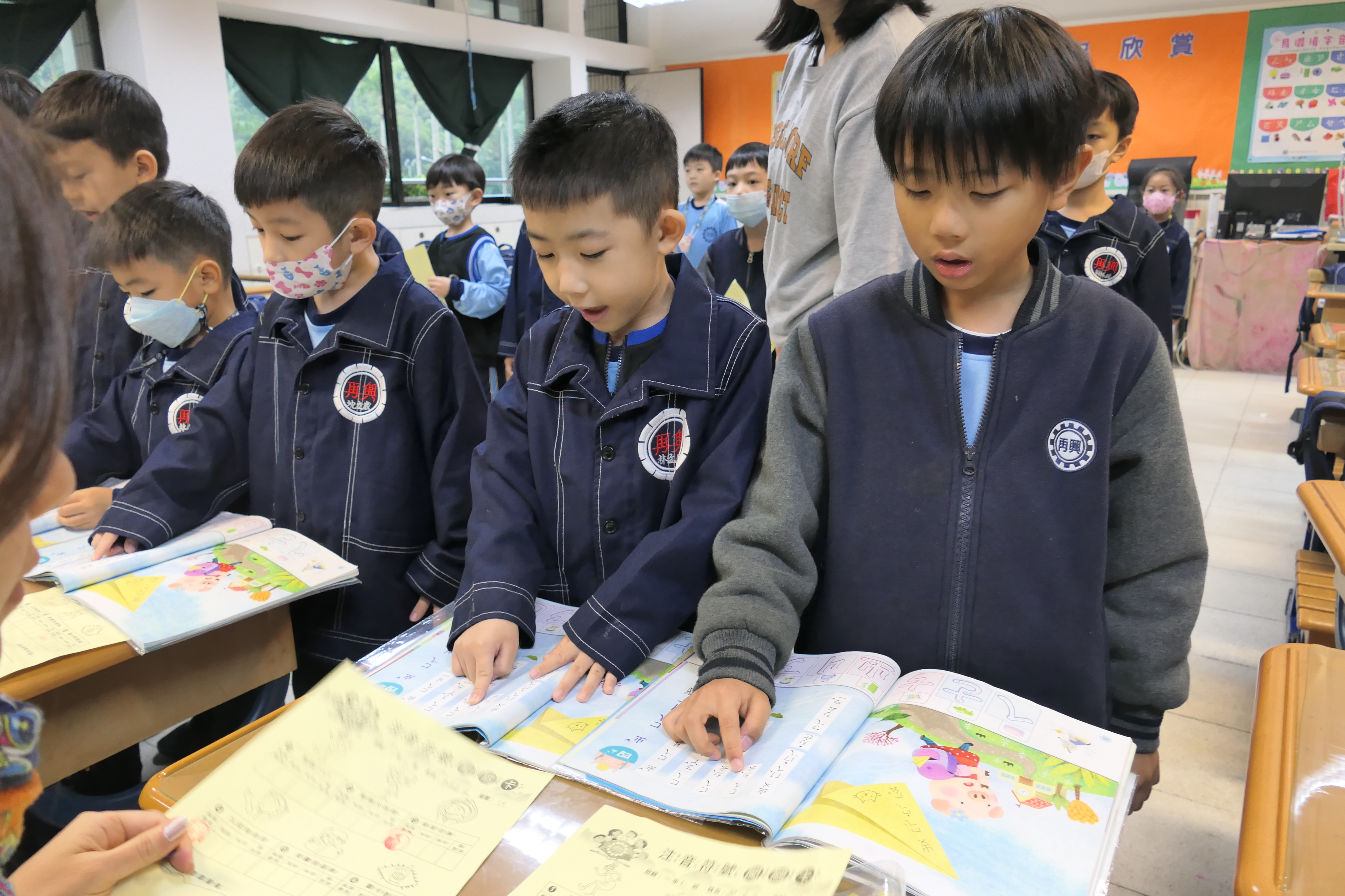 秋風瑟瑟,飄著微微細雨的11月13日早晨,小一注音符號闖關活動依舊熱鬧滾滾、盛大展開。在歷經了十週的注音符號教學,一年級導師們精心設計了六個不同主題的闖關活動,讓學生們在享受闖關的樂趣中,也能寓教於樂,將注音符號的學習成果展現其中,透過活潑的闖關遊戲,讓孩子們在注音符號的語文世界中得到更多的學習樂趣與成就感!這六個闖關活動分別為「跳跳ㄅㄆㄇ」、「聲調大挑戰」、「超級任務」、「九宮格造詞」、「美讀我最棒」、「圖卡對對碰」。就讓我們來欣賞可愛的小一生們認真又專注的精采表現吧!