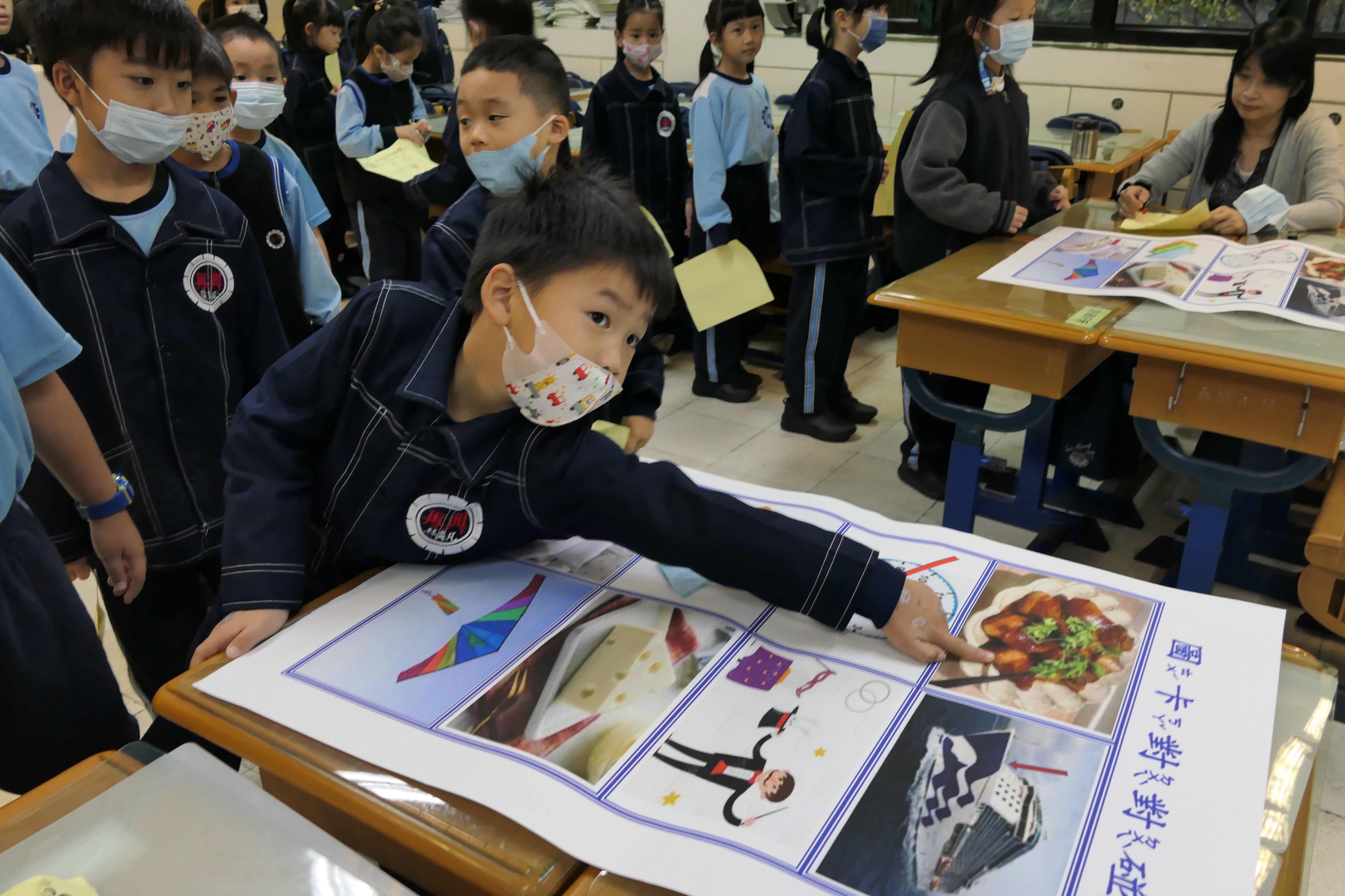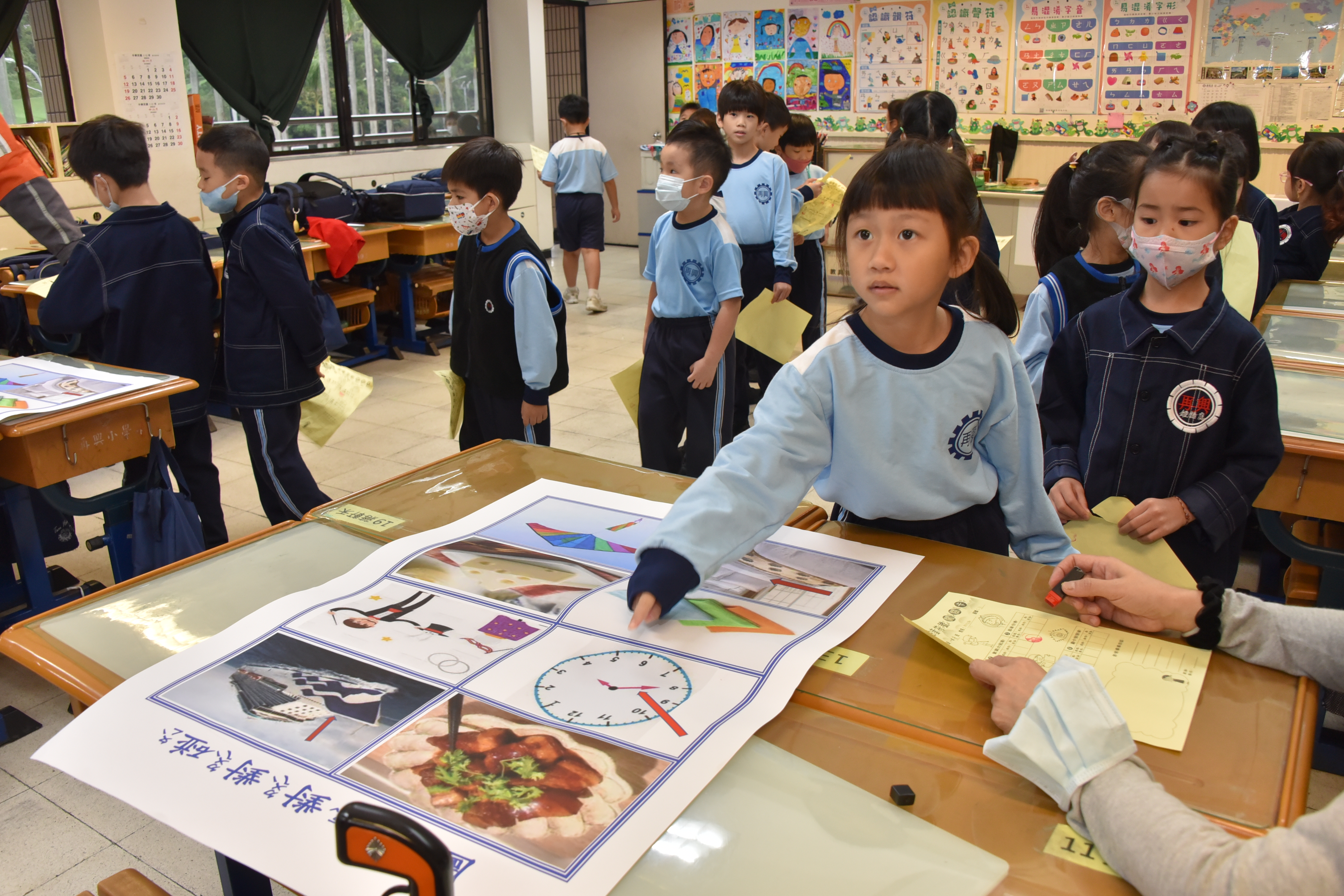🎯圖卡對對碰:學生將指定的語詞,在海報上比出對應圖卡,並大聲的唸出該字卡的讀音。