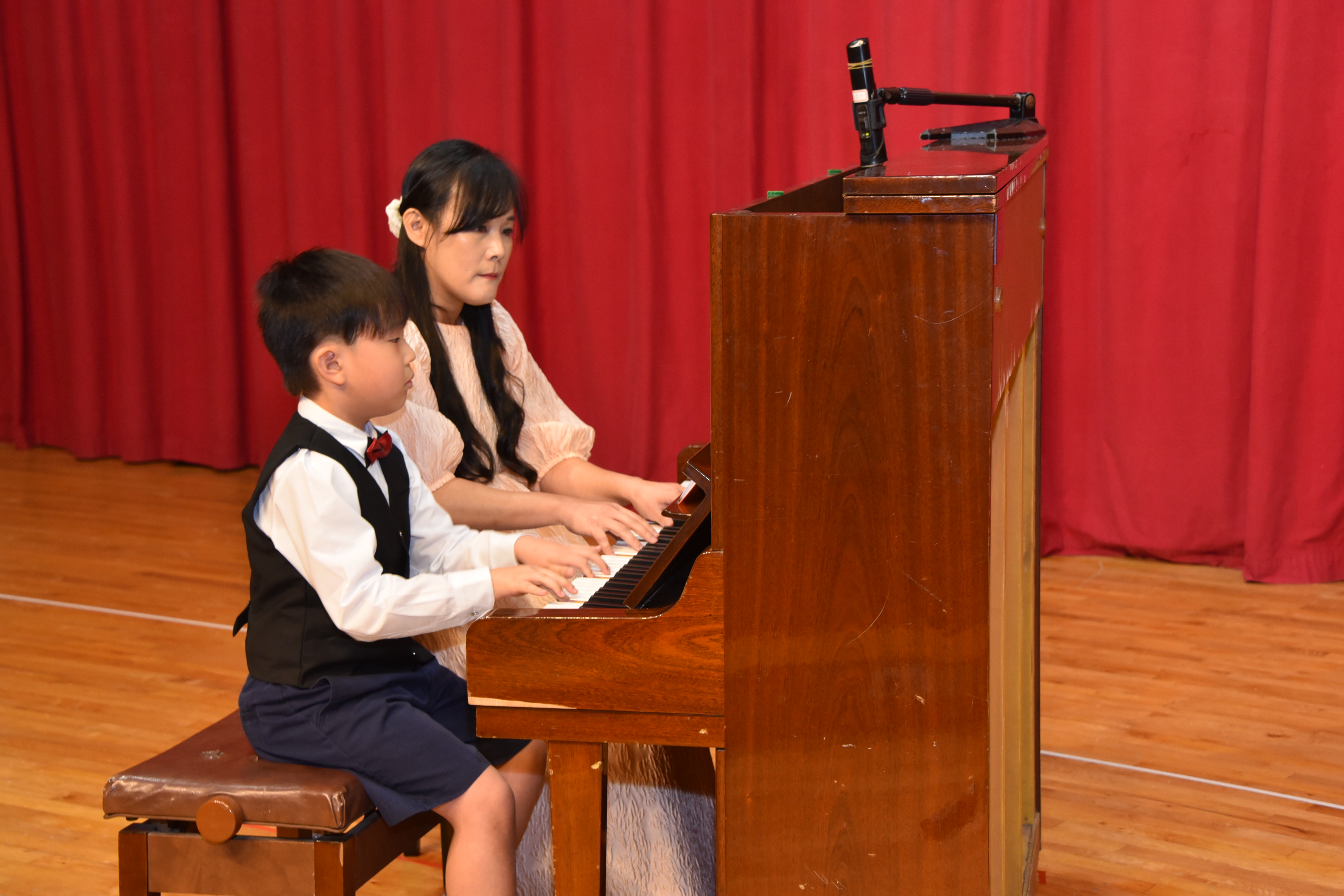隨後,慶祝活動正式展開。首先登場的是去年參加全國啦啦隊錦標賽勇奪冠亞軍的隊伍,他們以精湛的技巧和默契的配合,將場上的氣氛推向高潮,觀眾們熱情地鼓掌喝彩。接著,由一忠蘇璿宇及媽媽、二忠陳亮謀及媽媽、二孝馬聿姀及爸爸、二仁丁宥芃與妹妹及媽媽、二信邱喆威及媽媽組成的5組親子秀輪番登場,有孩子們優美的歌聲與樂器演奏,以及家長和孩子共同呈現的感人瞬間,每一個表演都讓人回味無窮。 |