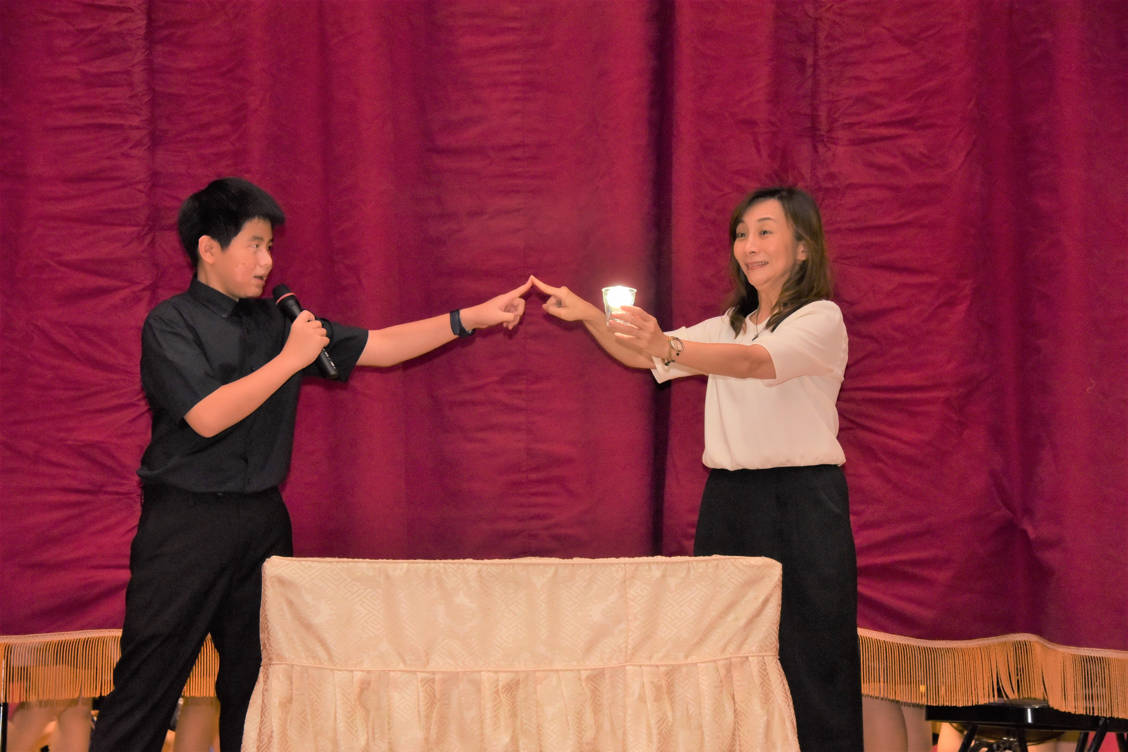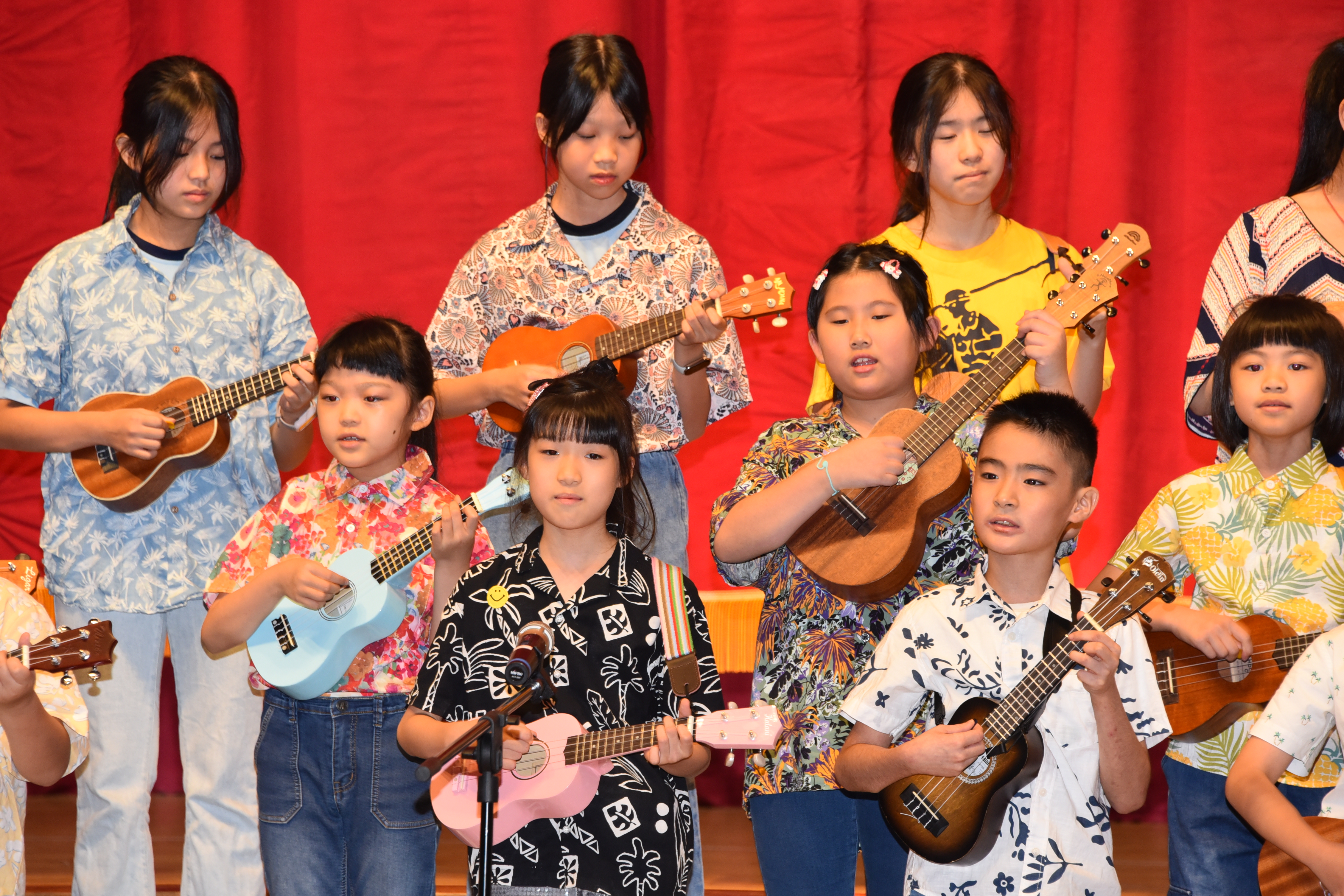 魔術社的表演更是將現場觀眾帶入了神秘的世界,他們巧妙的手法和驚險的魔術令人目瞪口呆。接著,弦樂團帶來「We Are the World」、「Raiders March」,演奏如同天籟之音,彷彿讓人置身於優美的夢境中。烏克麗麗社帶來輕快曲風的「少年」歌曲讓人心曠神怡,觀眾們跟隨著旋律一同唱了起來。直笛團「郵遞馬車」的表演更讓觀眾在樂音中感受到喜悅的心情,彰顯了再興小學學生的多樣才華。 |