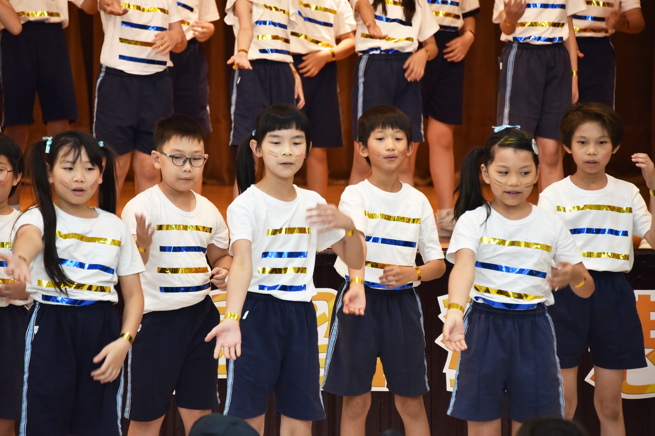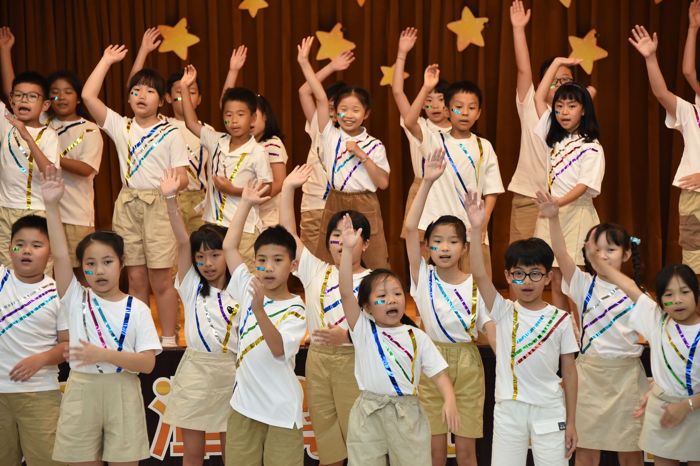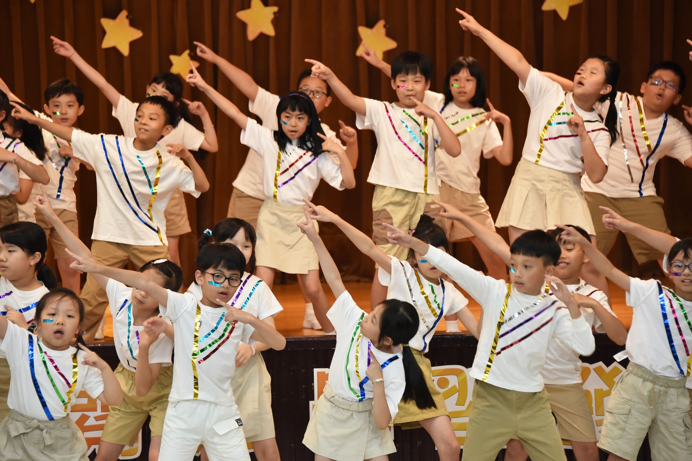 再興小學的英語學習非常多元化,除了課堂系統教材的學之外,學校也依孩子的年齡與特性,規畫適合的英語活動,目的是要培養孩子自然的語感和增加應用的機會。今年三年級的孩子,在中外英語老師的教導帶領下,從曲目的選擇、歌詞的理解、舞蹈動作的設計到服裝造型的確定,其中的溝通、討論、創意發想和合作練習,除了英語歌曲之外,師生們都從中學習到更多呢。