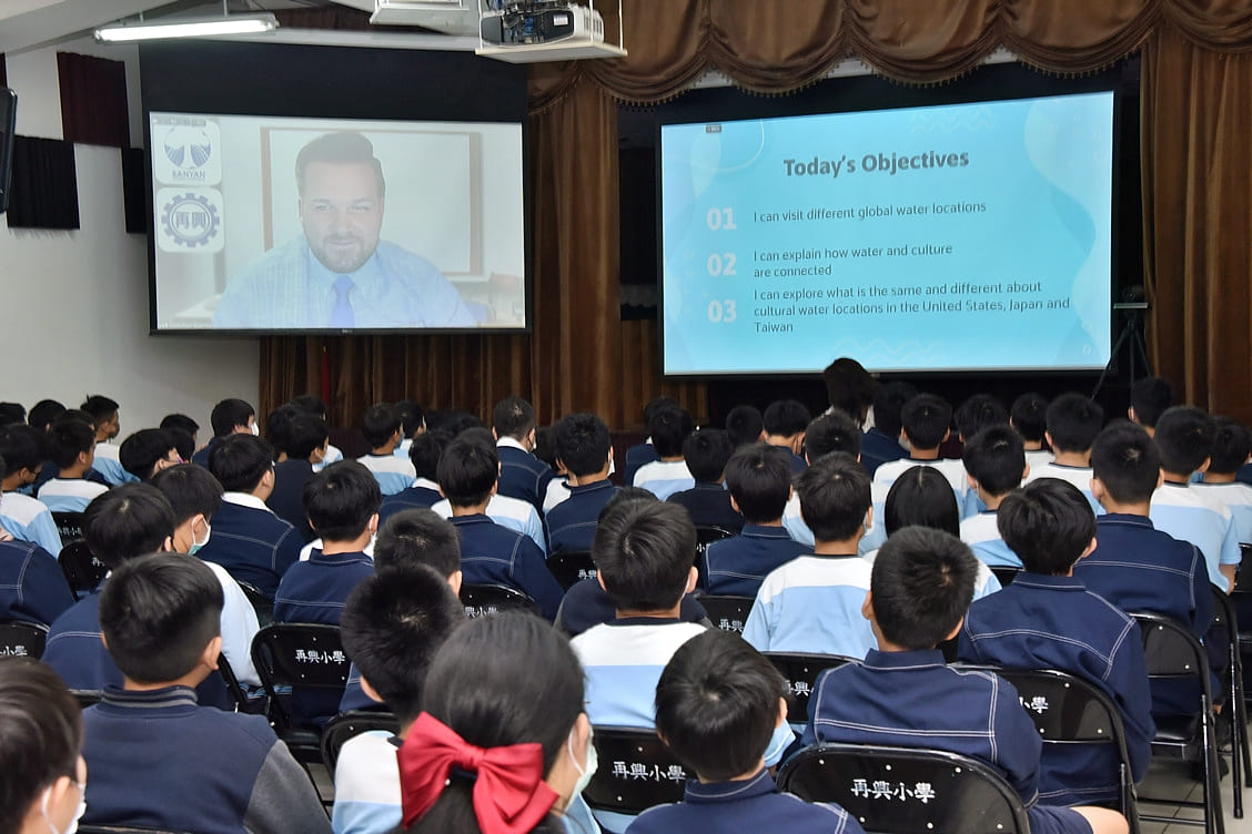 水,跟我們的生活息息相關,除了供給基本生命動能,維護身體環境清潔,也能為我們的精神休閒提供相當的助益。六年級這一次的數位實境體驗活動,我們透過再興優良視訊設備,跟著國際外師的腳步出走遊學,一起學習與水相關的人類文化活動。