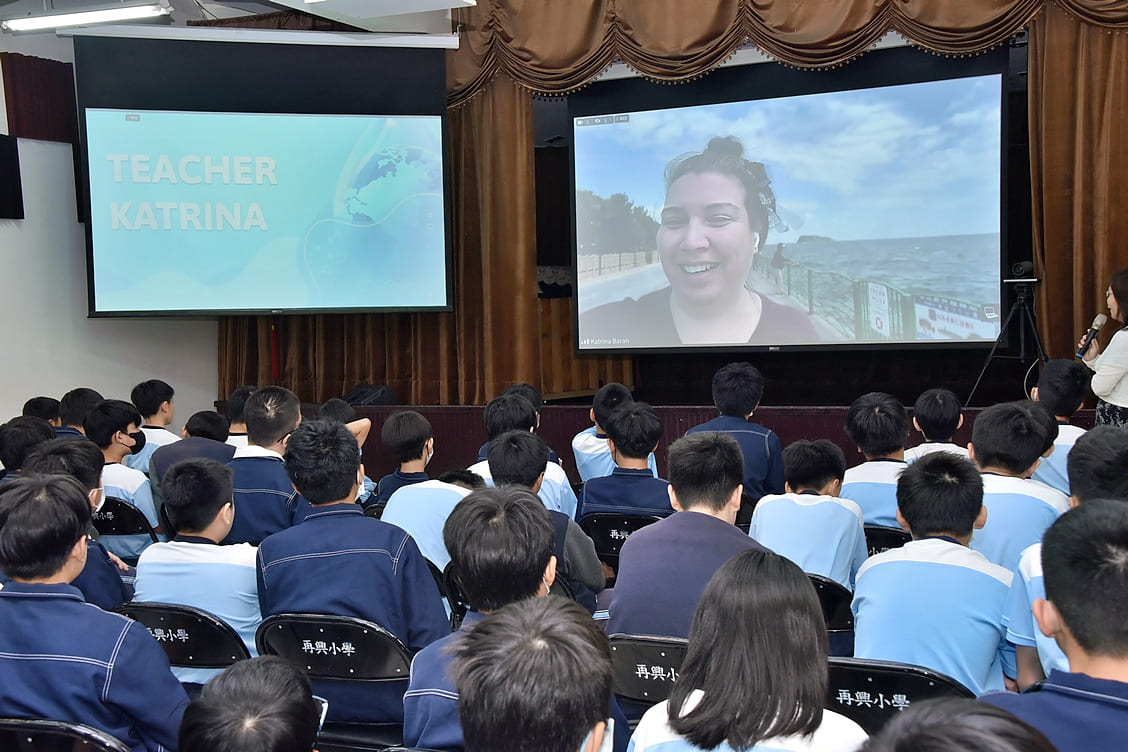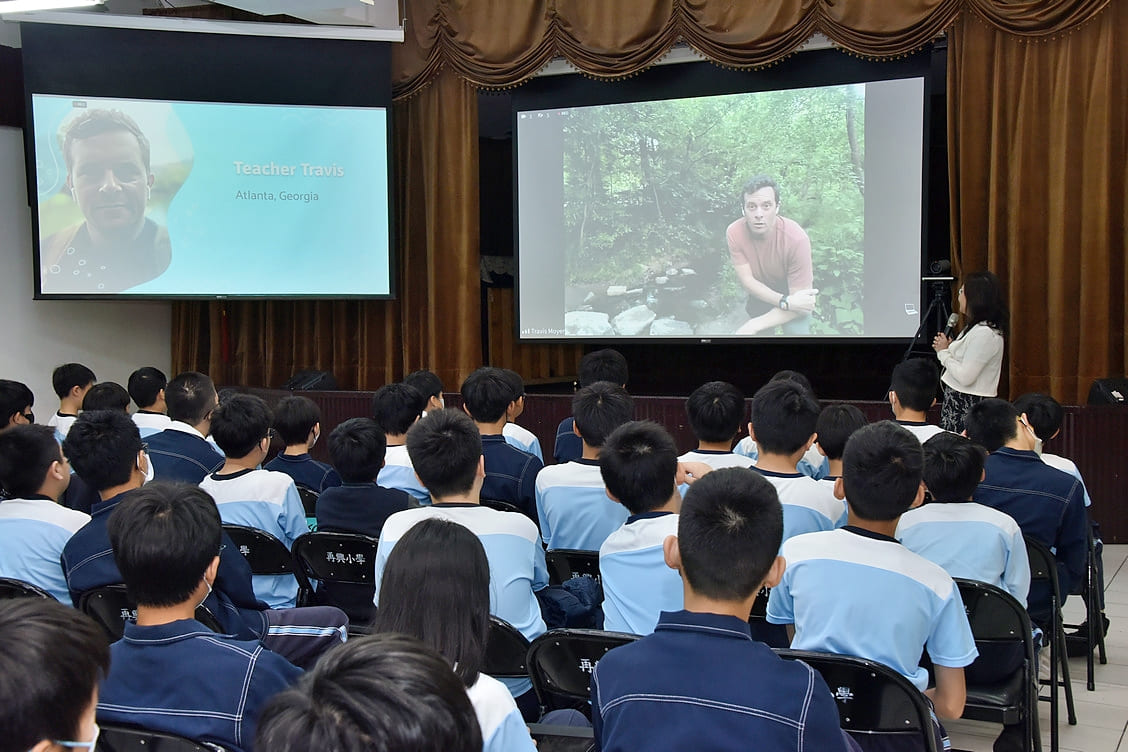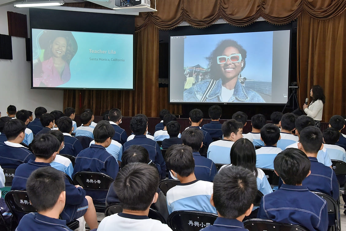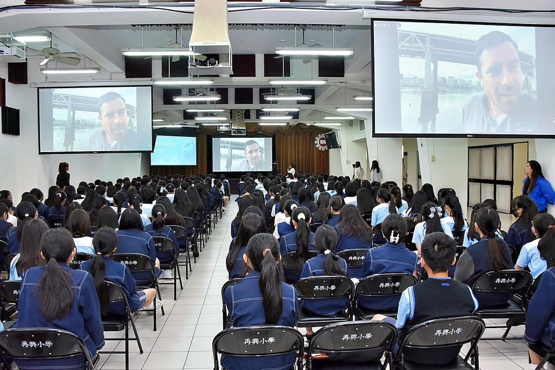 六年級學生在課程中好奇地觀看美國、日本等地的相關環境,也仔細聆聽外師們解釋形成該地區特色的原因,以及因為人類活動所可能造成的正負生態影響。學生們在觀察與思考後現場提出問題,老師們也都一一及時回覆解答,現場學習互動自然進行,不因時間距離而有所影響。台灣提問,國際回答,再興FTL真的好酷!